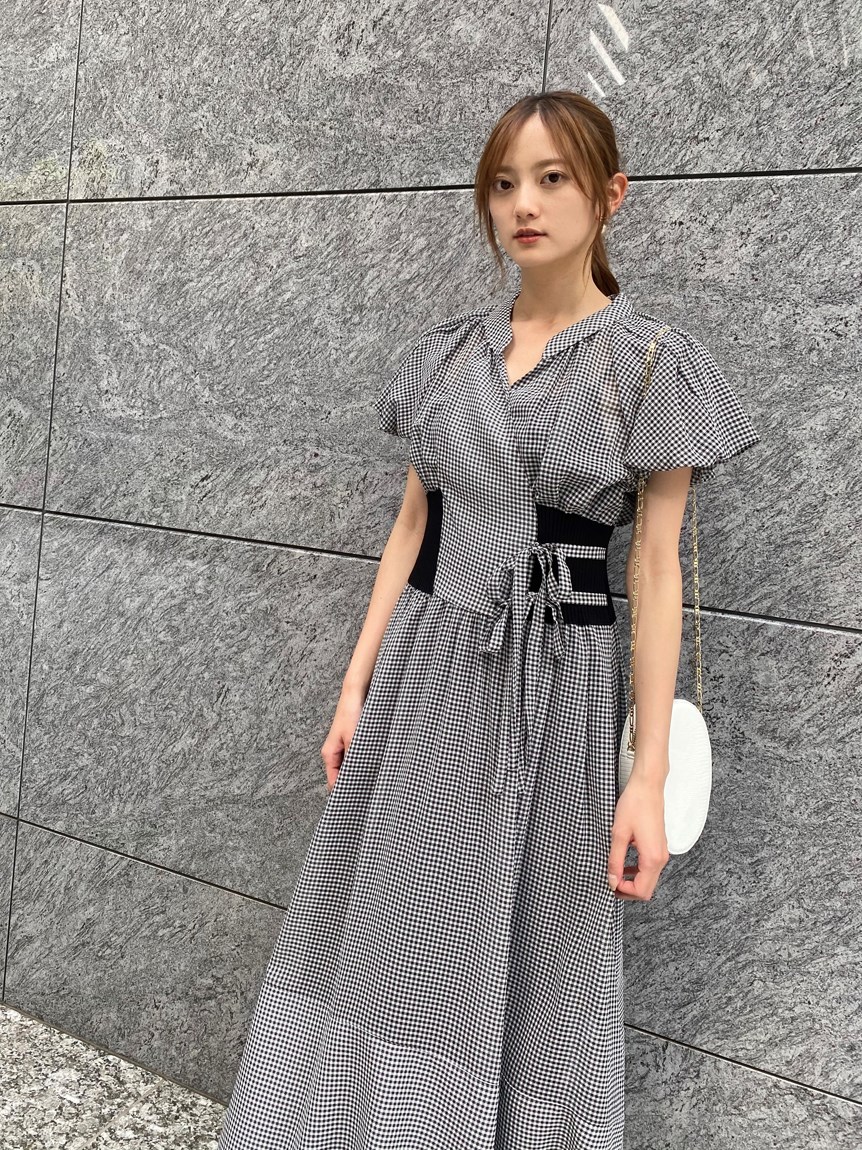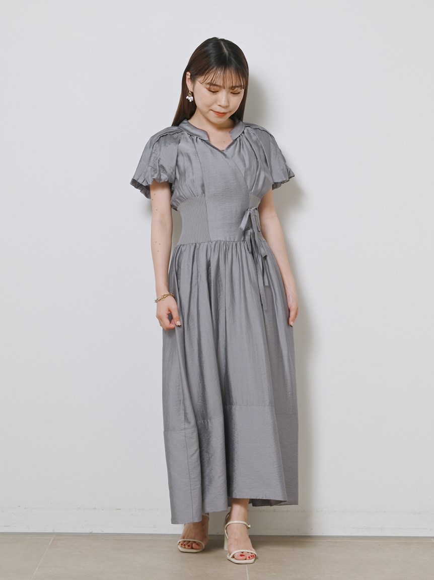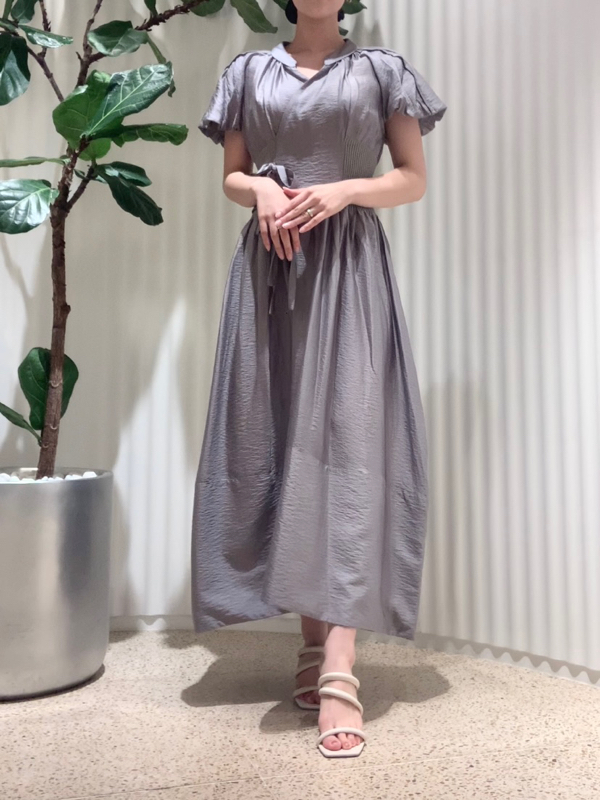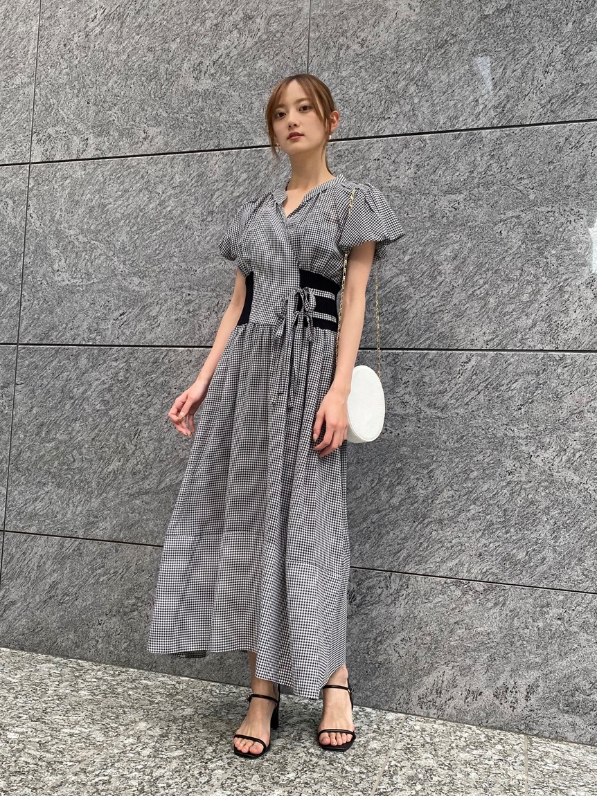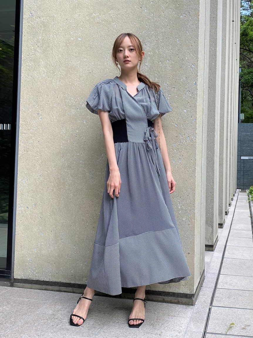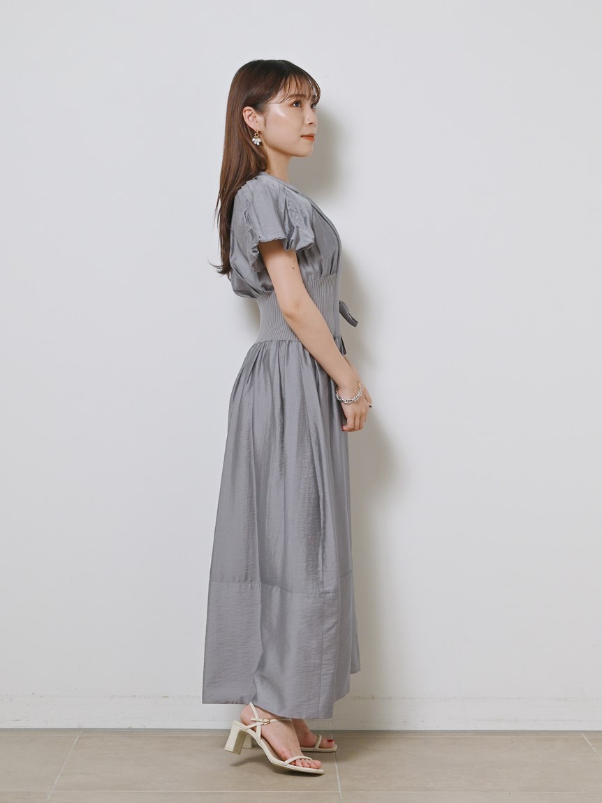 リブニットで切り替えたコルセット風のウエストデザインが特徴的な、上品な印象を与えるワンピース。上身頃はギャザーやバルーンで華やかに見せながらもサイズ感はコンパクトに。スカート部分はボリューミーなフレアラインに裾をややコクーンに仕立てることでトレンド感をプラスしています。メリハリのあるシルエットなのでスタイルアップ効果を存分に期待できます。
