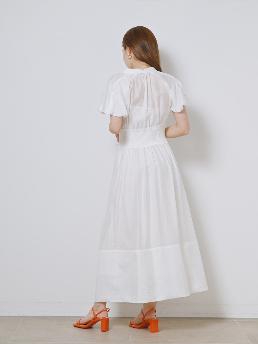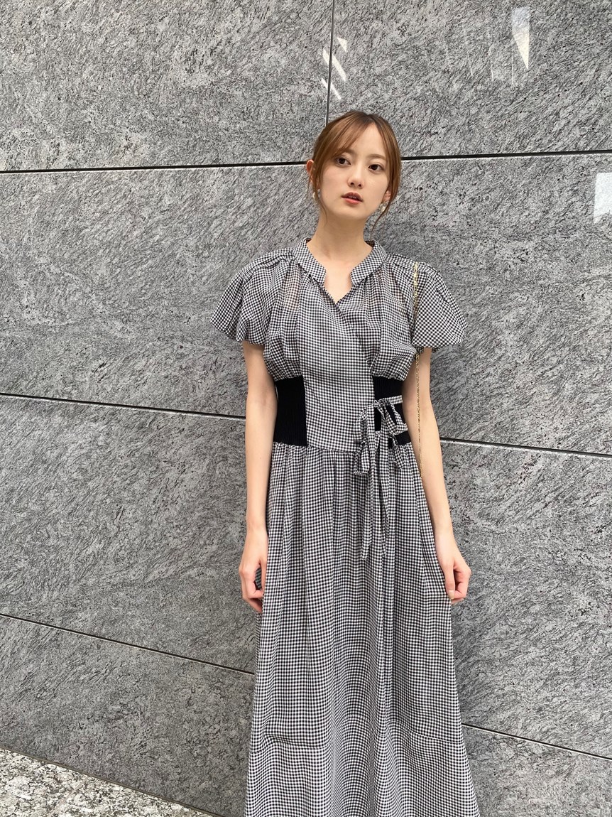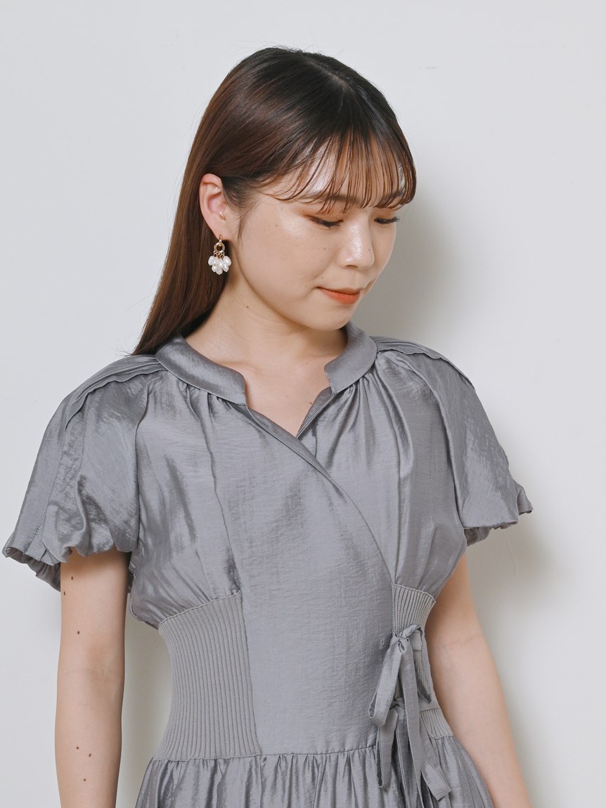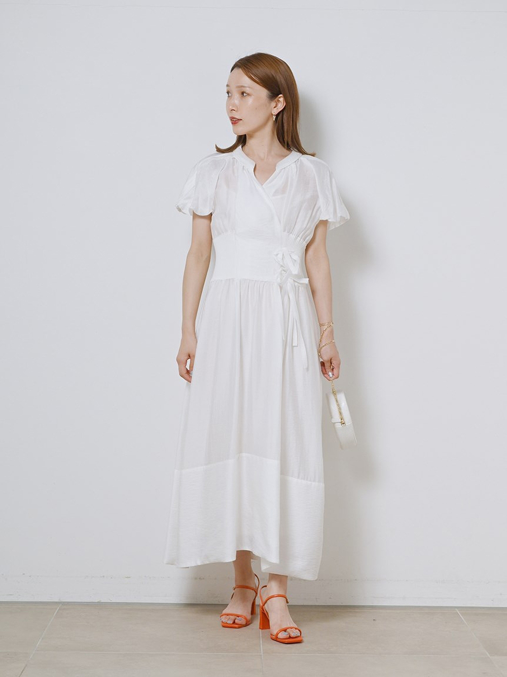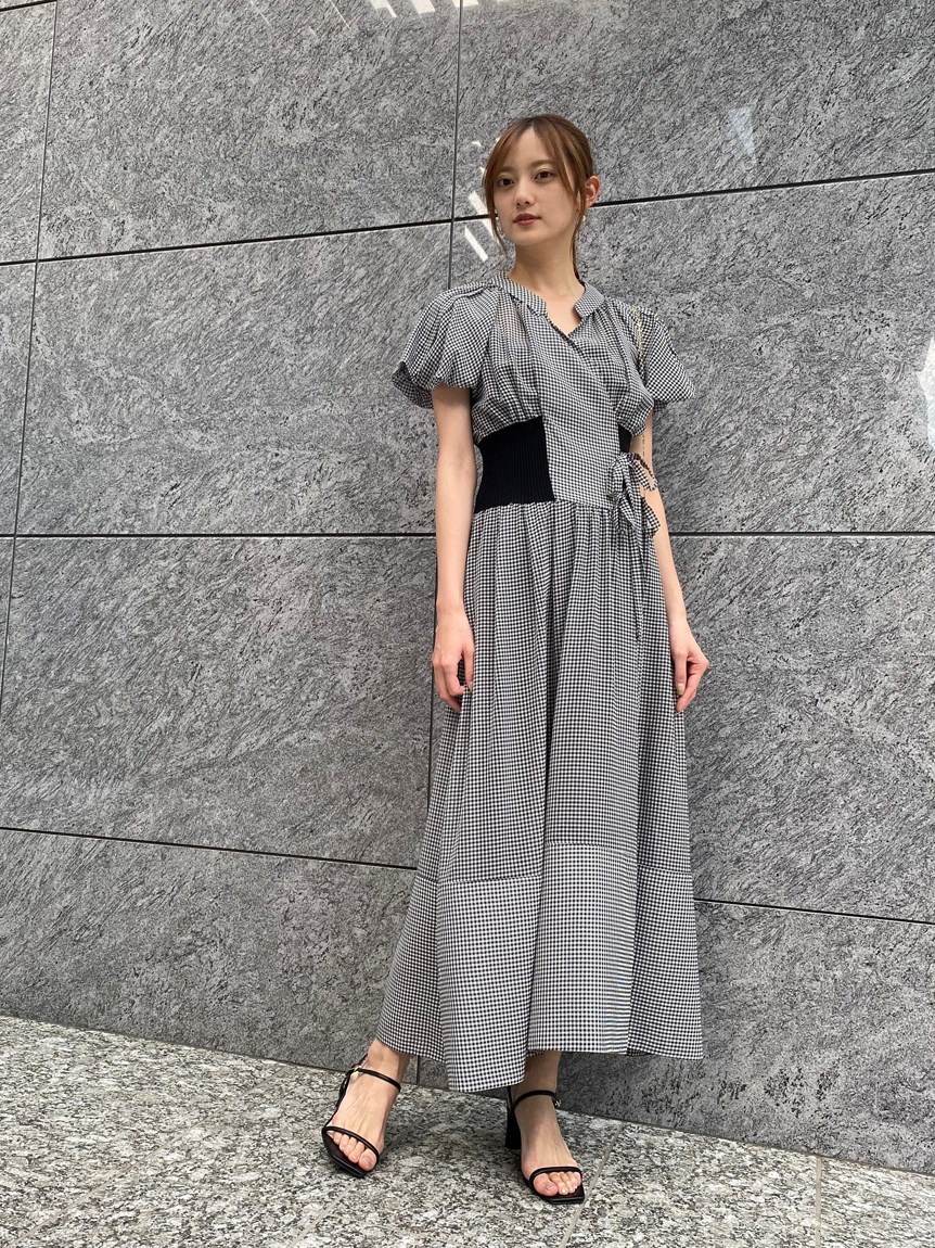 リブニットで切り替えたコルセット風のウエストデザインが特徴的な、上品な印象を与えるワンピース。上身頃はギャザーやバルーンで華やかに見せながらもサイズ感はコンパクトに。スカート部分はボリューミーなフレアラインに裾をややコクーンに仕立てることでトレンド感をプラスしています。メリハリのあるシルエットなのでスタイルアップ効果を存分に期待できます。