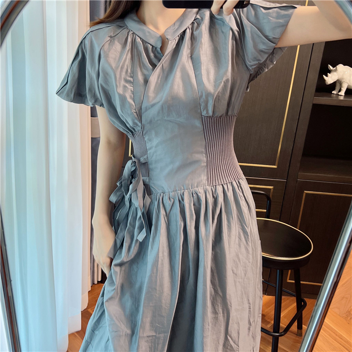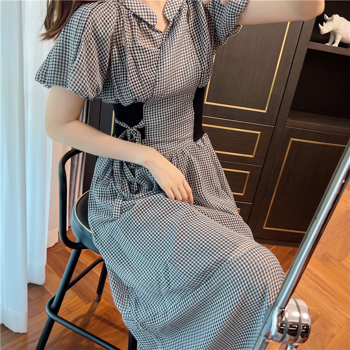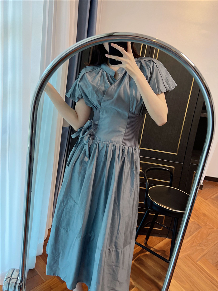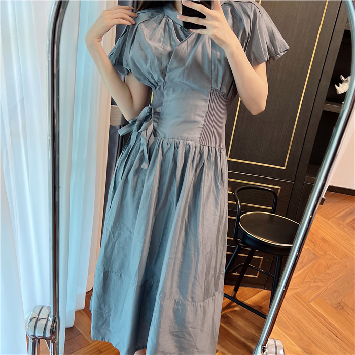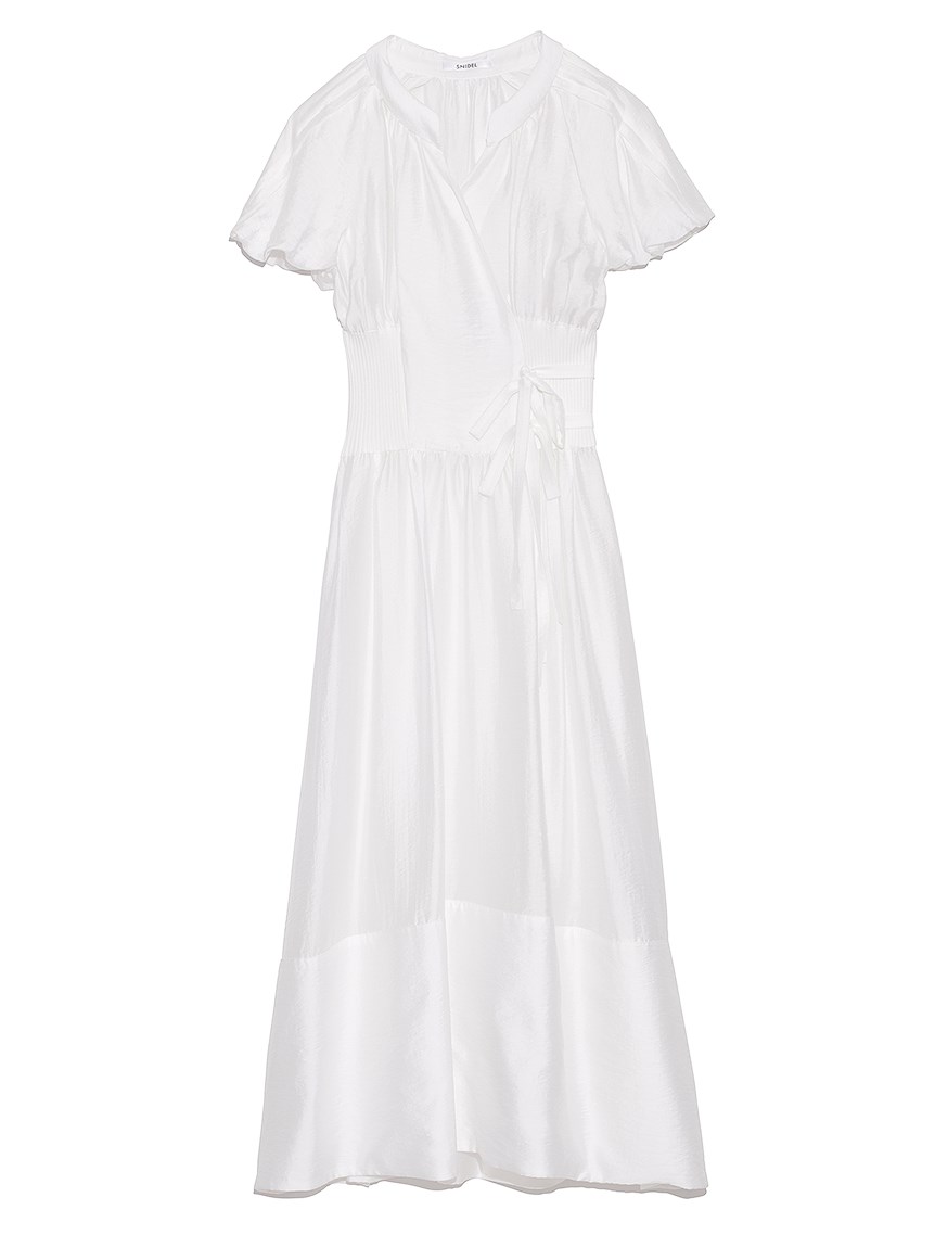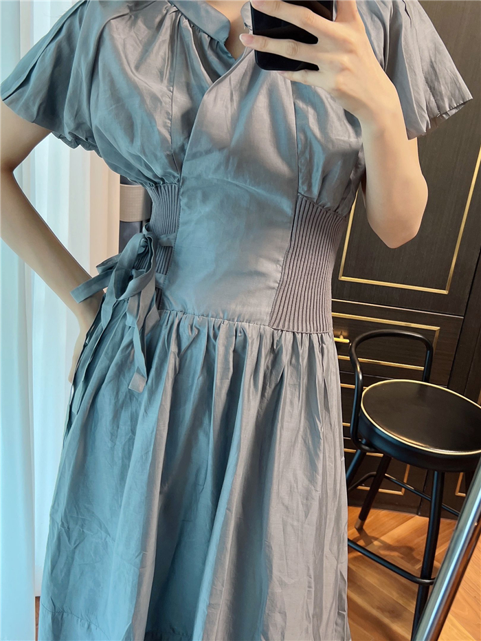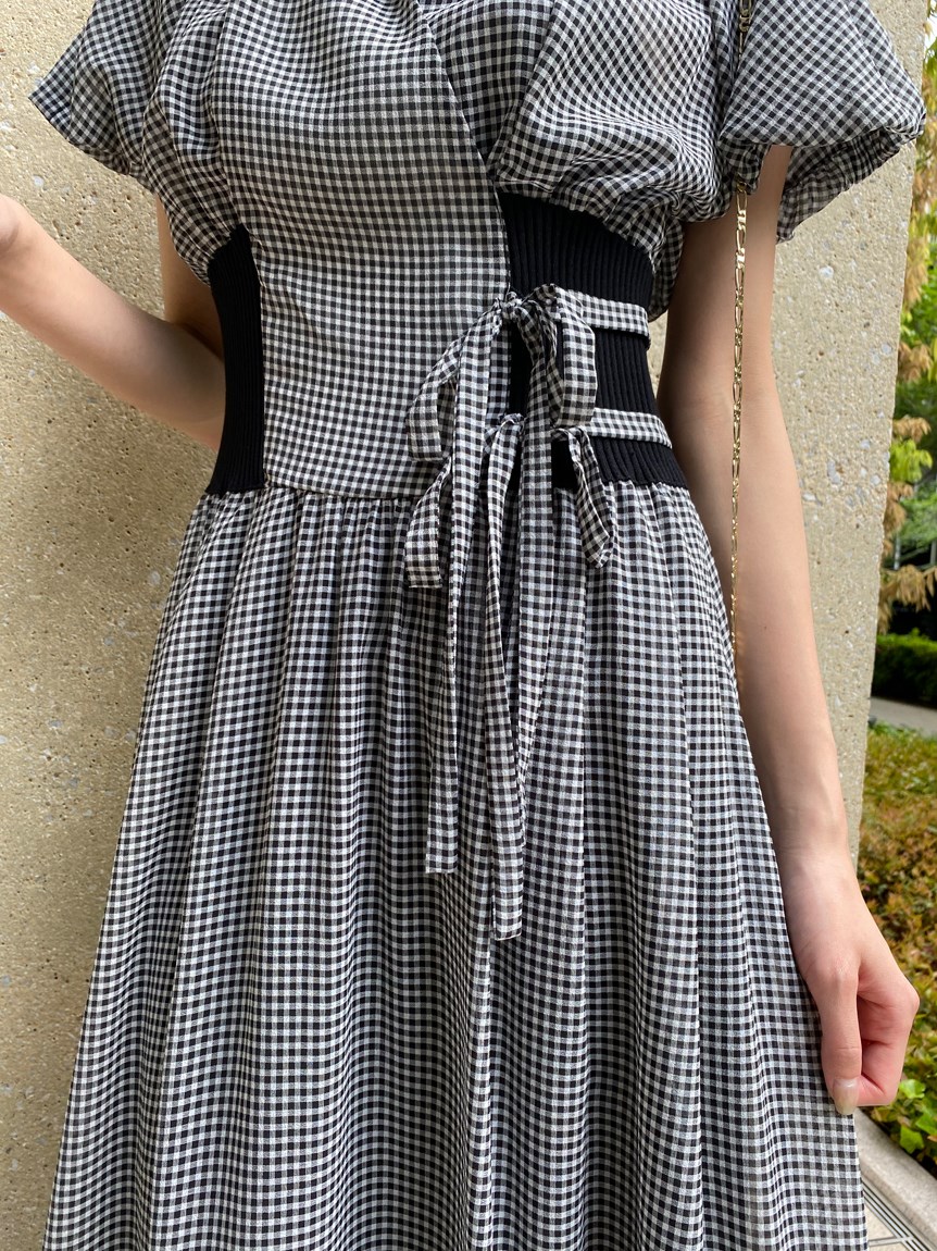 リブニットで切り替えたコルセット風のウエストデザインが特徴的な、上品な印象を与えるワンピース。上身頃はギャザーやバルーンで華やかに見せながらもサイズ感はコンパクトに。スカート部分はボリューミーなフレアラインに裾をややコクーンに仕立てることでトレンド感をプラスしています。メリハリのあるシルエットなのでスタイルアップ効果を存分に期待できます。