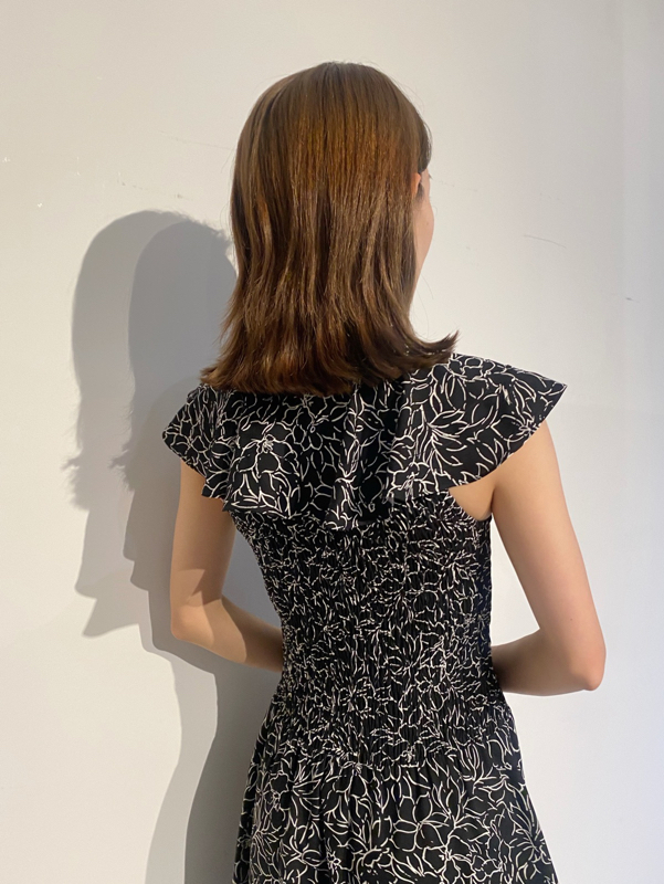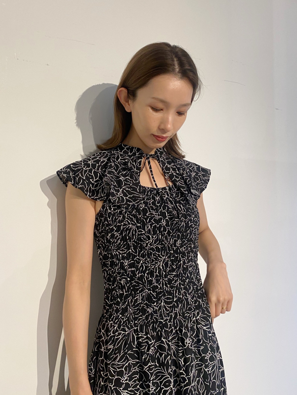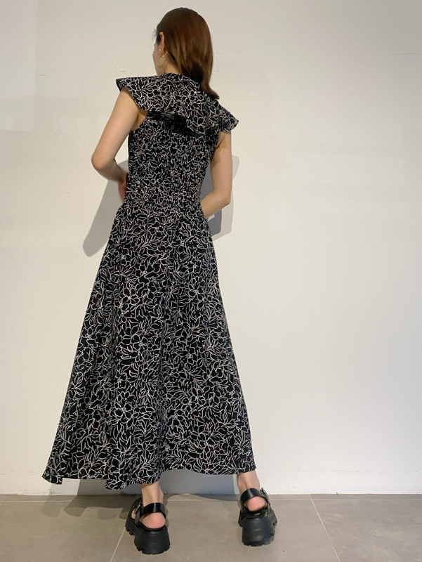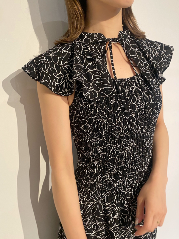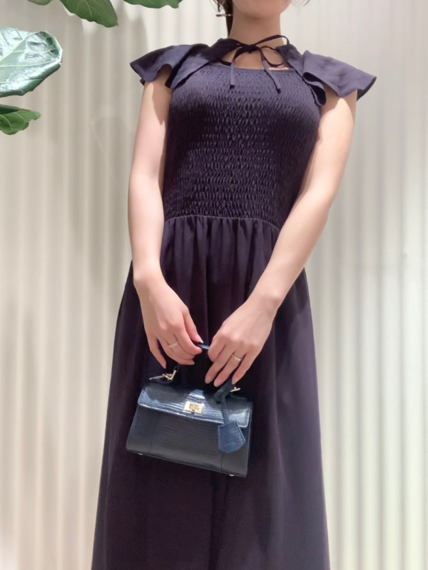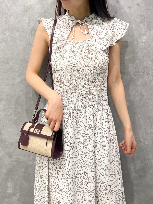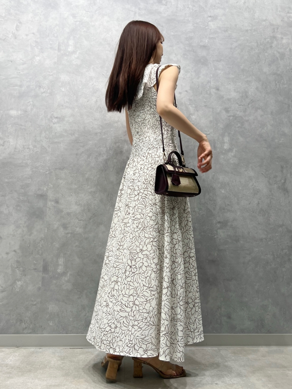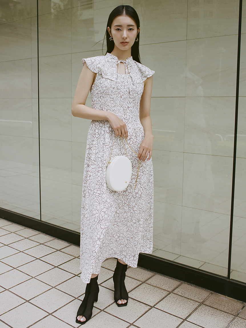 ひらひらと波打つ大きめのフリルカラーが印象的な、今年らしいデザインのワンピース。身頃部分はゴムシャーリングを効かせフィット感のあるシルエットに。スカート部分はふんわりと広がる軽やかなフレアラインで、女性らしさが存分に引き立ちます。ハイウエストの切り替えで脚長効果があり、スタイルアップも期待できます。