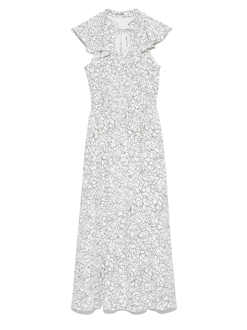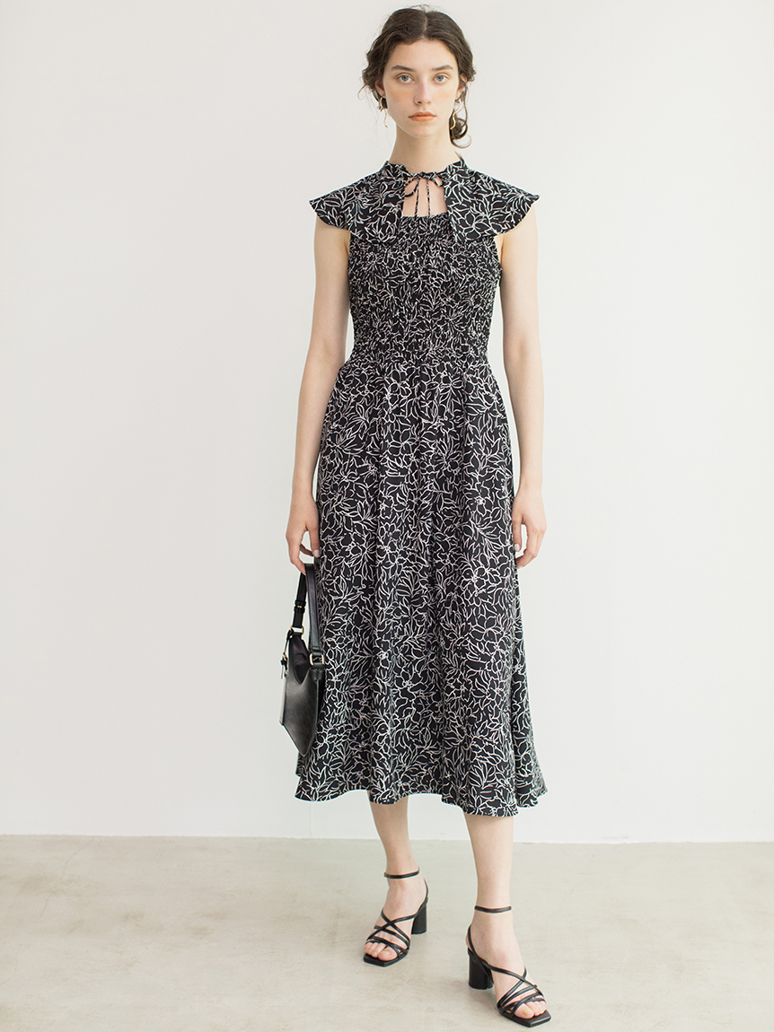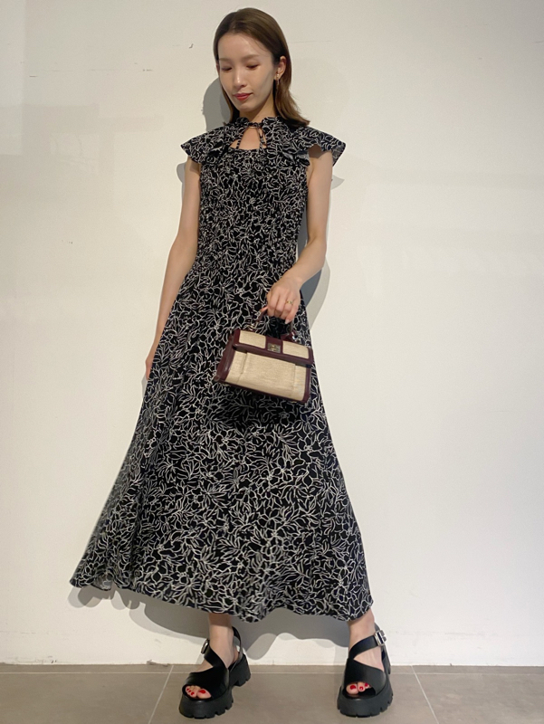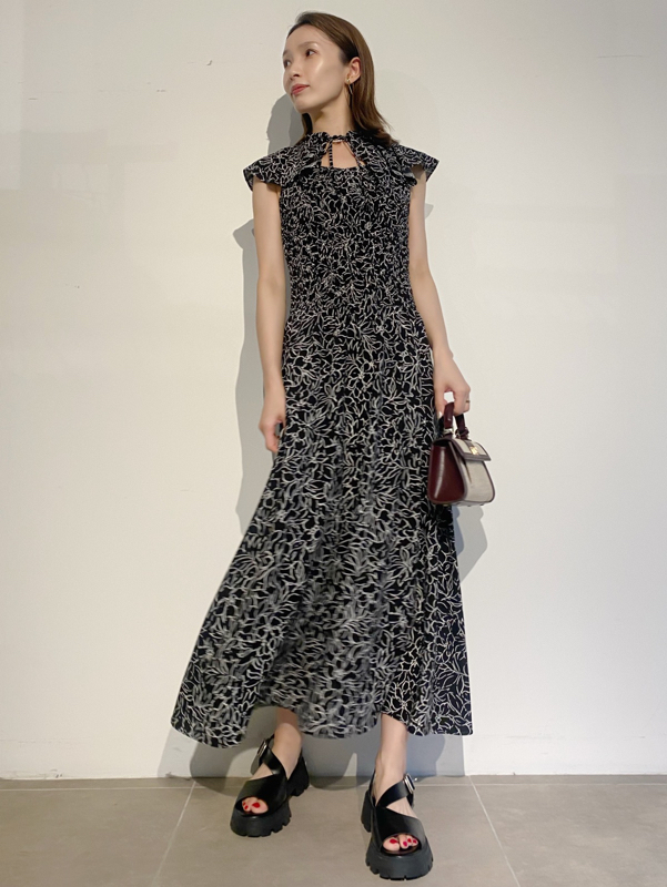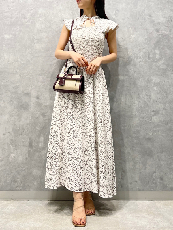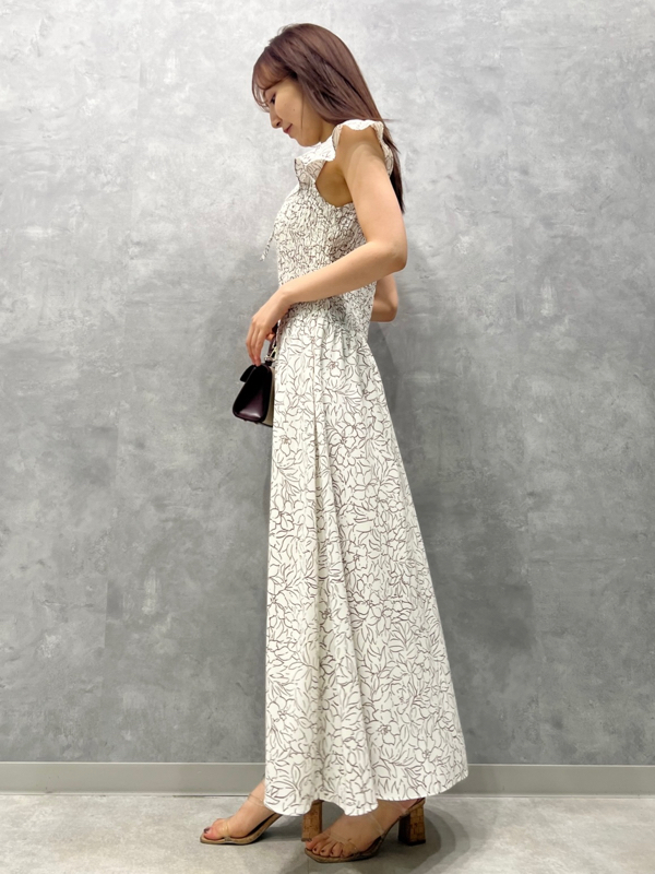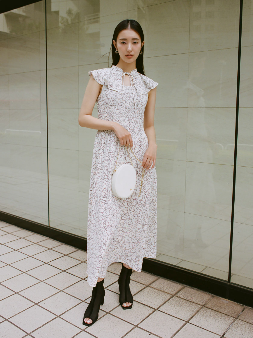 ひらひらと波打つ大きめのフリルカラーが印象的な、今年らしいデザインのワンピース。身頃部分はゴムシャーリングを効かせフィット感のあるシルエットに。スカート部分はふんわりと広がる軽やかなフレアラインで、女性らしさが存分に引き立ちます。ハイウエストの切り替えで脚長効果があり、スタイルアップも期待できます。