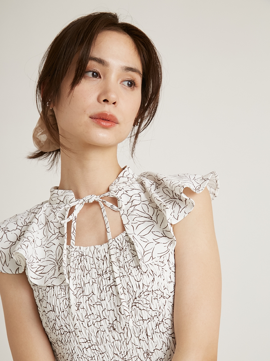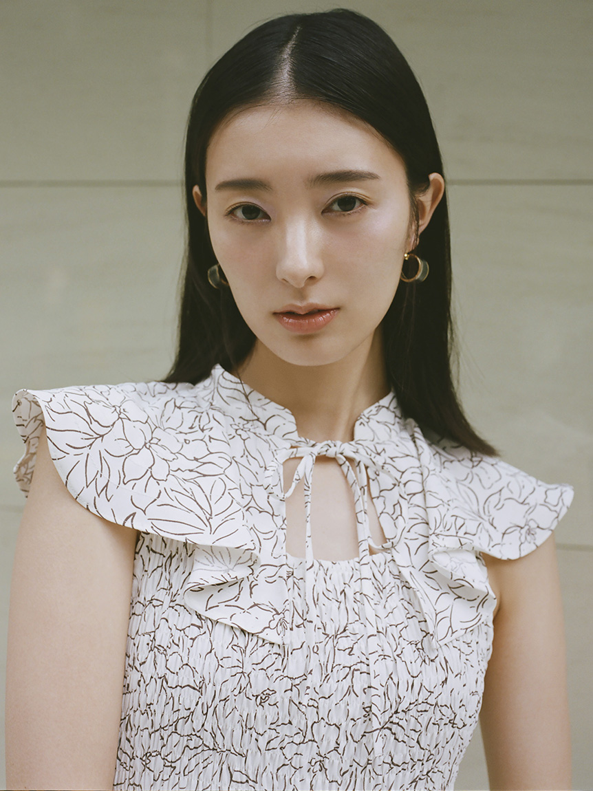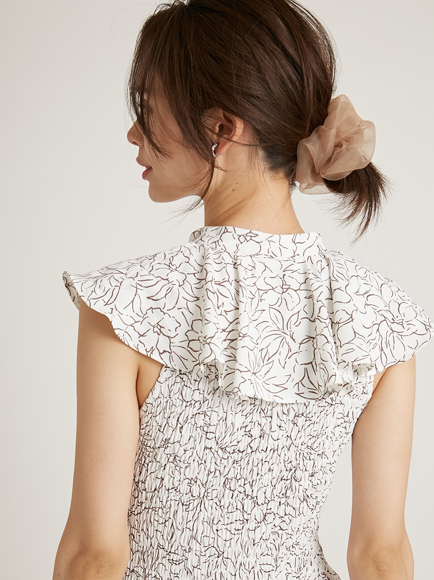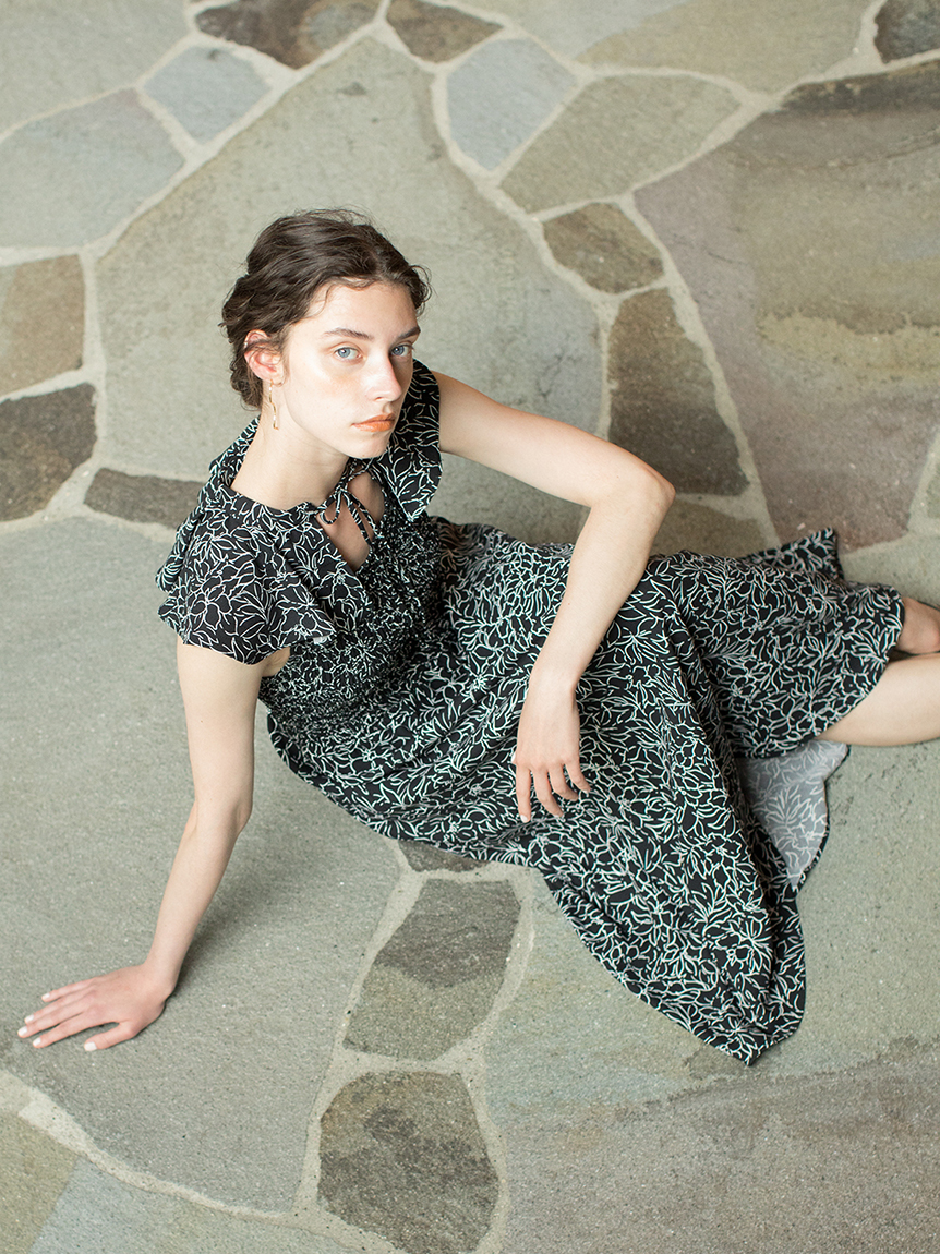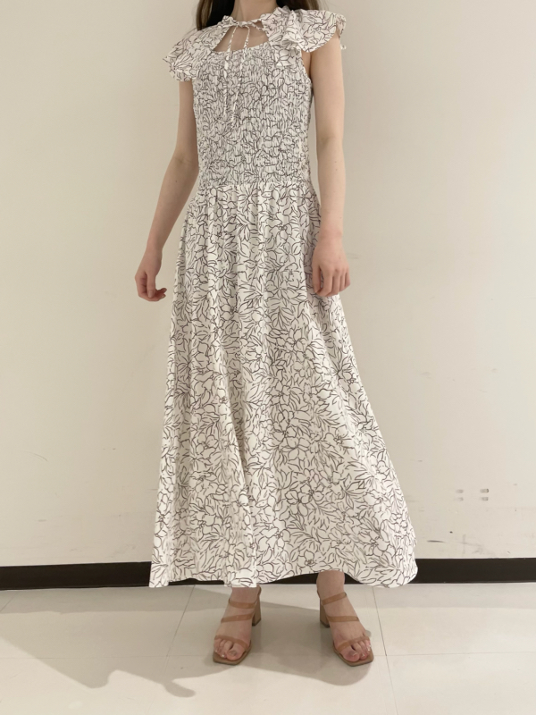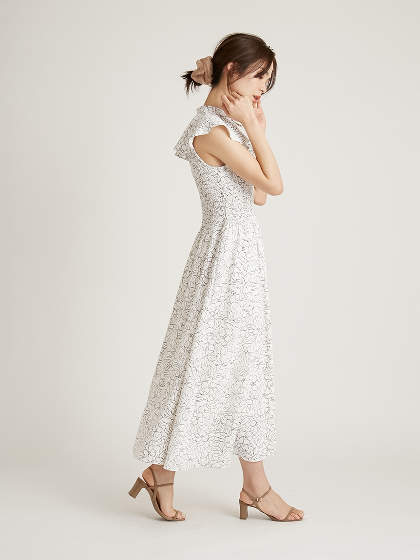 ひらひらと波打つ大きめのフリルカラーが印象的な、今年らしいデザインのワンピース。身頃部分はゴムシャーリングを効かせフィット感のあるシルエットに。スカート部分はふんわりと広がる軽やかなフレアラインで、女性らしさが存分に引き立ちます。ハイウエストの切り替えで脚長効果があり、スタイルアップも期待できます。