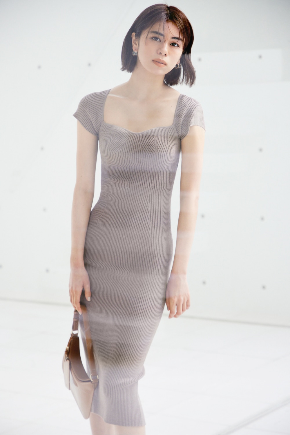 大胆に開いたスクエアネックが印象的な、大人の色香を漂わせるニットワンピース。デコルテを綺麗に魅せるカーブのラインやバストの立体的な編み目でモード感溢れるルックスに仕上げました。カップインタイプなので合わせるインナーに困らず、1枚でさらりと着られる万能アイテム。バックには深めにスリットを入れ、今年らしい肌見せも演出しています。
