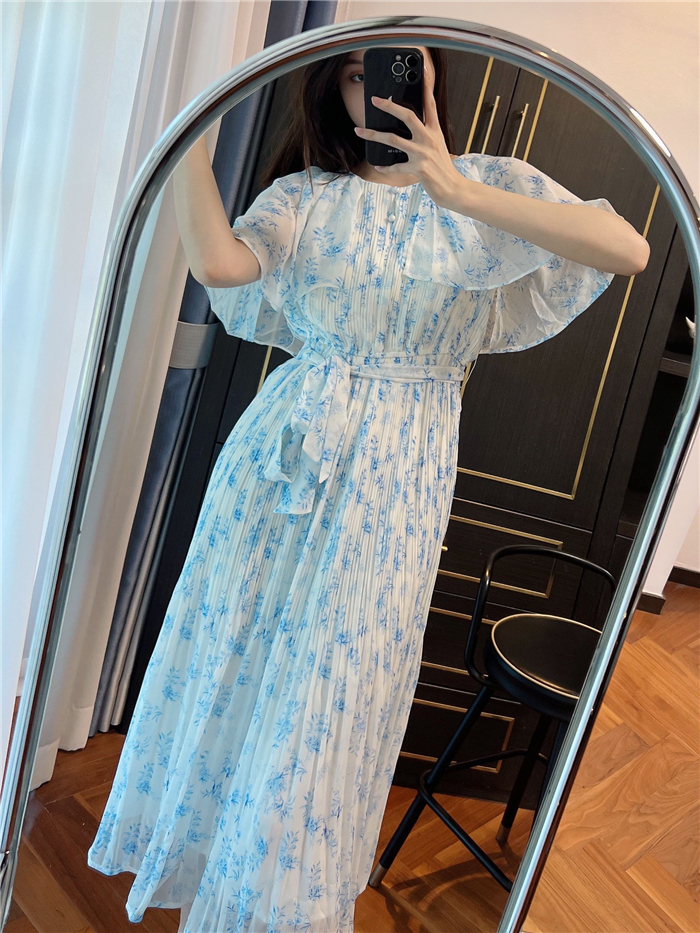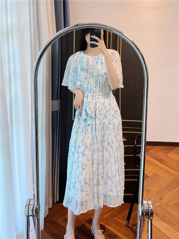 ウエストリブプリントワンピース 入金確認後5-7営業日発送(土日祝日除く)