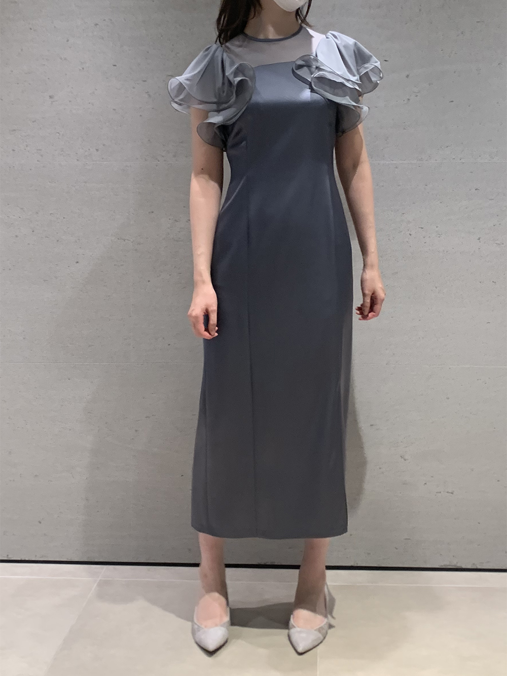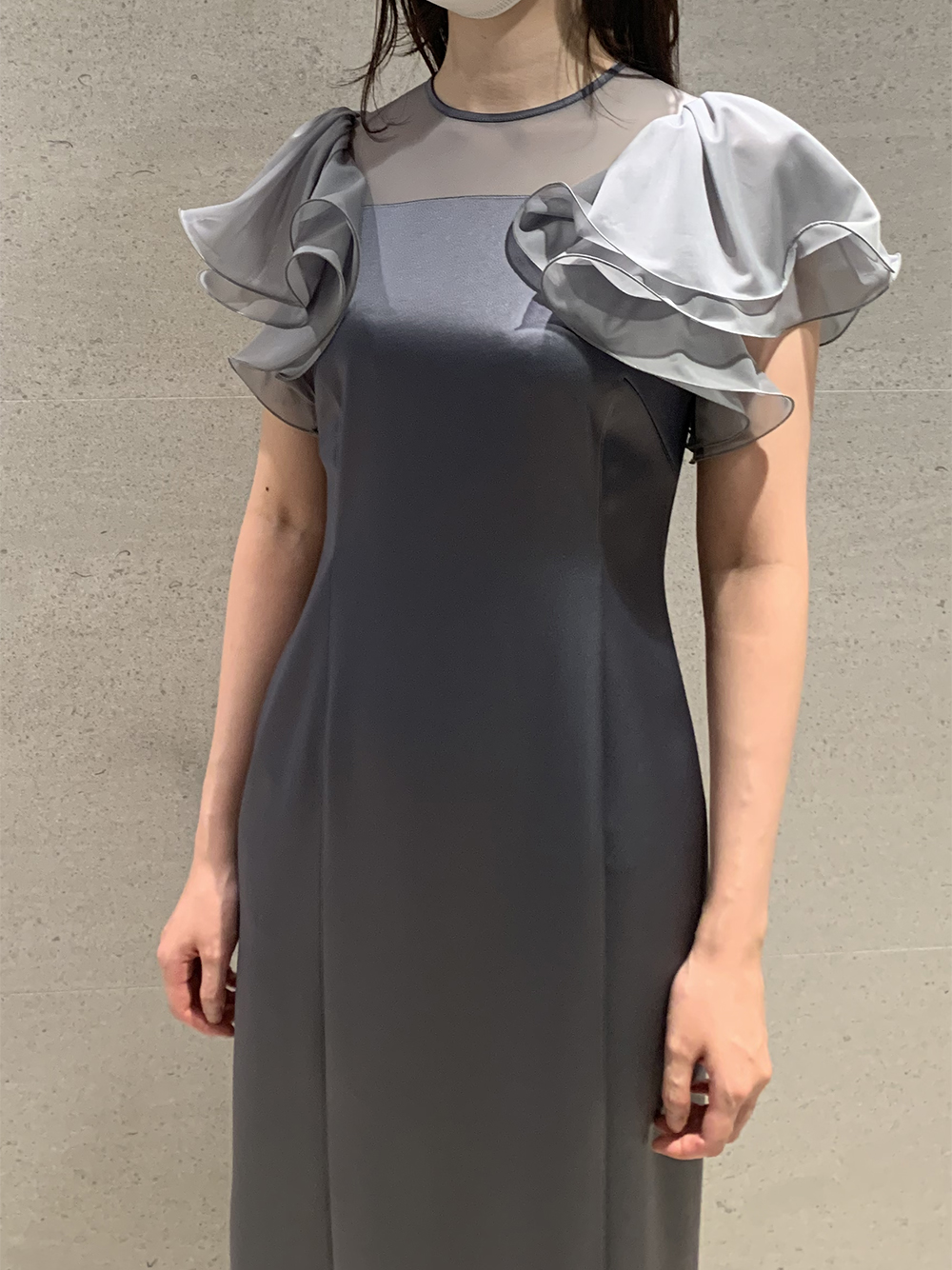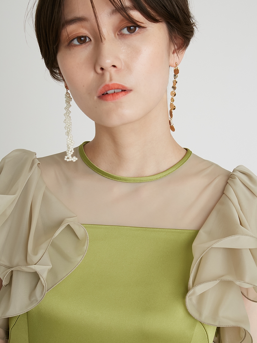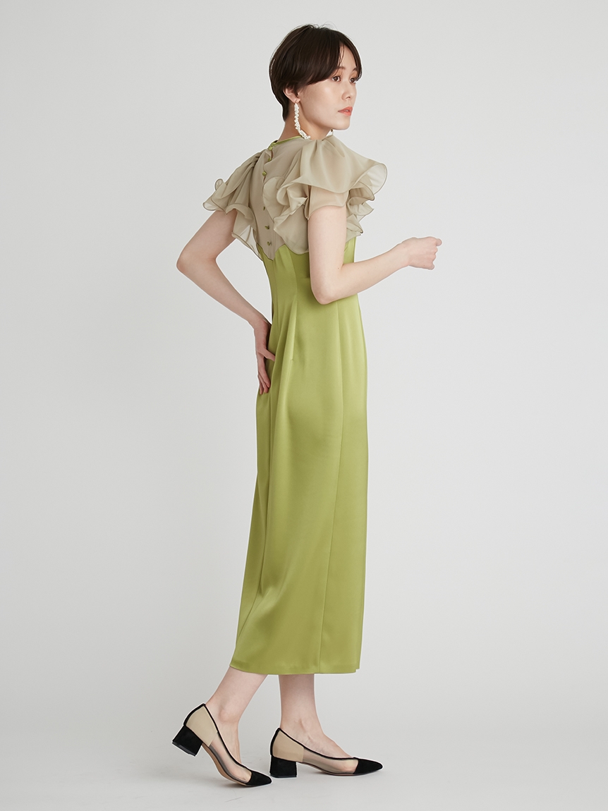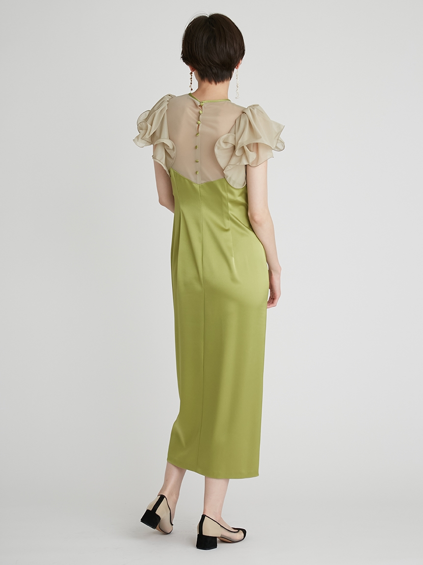 フリルスリーブコンビドレス