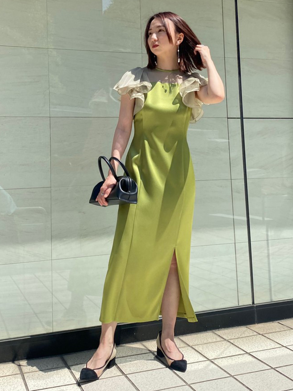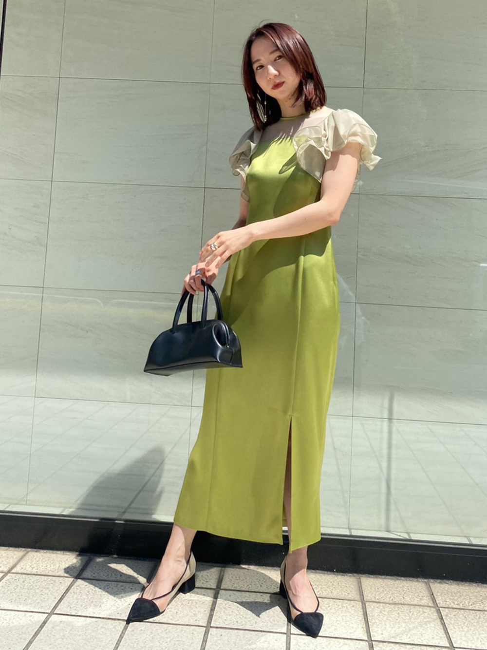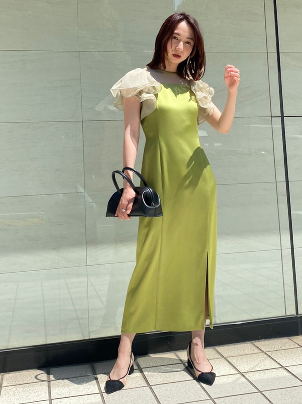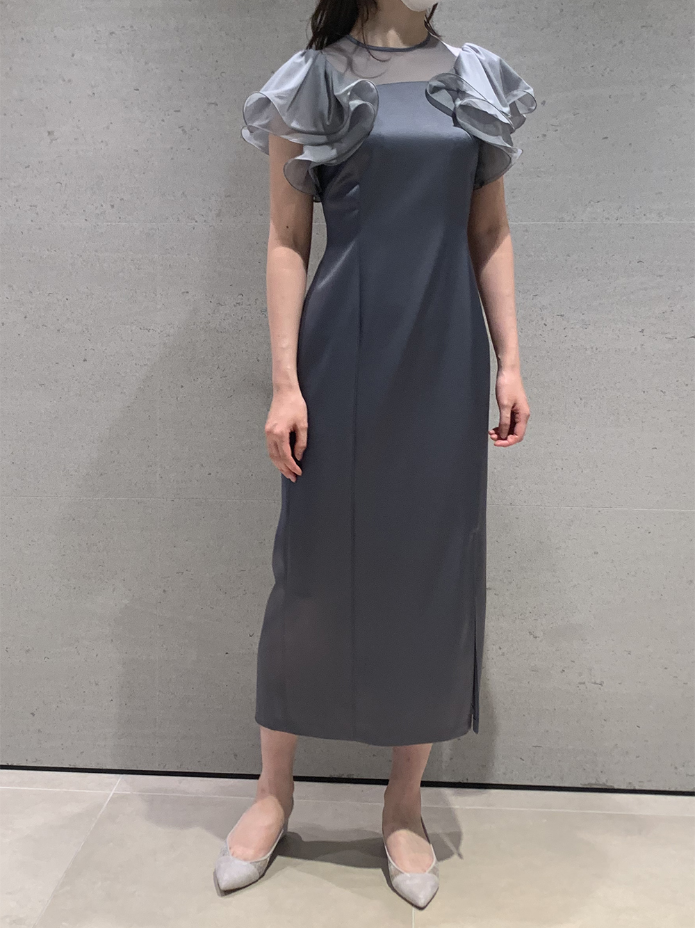 フリルスリーブコンビドレス
