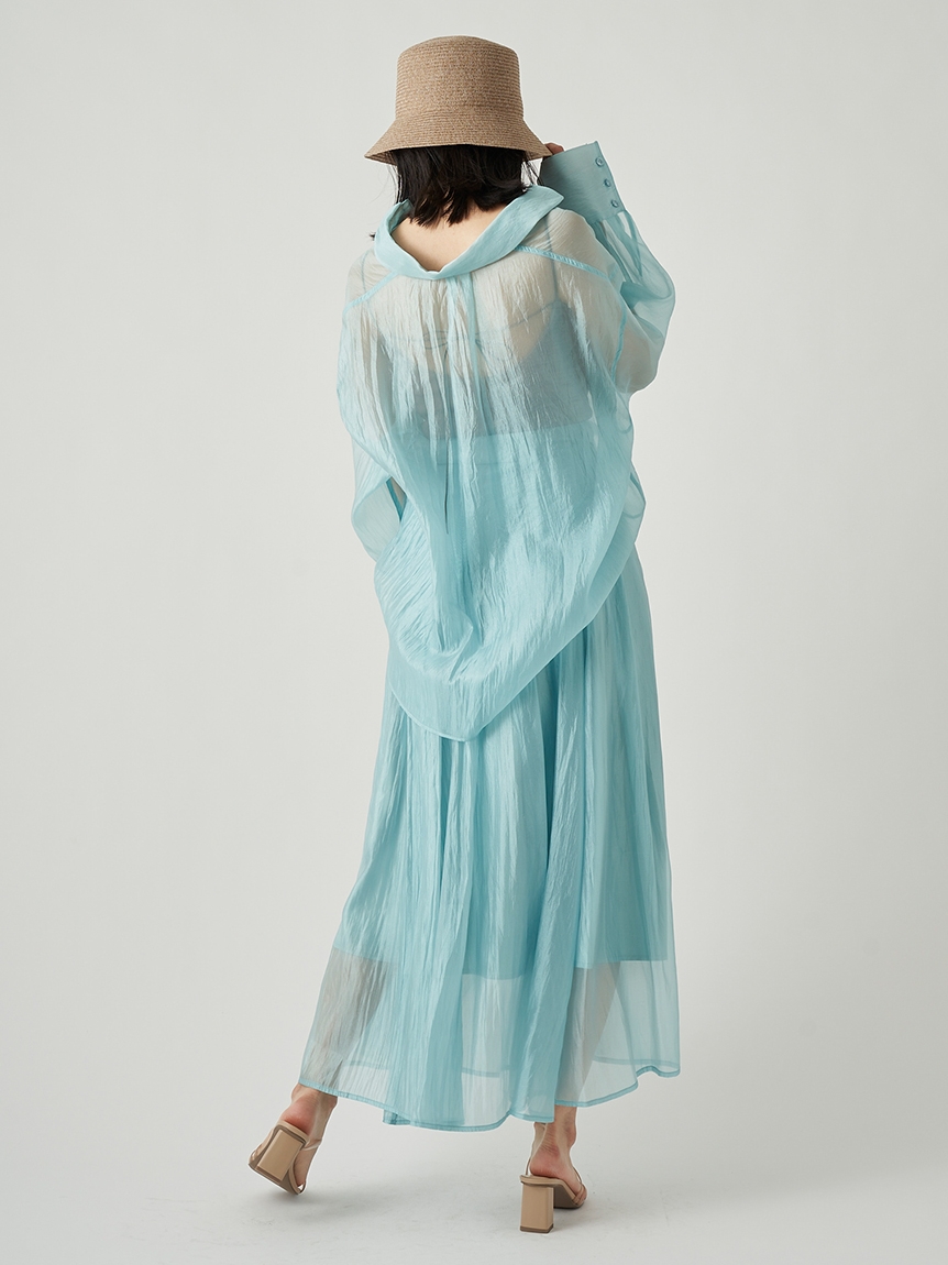 立体的なシボ感と上品な光沢のあるシアー生地を使用。イノセントムード薫るオフホワイト、ニュアンスのある色合いのモカ。春夏らしいターコイズの3色をご用意しました。
