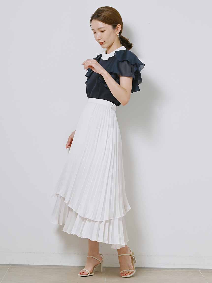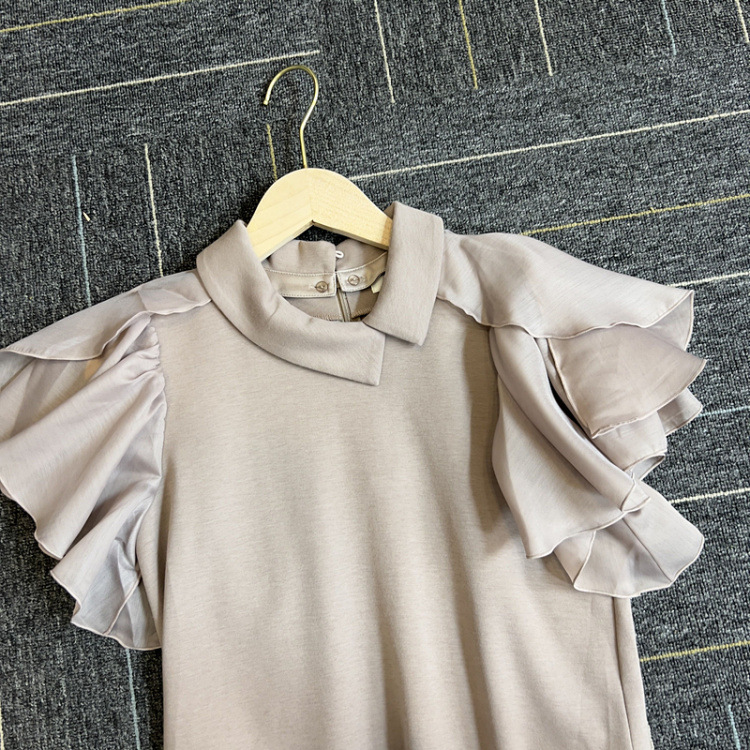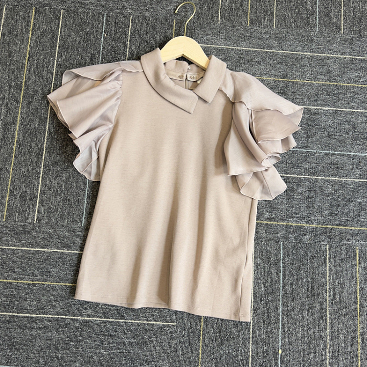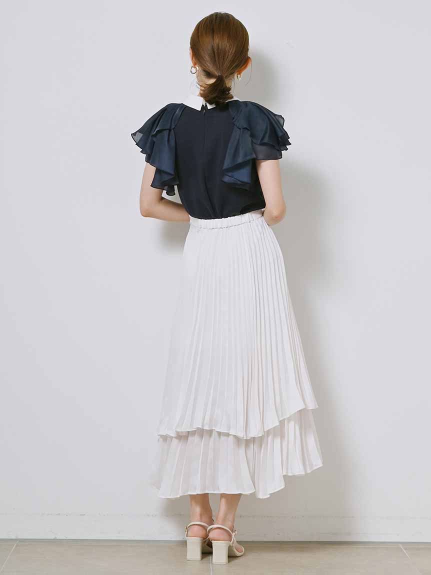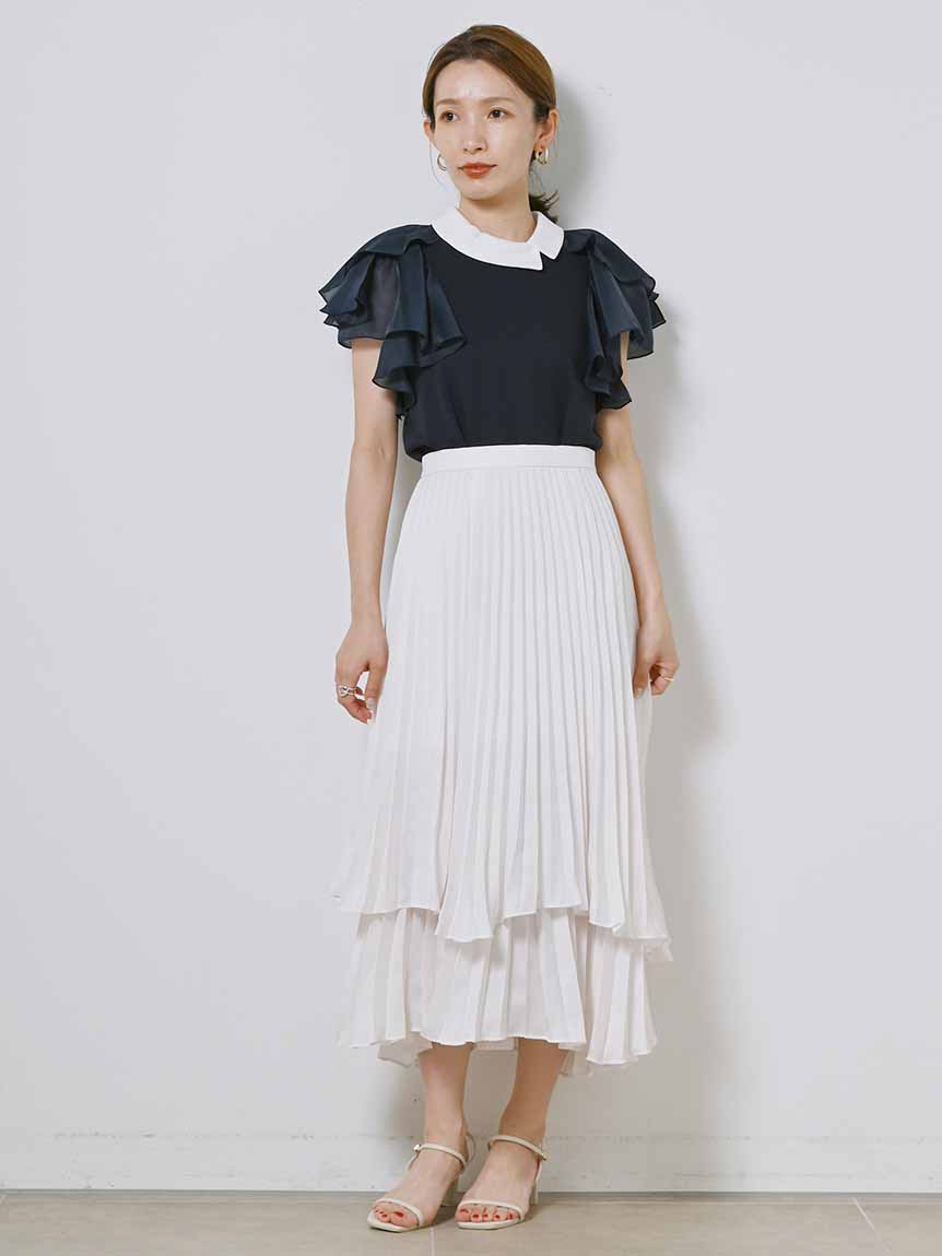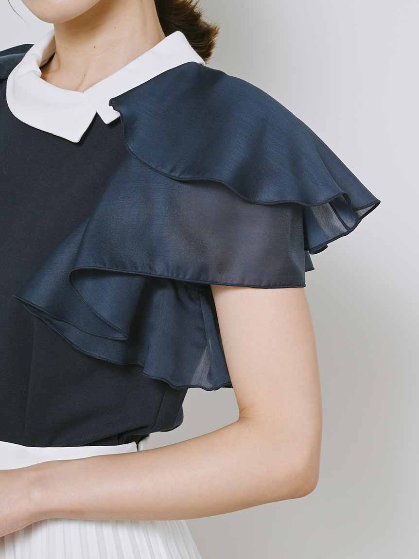 ひらひらと波打つフリリーな袖が印象的なカットトップス。軽やかなシアー素材を用いることで、女性らしい柔らかな表情に仕上げました。クラシカルなロールカラーは取り外しができ、シンプルな丸襟にアレンジ可能。ボディラインに沿うすっきりとしたシルエットなのでパンツともスカートとも合わせやすく、幅広いコーディネートに活躍してくれます。