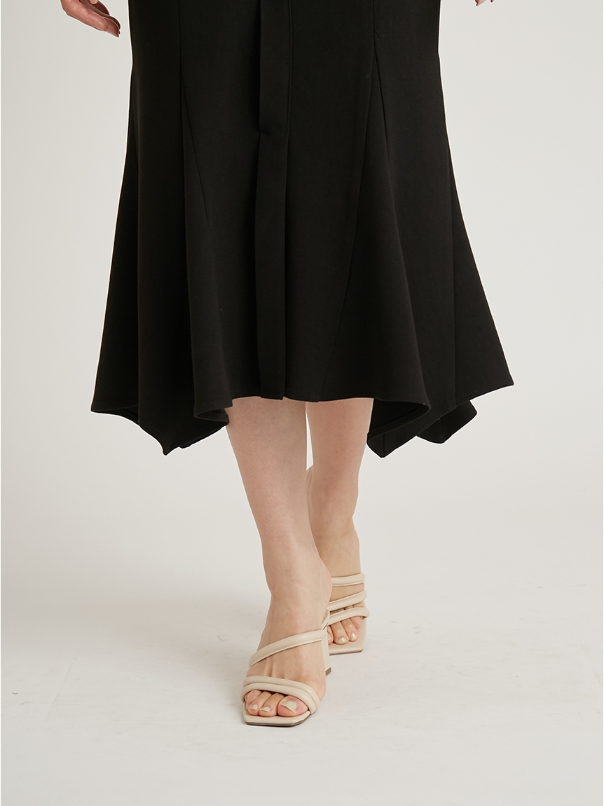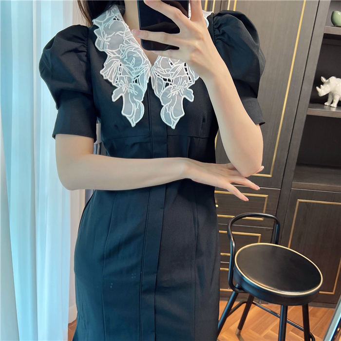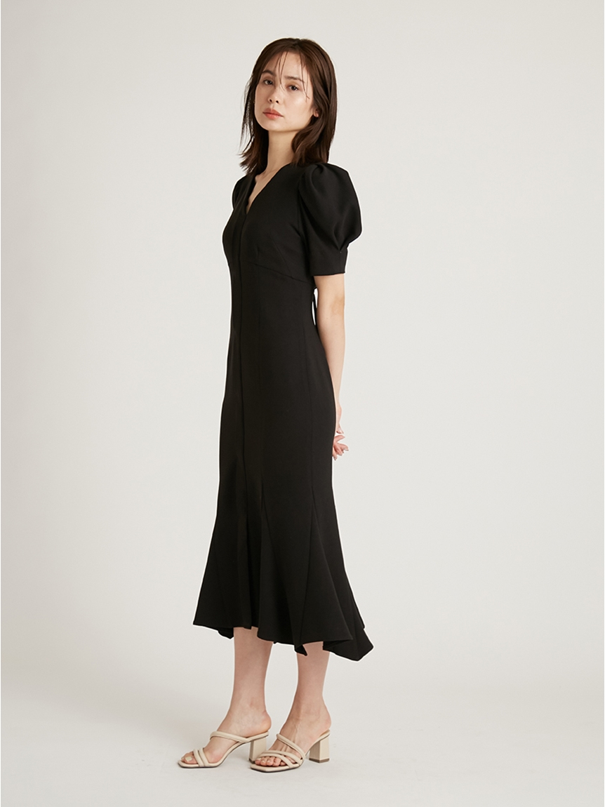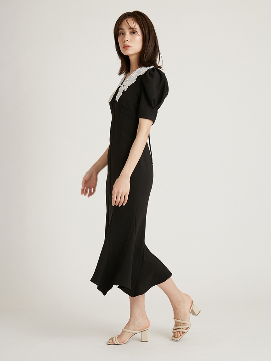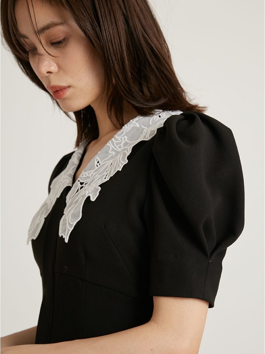 細やかな刺繍が施されたホワイトカラーが印象的な、クラシカルな雰囲気のワンピース。襟は取り外し可能な2WAYデザインなので、様々なオケージョンシーンからオフィスなどのデイリーにも、幅広いコーディネートに活躍してくれます。巧みな切り替えで仕立てられた美しいマーメイドシルエットで、女性らしさは一気に加速。イレギュラーなヘムラインがさり気なくモードなアクセントを添えています。