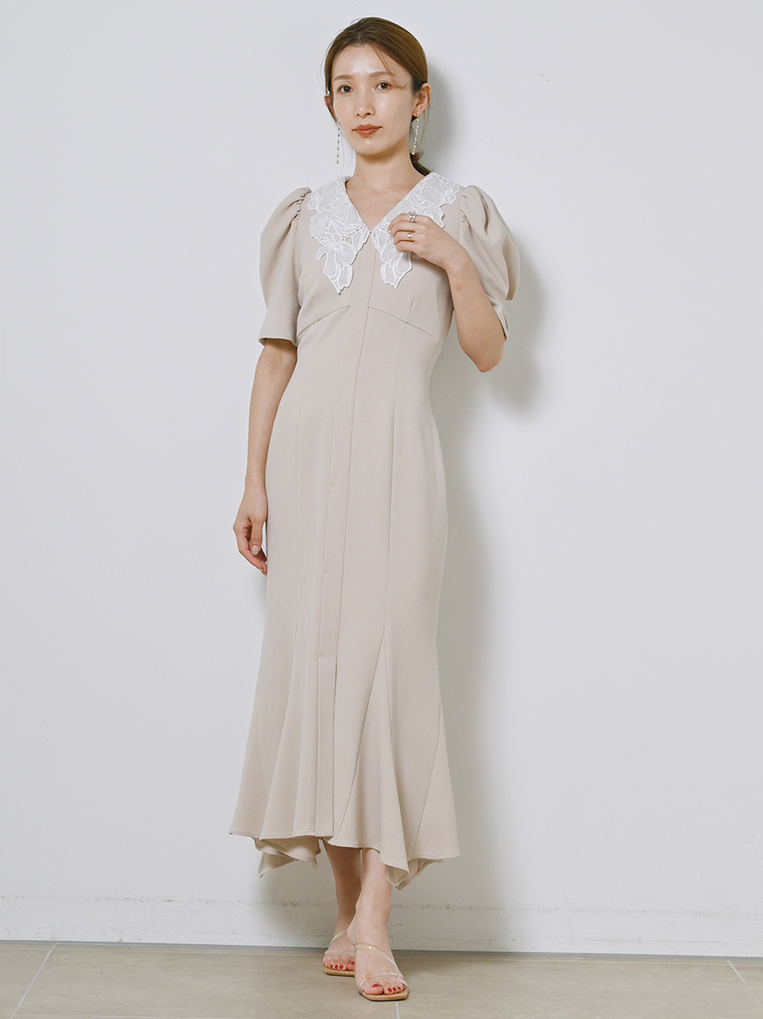 エンブロイダリーホワイトカラーマーメイドワンピース