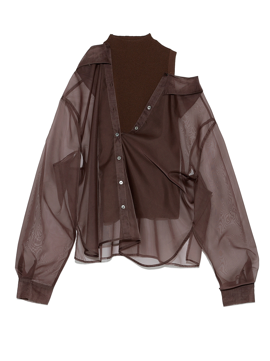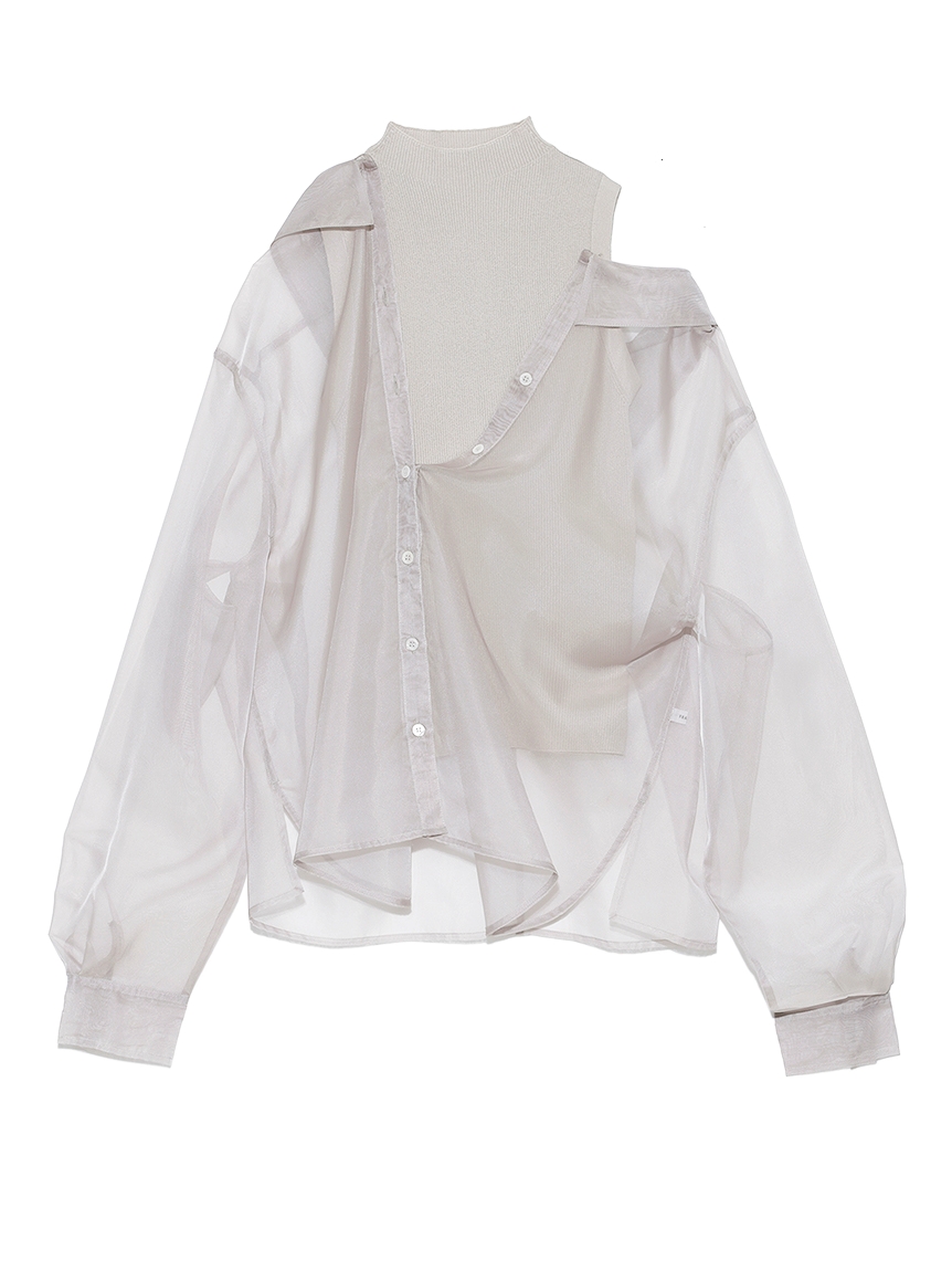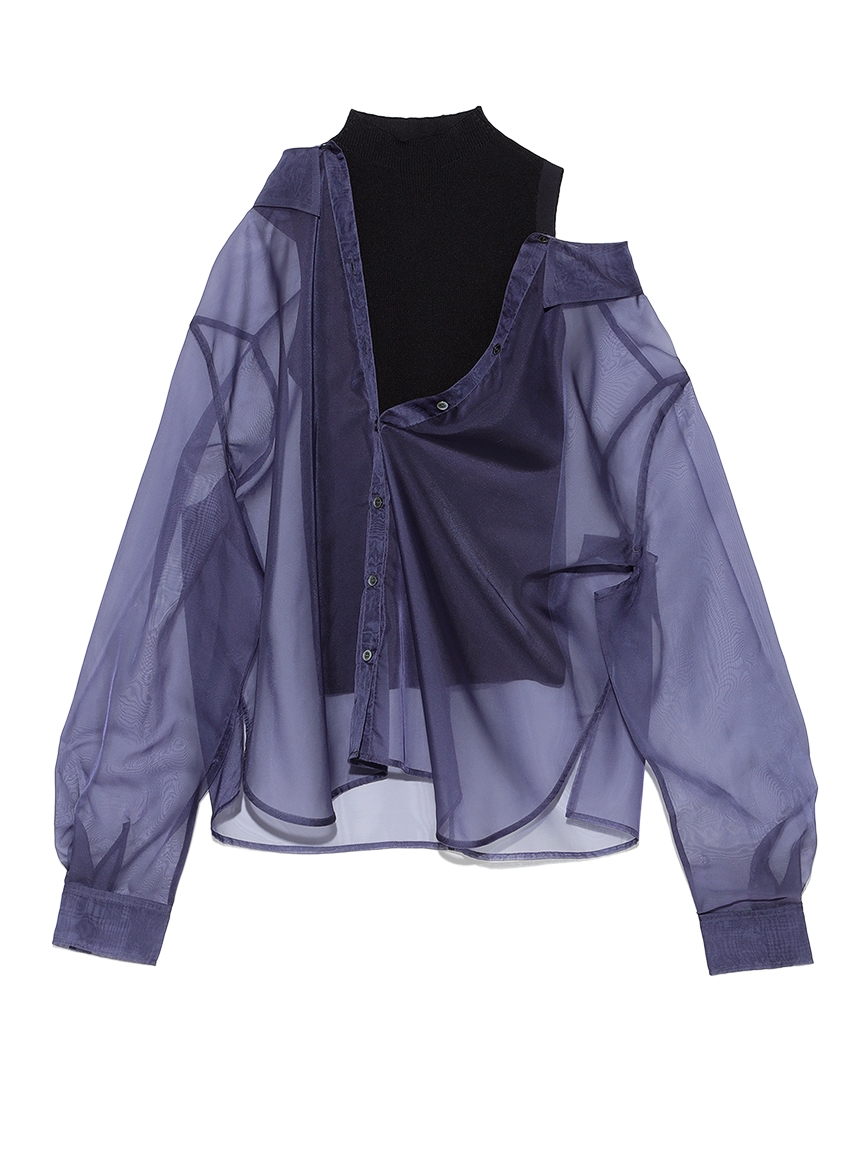 アシメシャツレイヤードニット