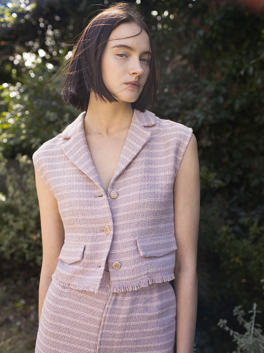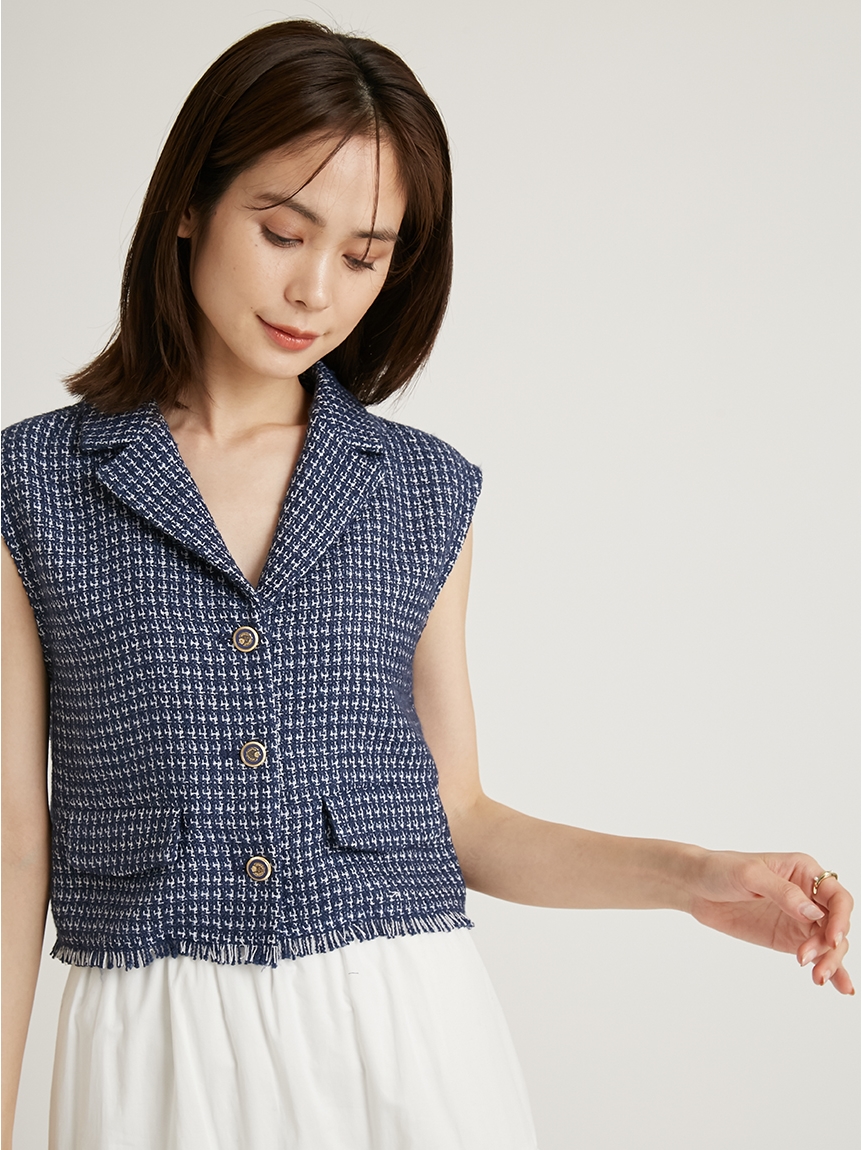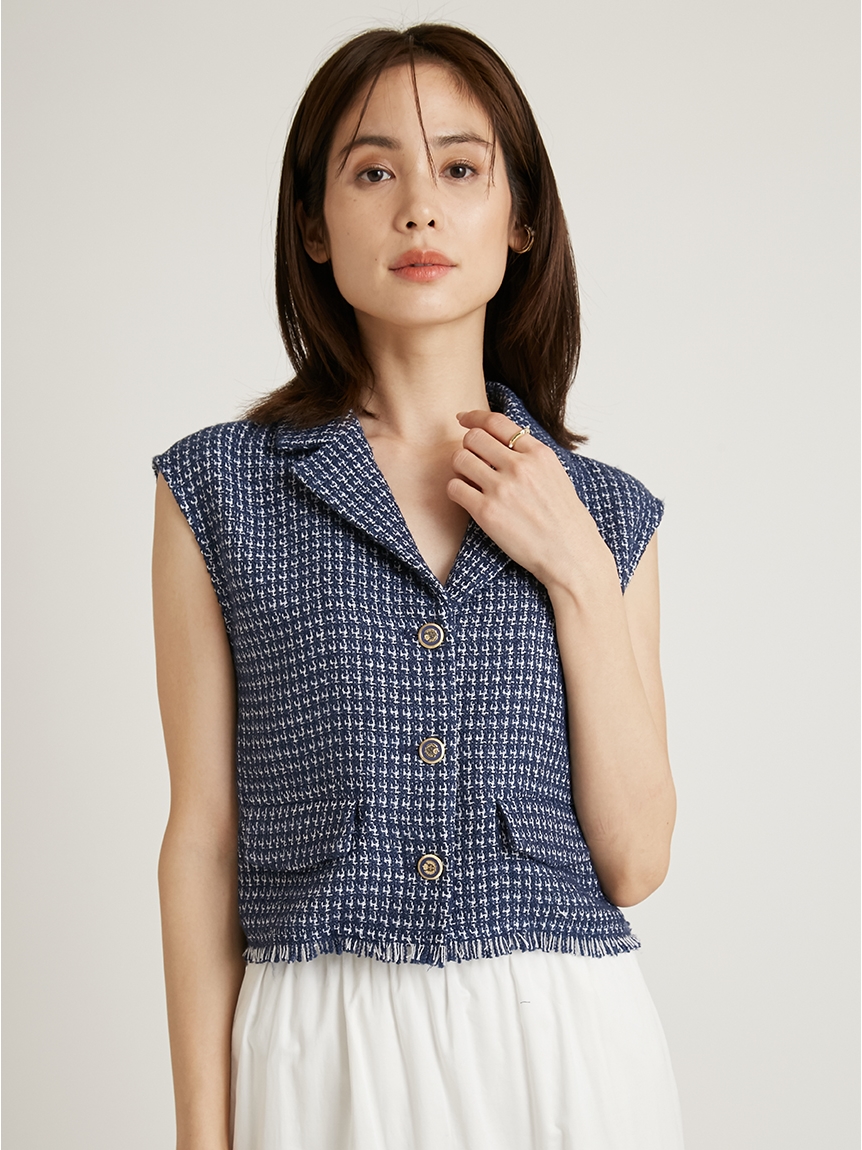 ツイードベストトップス