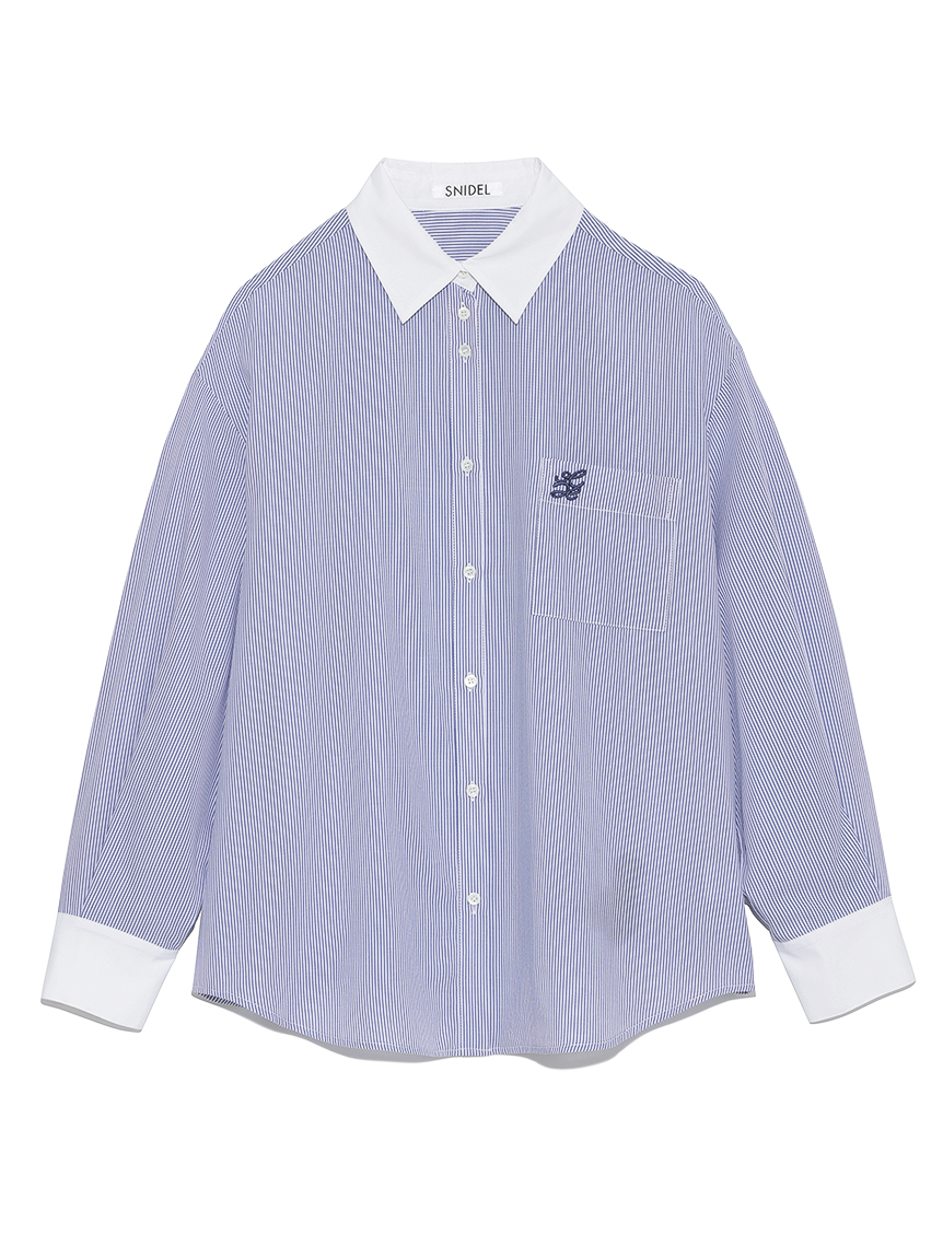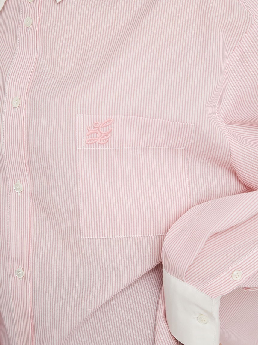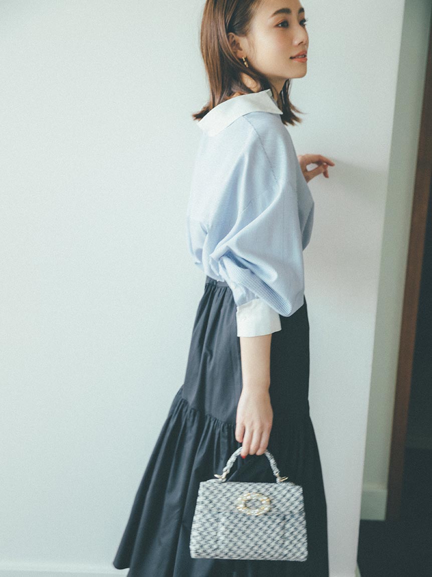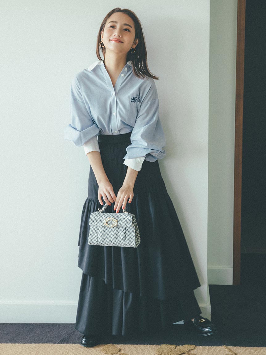 ドロップショルダーのオーバーサイズシルエットが特徴的な、スタイリングに抜け感を与えるロングスリーブシャツ。落ち感のある生地を使用することで、メンズライクなシルエットでも女性らしく仕上げています。シャツはカジュアルで着づらいと感じていた方にも着ていただけるようにと素材選びにこだわった、大人の女性におすすめの1着です。裾はインでもアウトでもバランス良く決まるようにと計算されたデザイン。パンツともスカートとも合わせやすく、幅広いコーディネートに活躍してくれます。