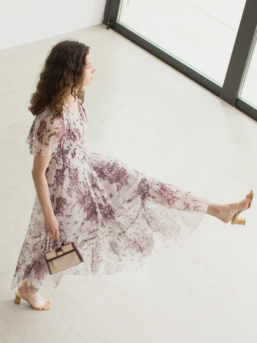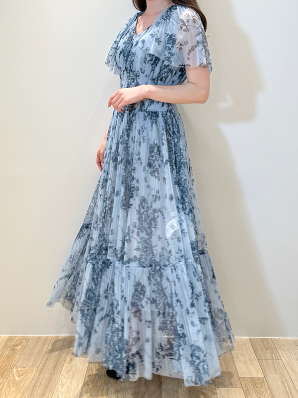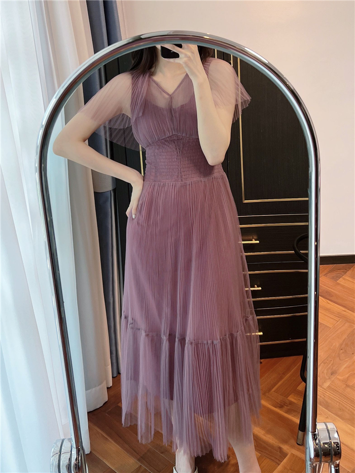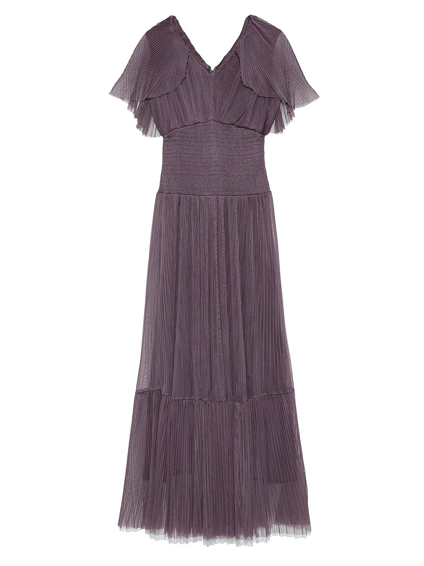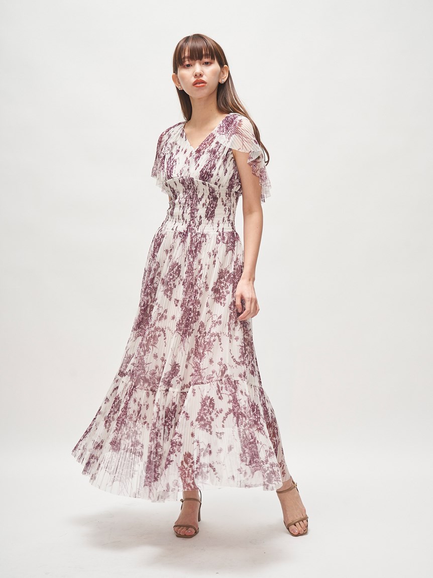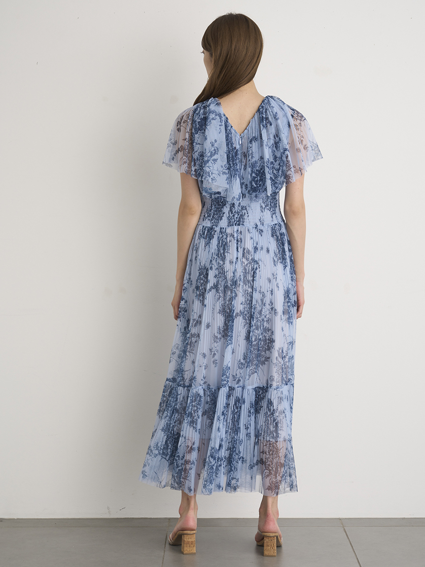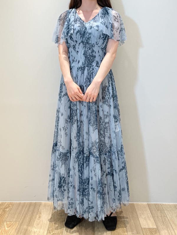 贅沢に細やかなプリーツを効かせた、エレガントで華やかなチュールドレス。ひらりと広がるケープ風の袖でトレンド感も押さえています。ウエスト部分はシャーリングでキュッと締めることでメリハリのあるシルエットをメイク。スタイルアップ効果を存分に期待できます。合わせるアイテム次第でオケージョンシーンからデイリーまで幅広く活躍してくれる万能な1着です。