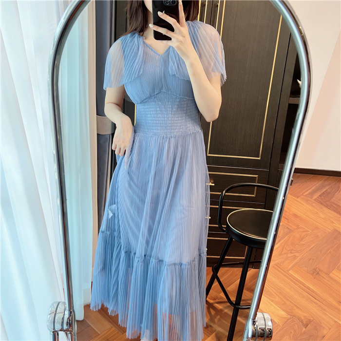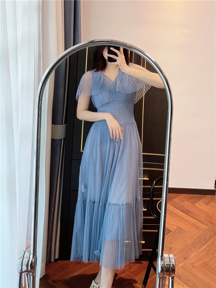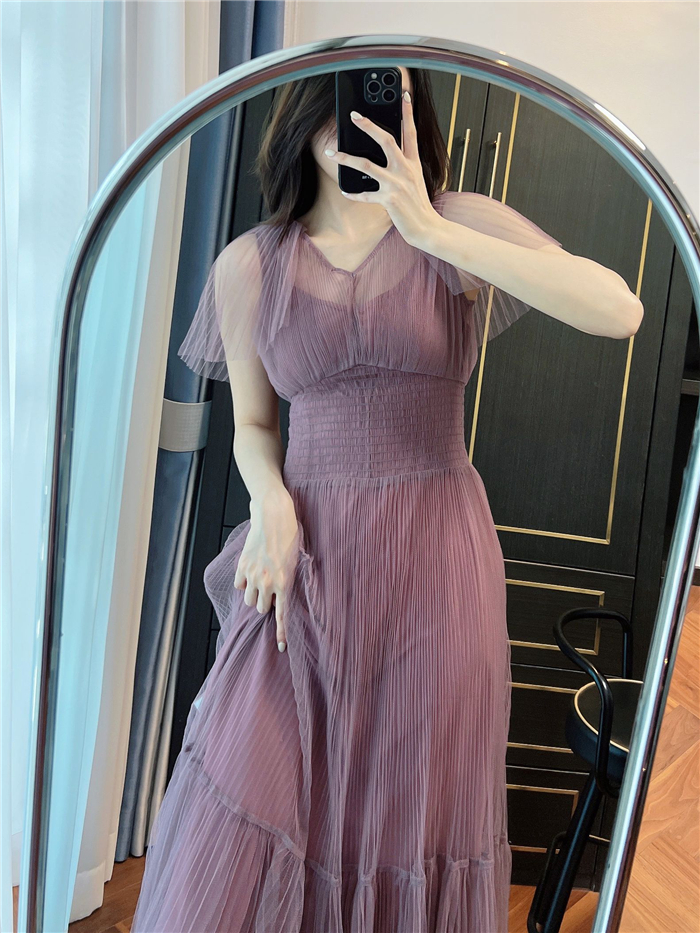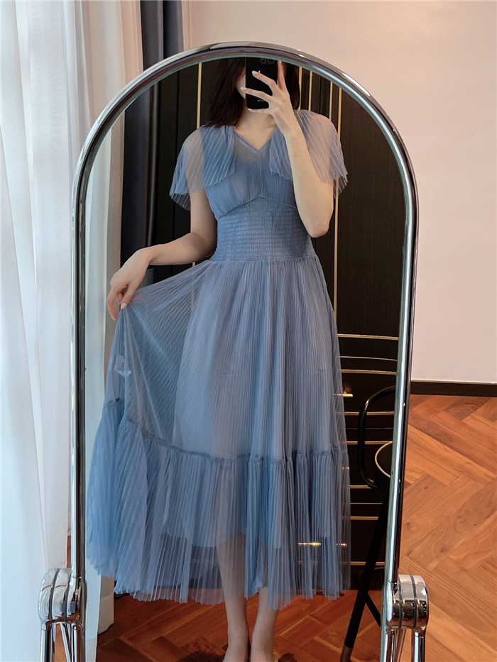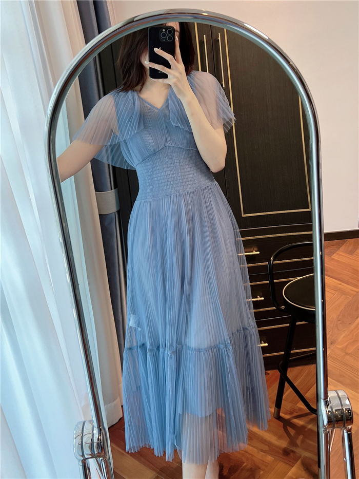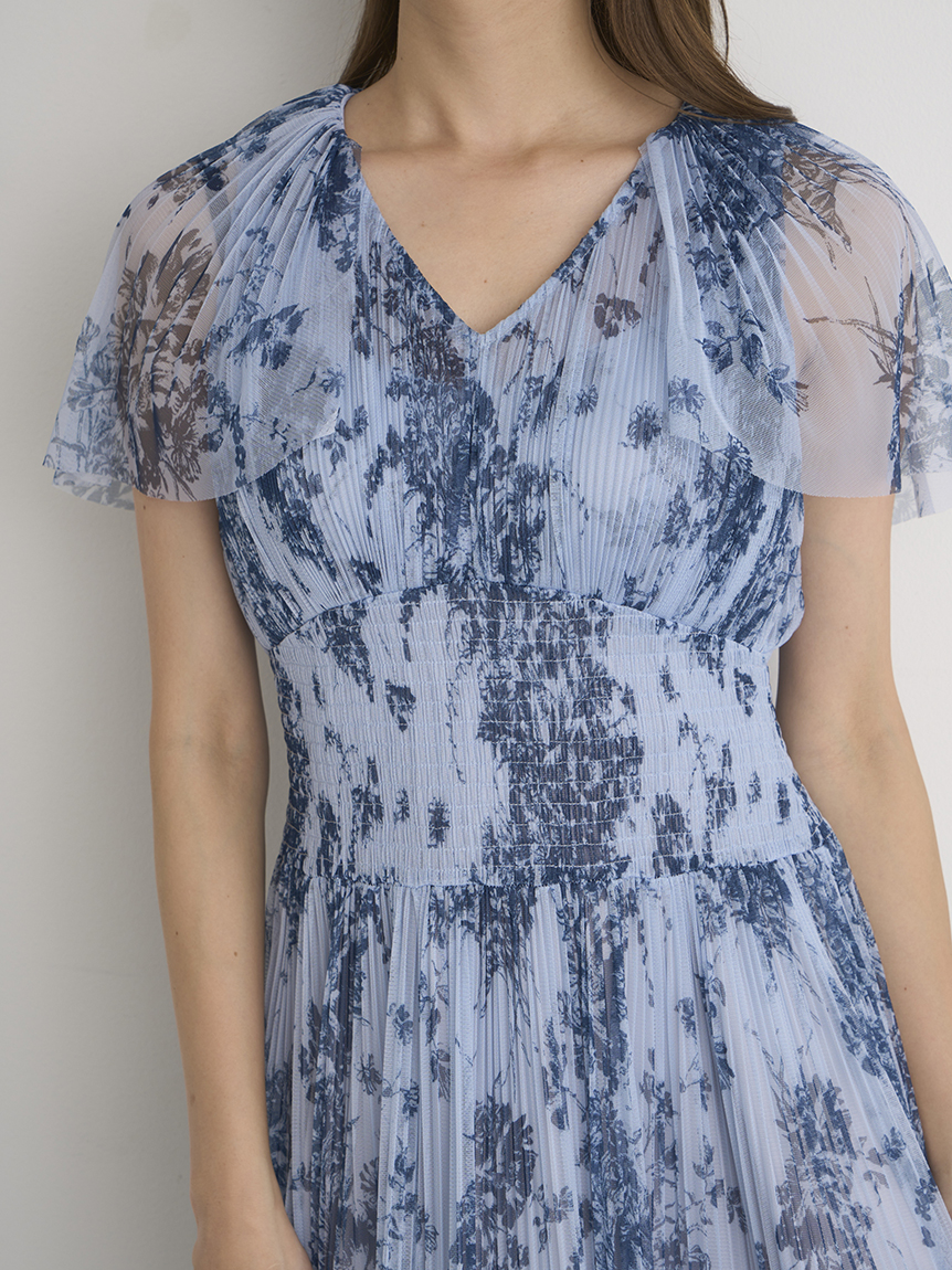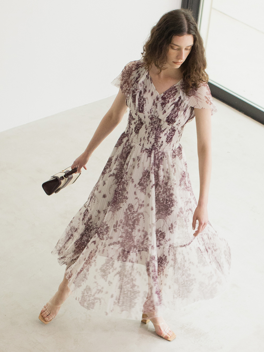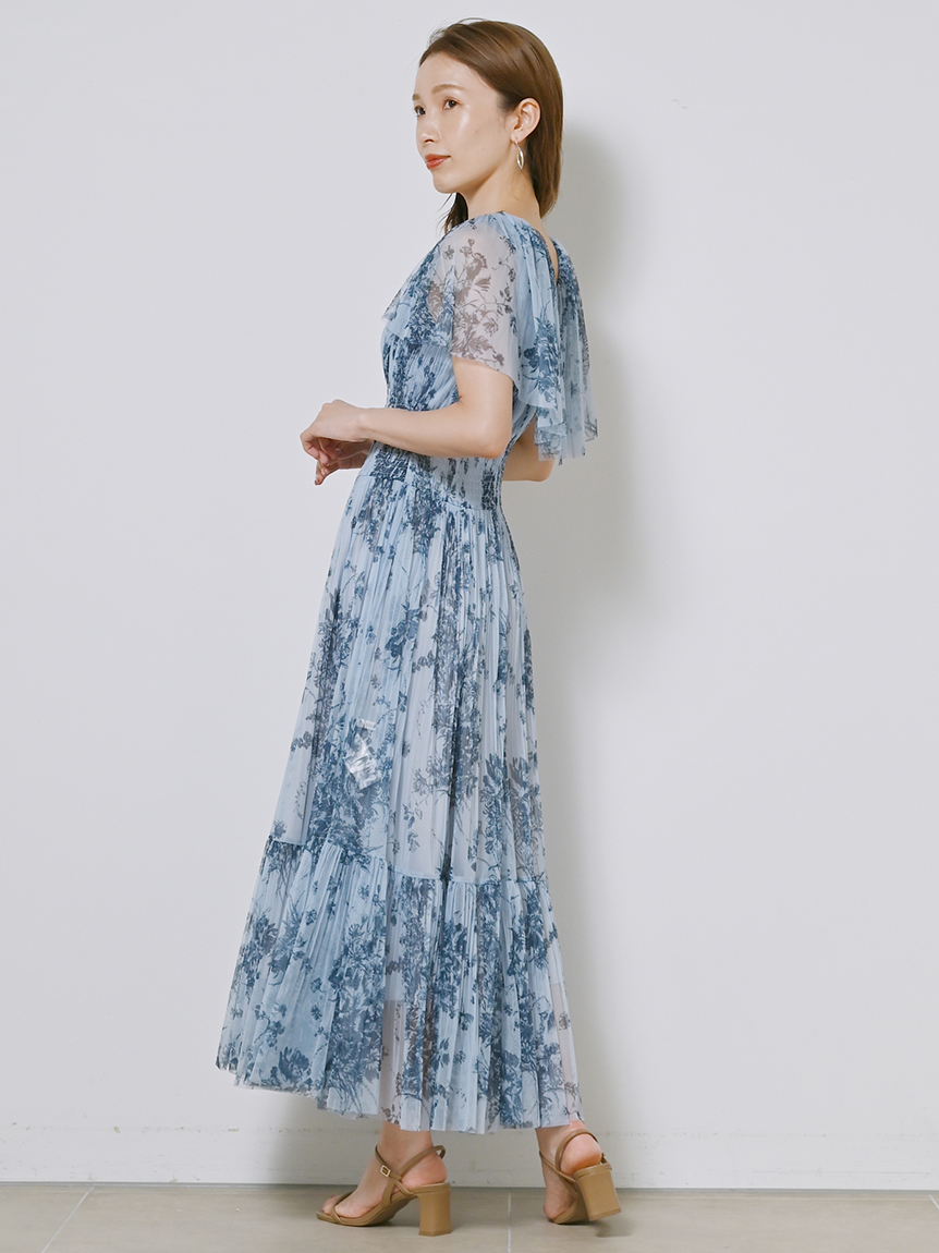 贅沢に細やかなプリーツを効かせた、エレガントで華やかなチュールドレス。ひらりと広がるケープ風の袖でトレンド感も押さえています。ウエスト部分はシャーリングでキュッと締めることでメリハリのあるシルエットをメイク。スタイルアップ効果を存分に期待できます。合わせるアイテム次第でオケージョンシーンからデイリーまで幅広く活躍してくれる万能な1着です。