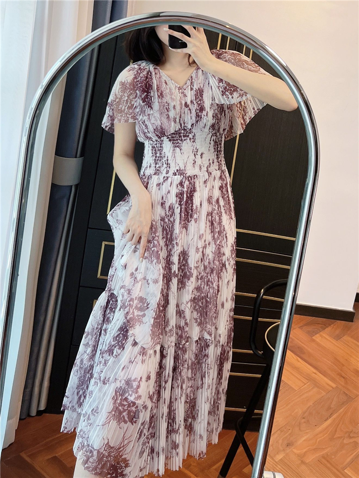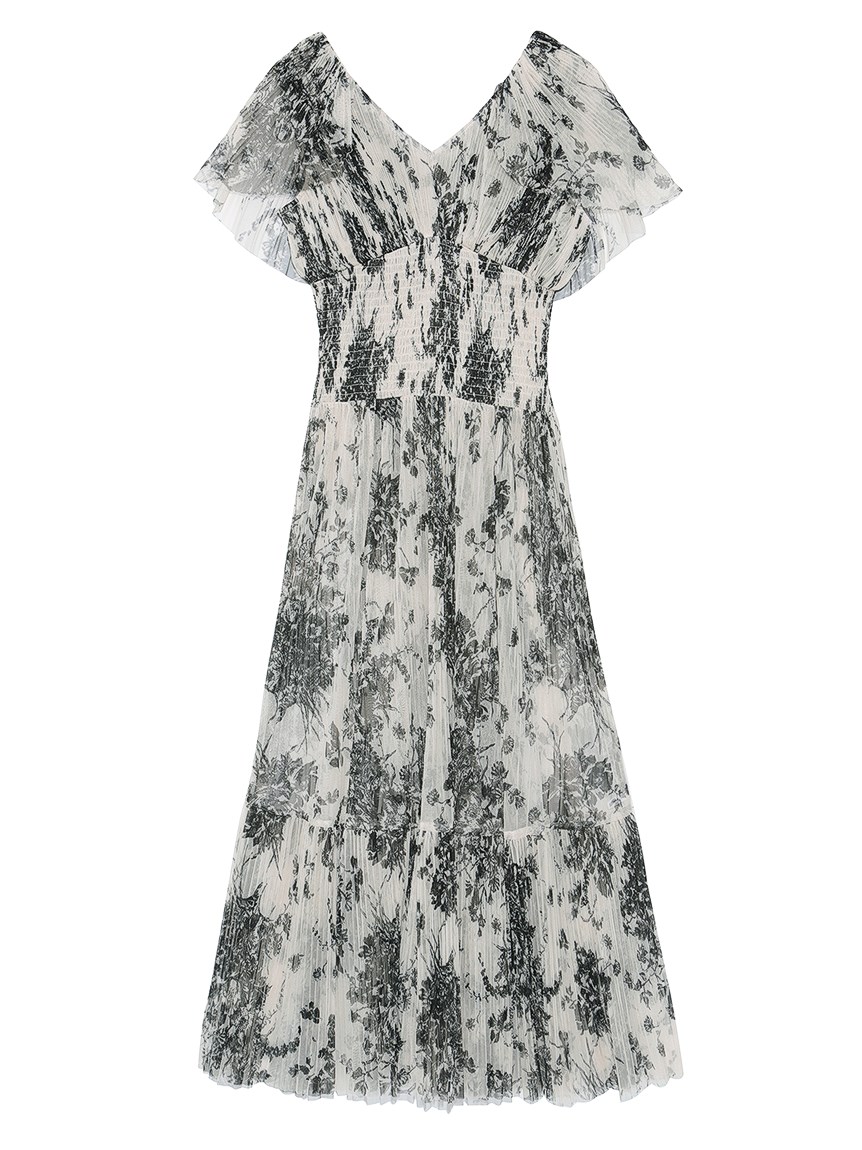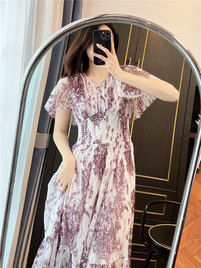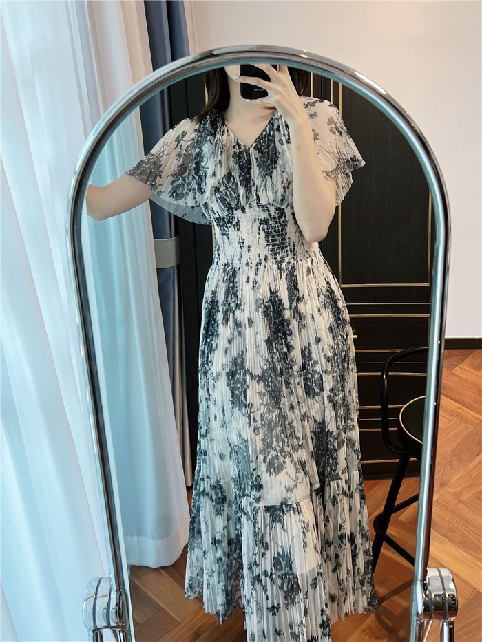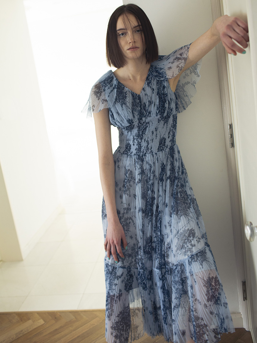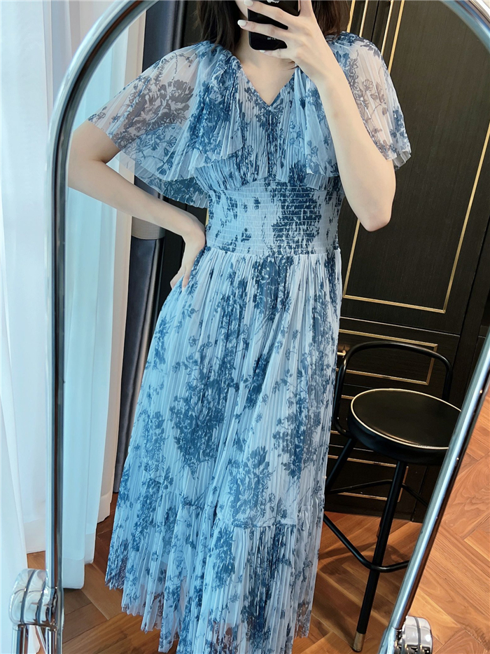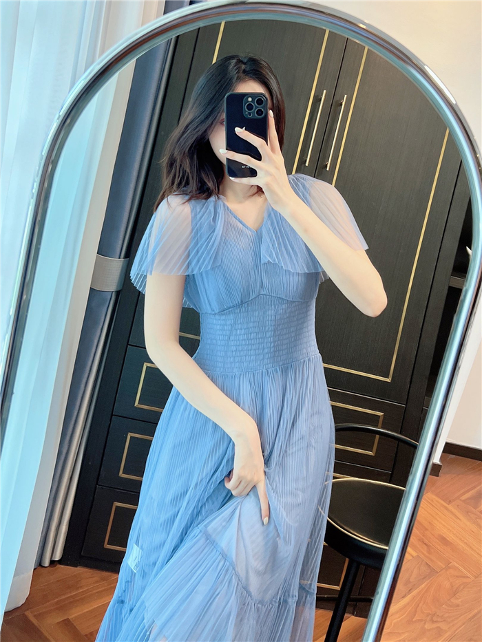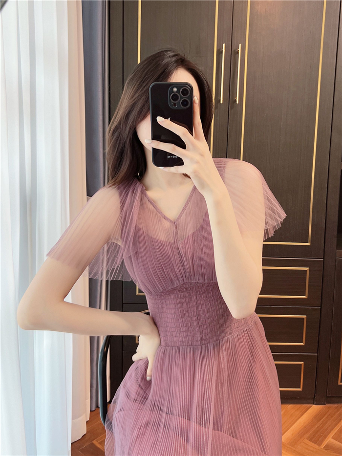 贅沢に細やかなプリーツを効かせた、エレガントで華やかなチュールドレス。ひらりと広がるケープ風の袖でトレンド感も押さえています。ウエスト部分はシャーリングでキュッと締めることでメリハリのあるシルエットをメイク。スタイルアップ効果を存分に期待できます。合わせるアイテム次第でオケージョンシーンからデイリーまで幅広く活躍してくれる万能な1着です。