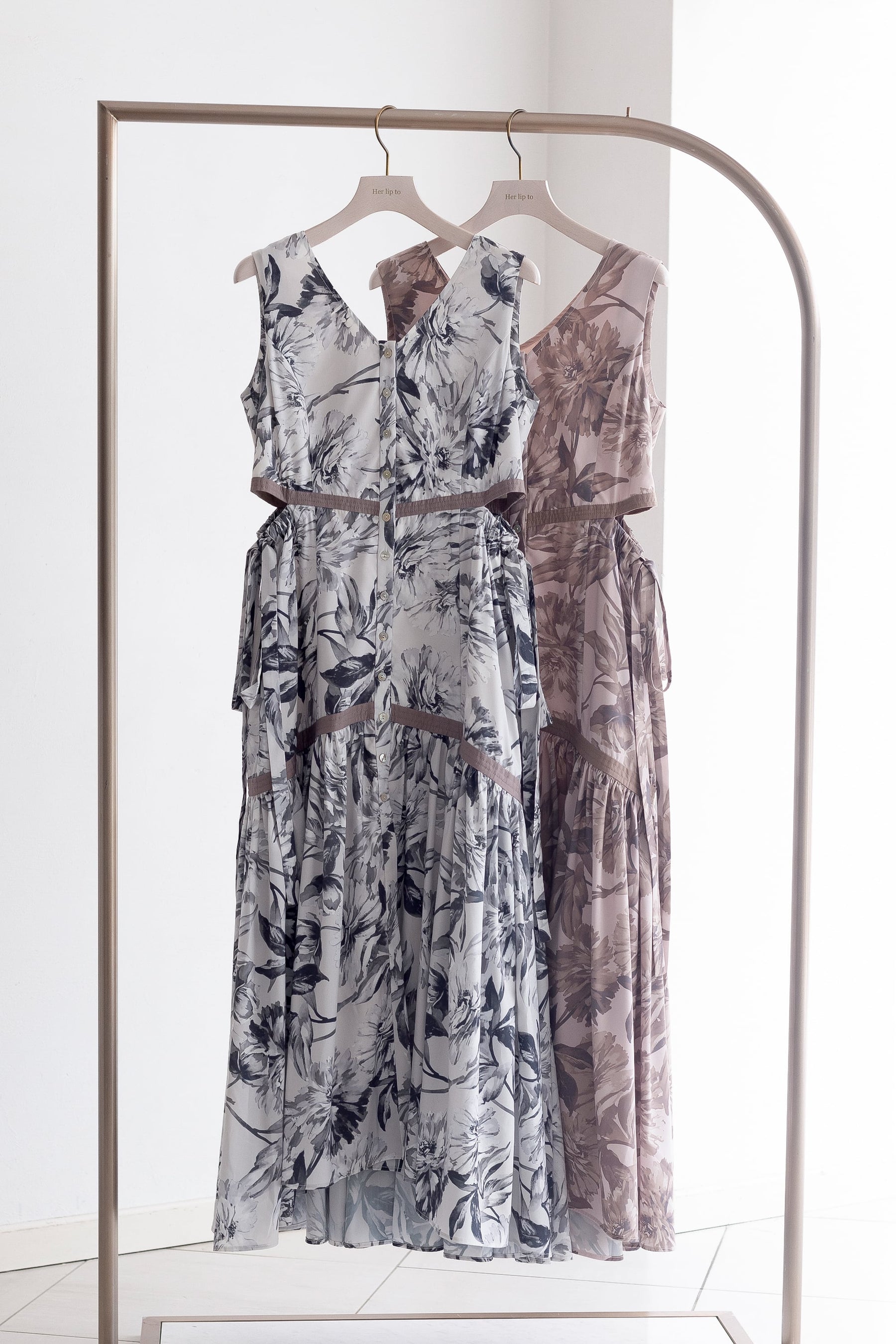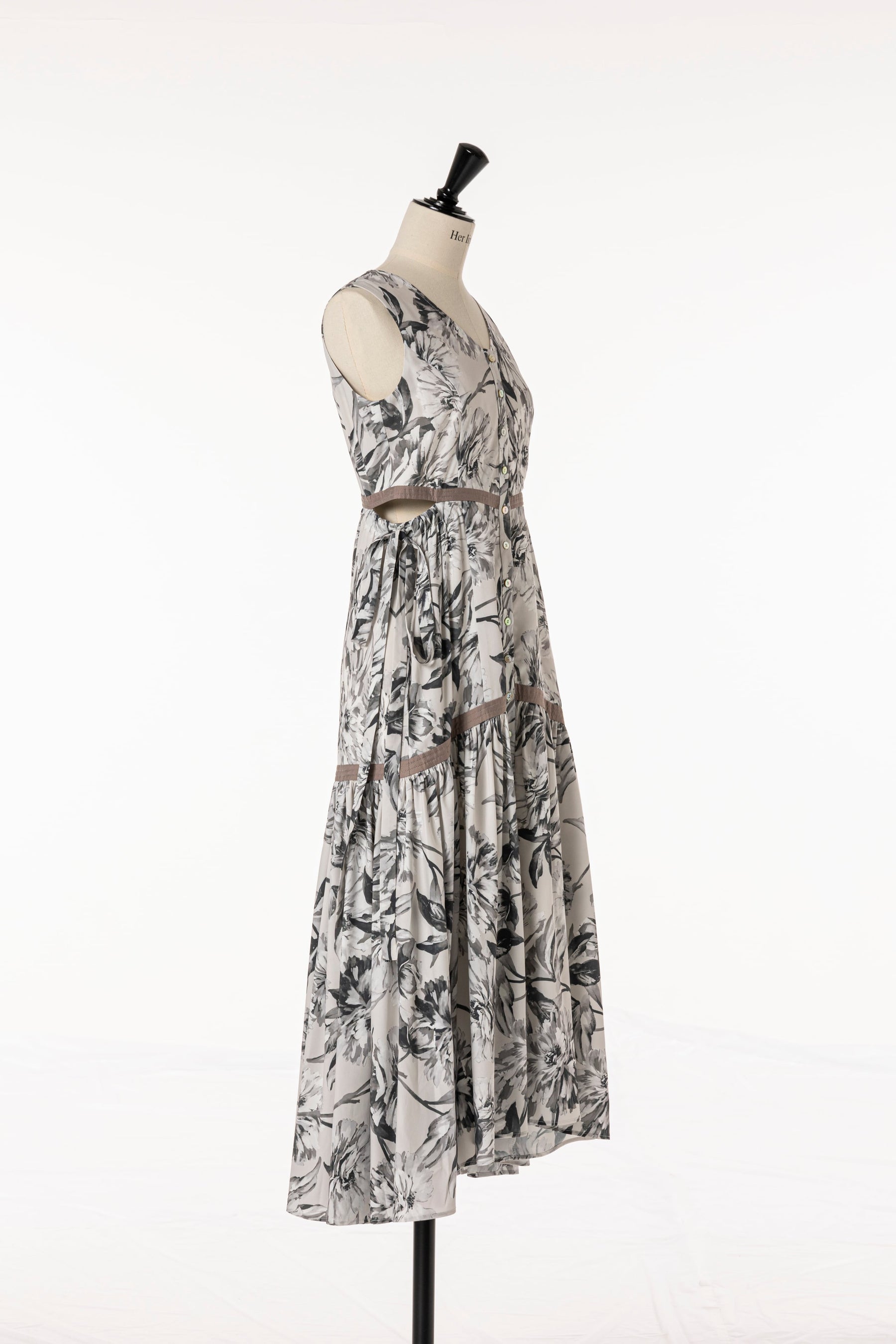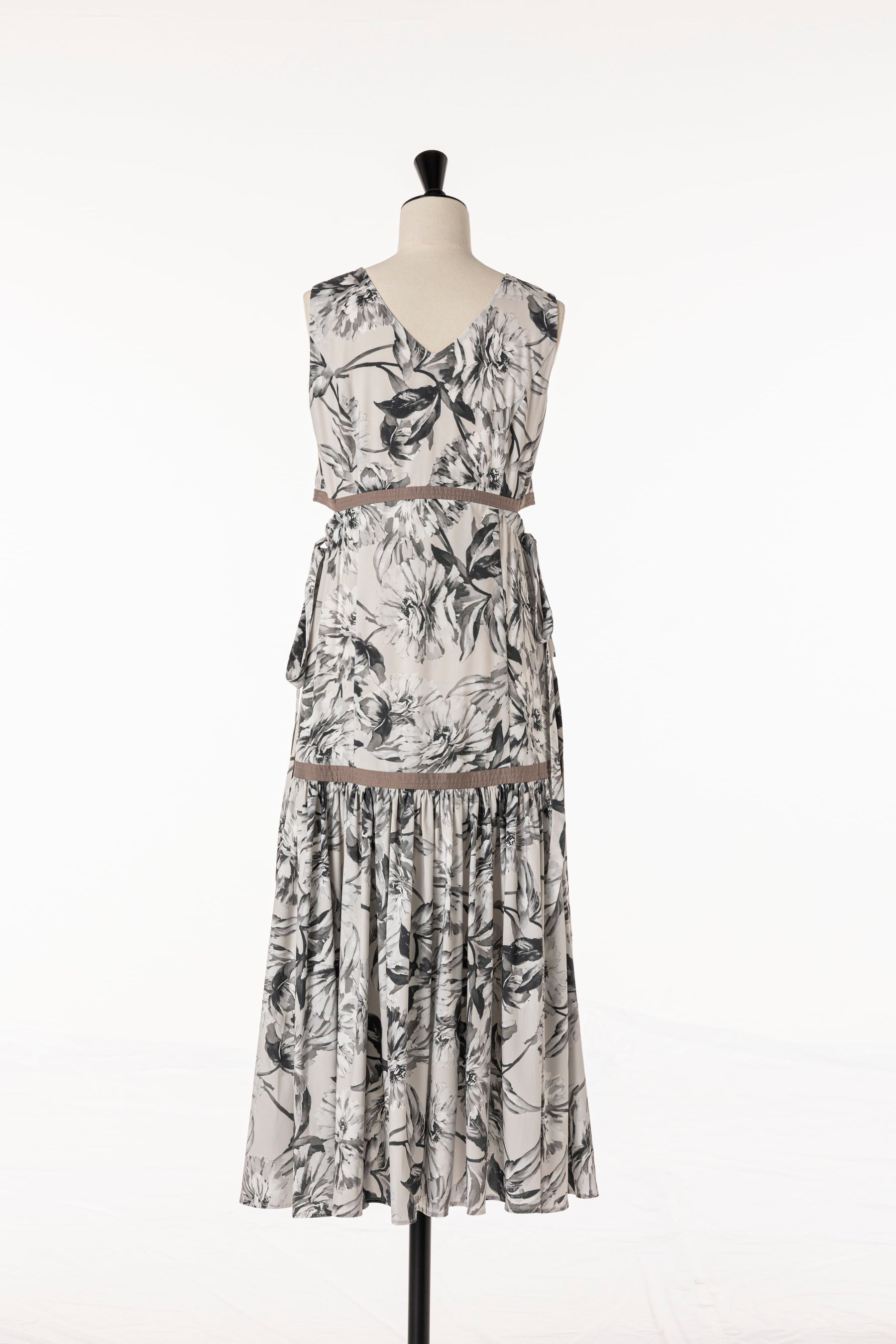 水彩タッチで表現されたオリジナルプリントのフローラル柄がエレガントなサマードレス。