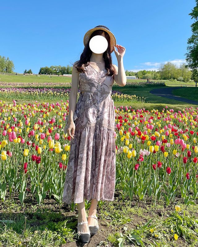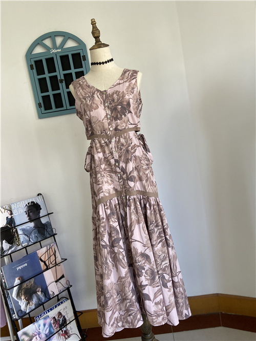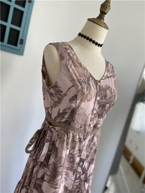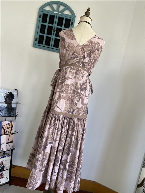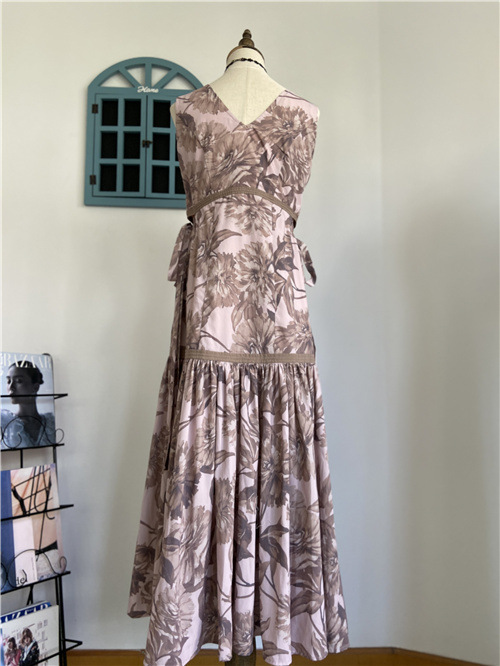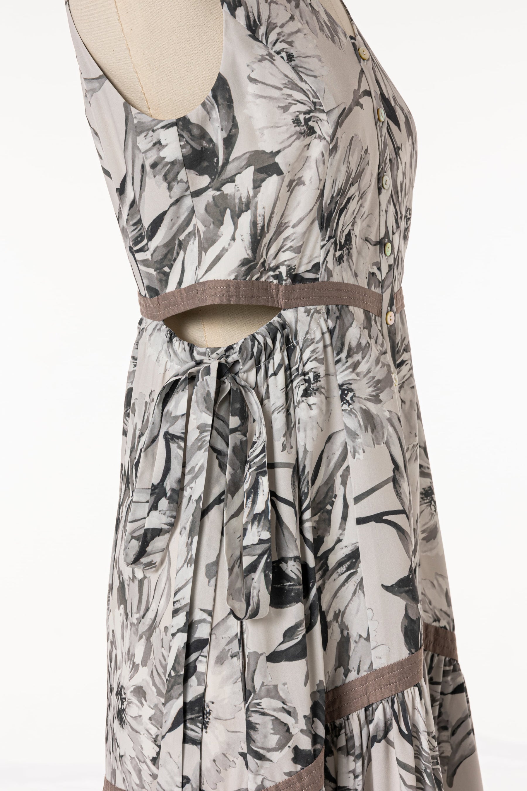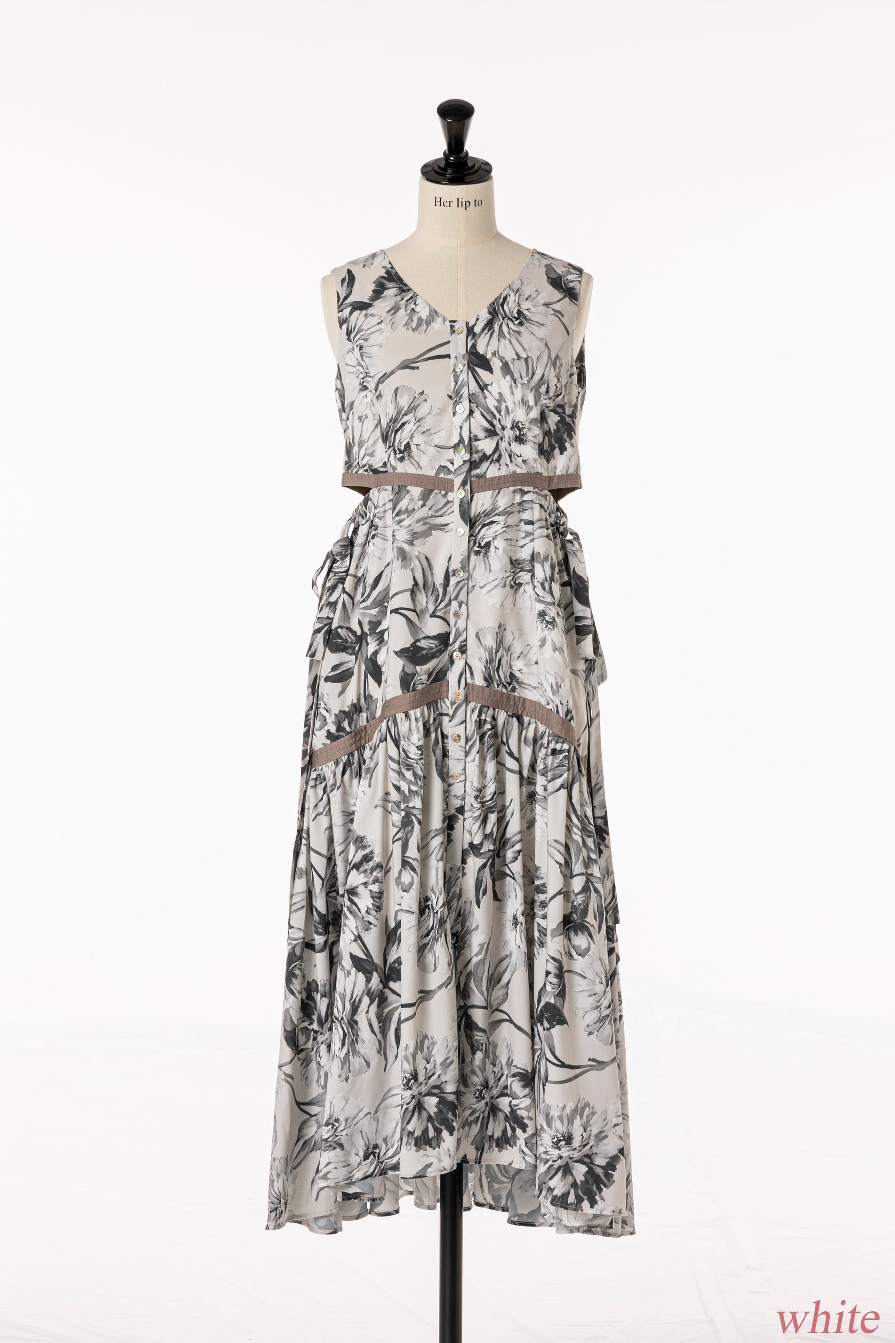 水彩タッチで表現されたオリジナルプリントのフローラル柄がエレガントなサマードレス。