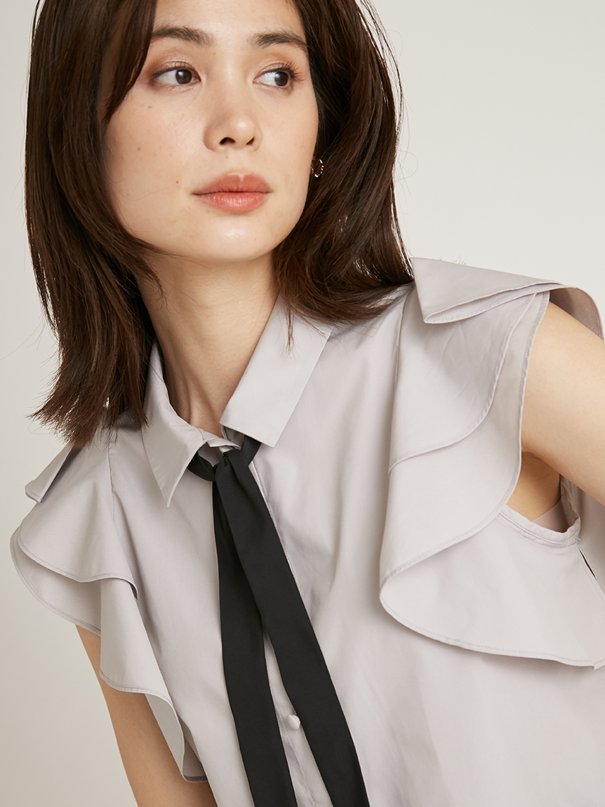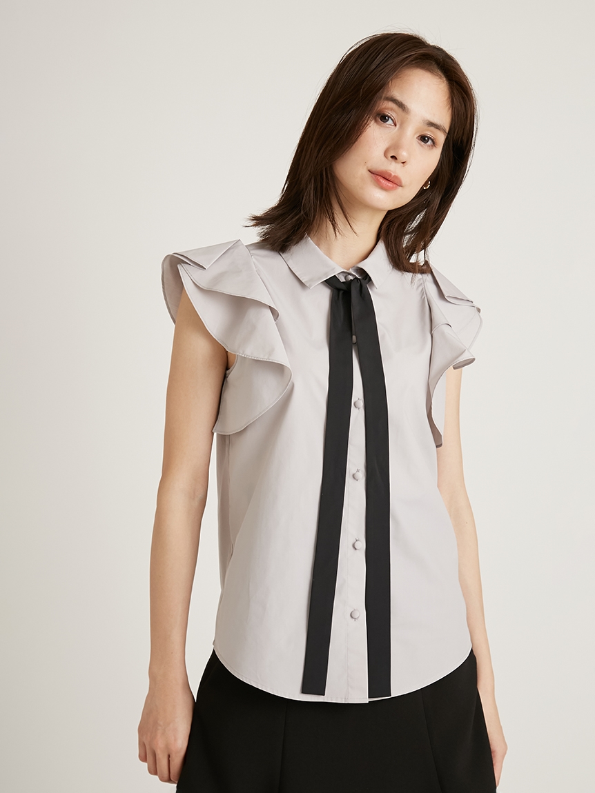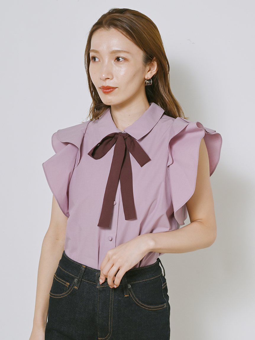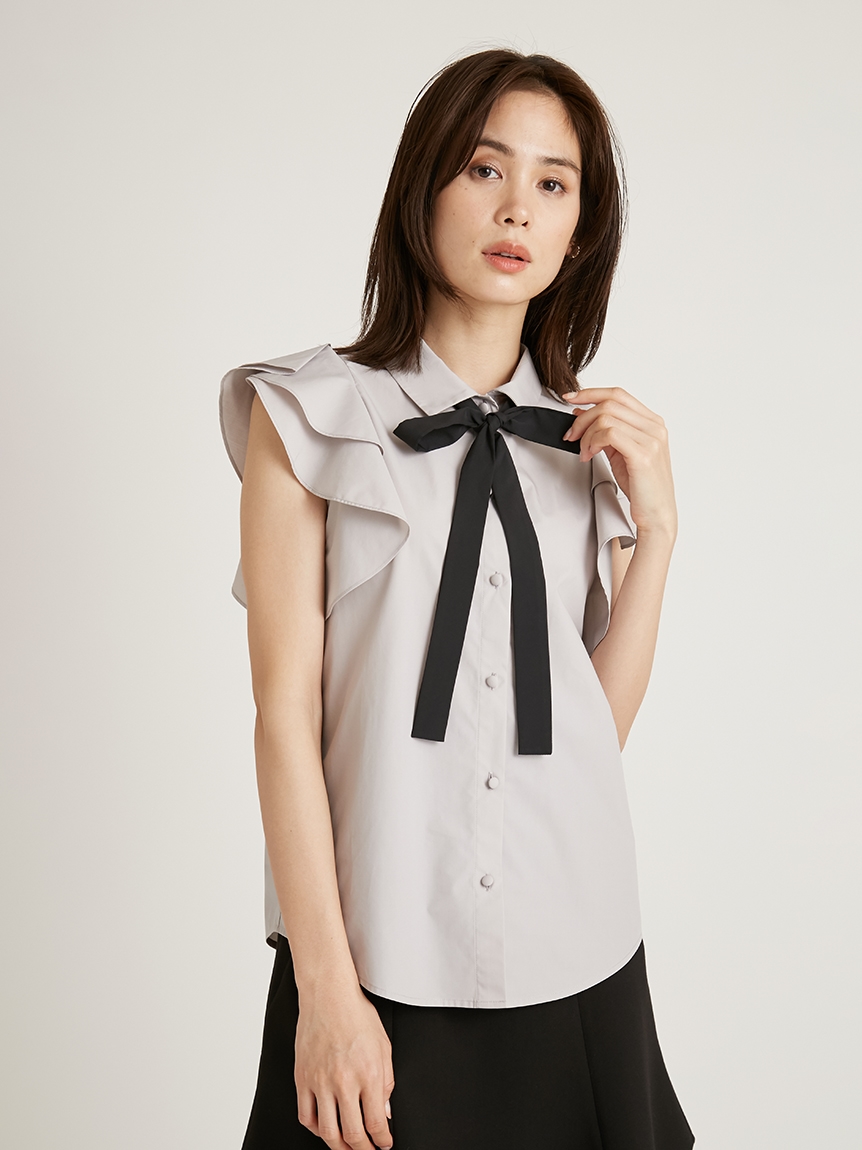 ノースリフリルボウタイブラウス