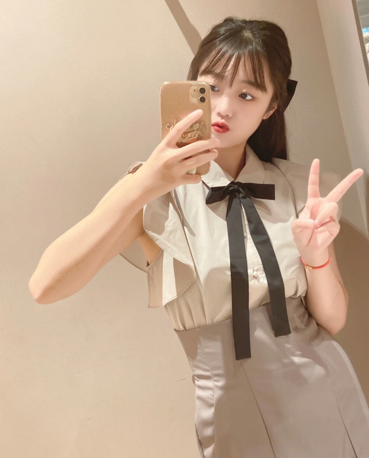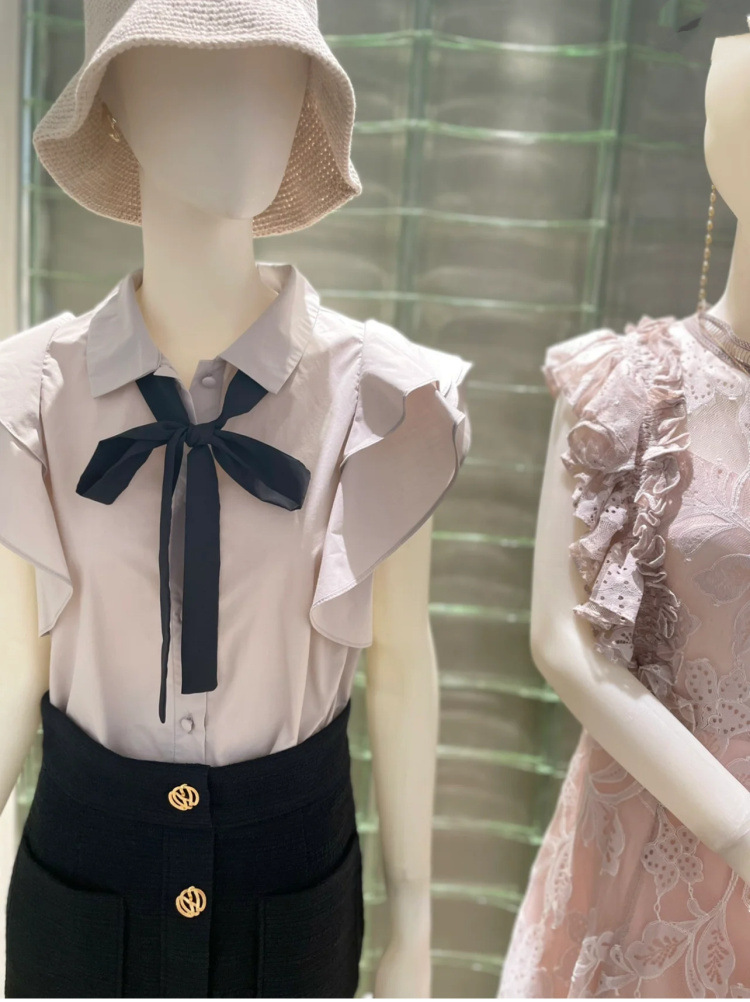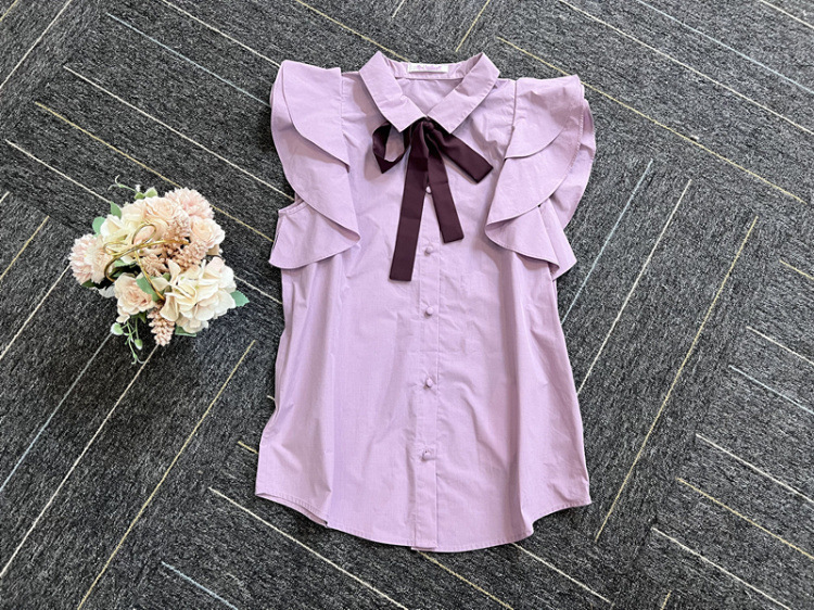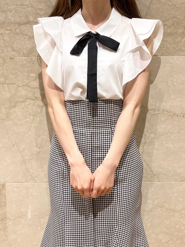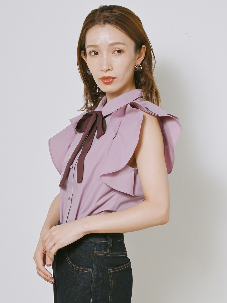 ノースリフリルボウタイブラウス