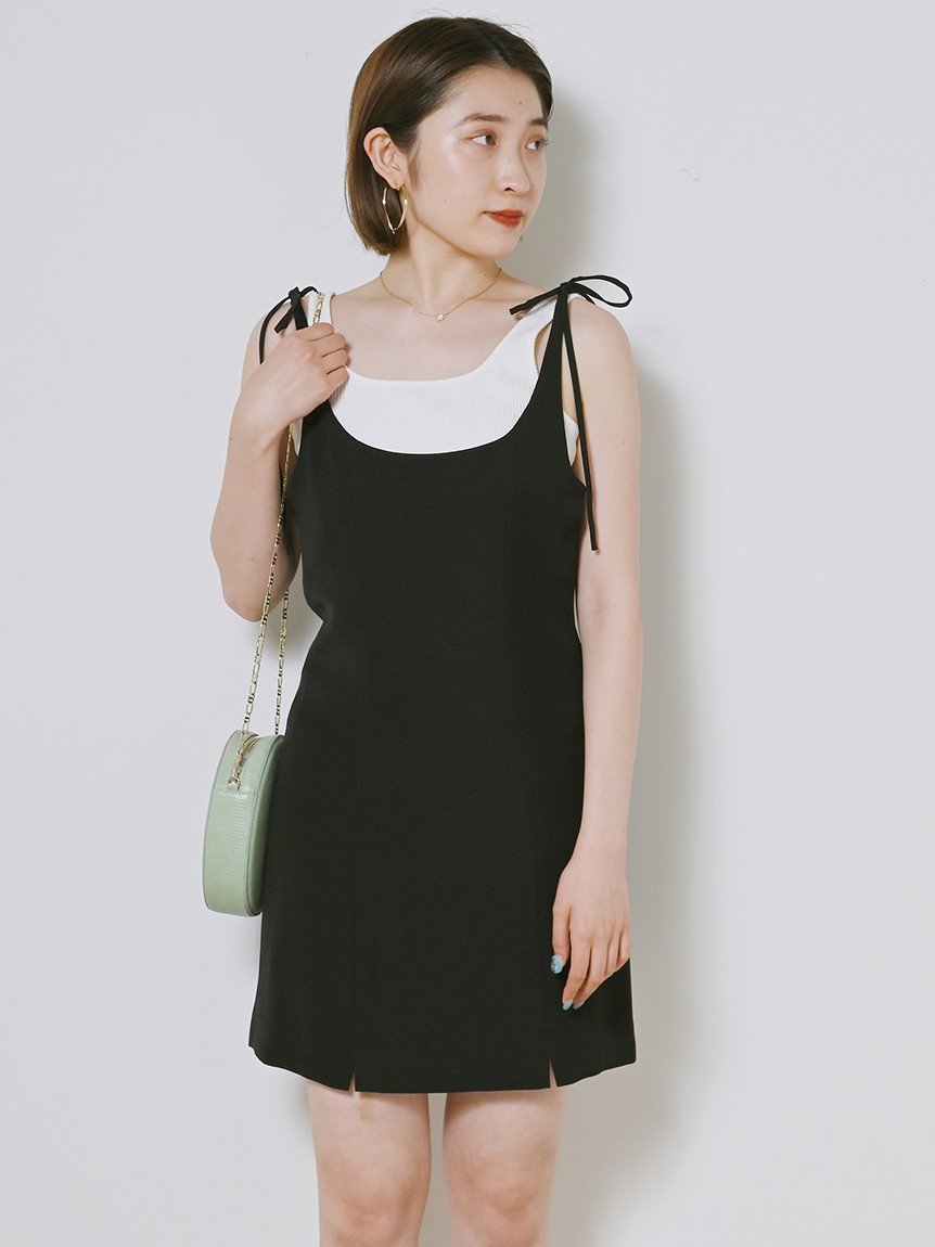 トレンド継続中のミニ丈ワンピースは、インナー用のタンクトップをセットにしてご用意。ワンピースの上品な素材感とカットソーのカジュアル感の絶妙なバランスが、レイヤードコーデをよりお洒落に魅せてくれます。ワンピースはストラップリボンやスリットをあしらいレディライクな仕上がりに。それぞれ単品でも活躍してくれるので、コーディネートの幅は一気に広がります。