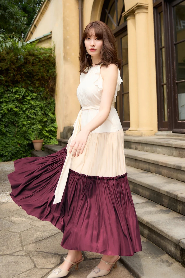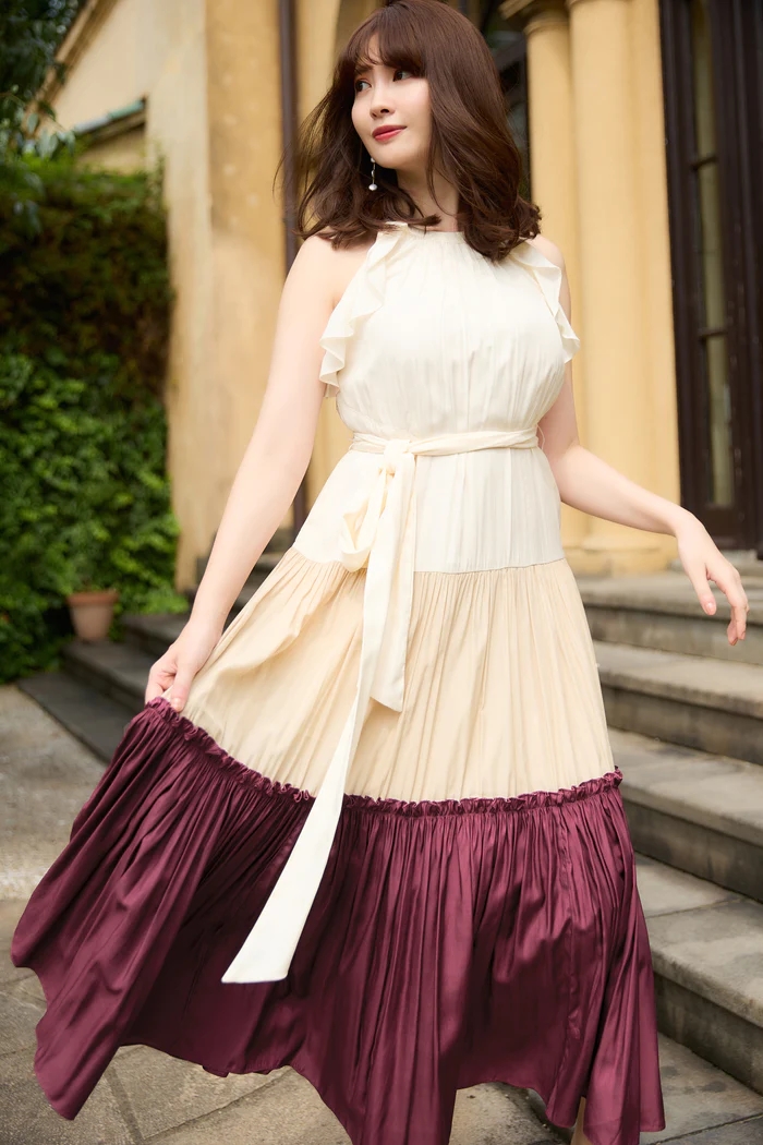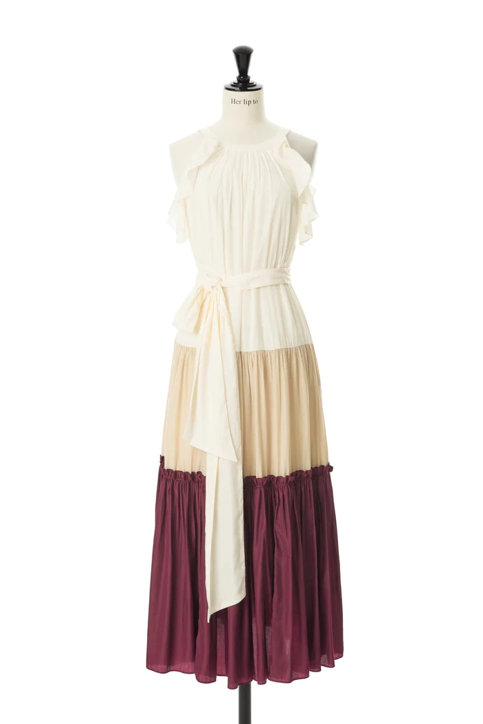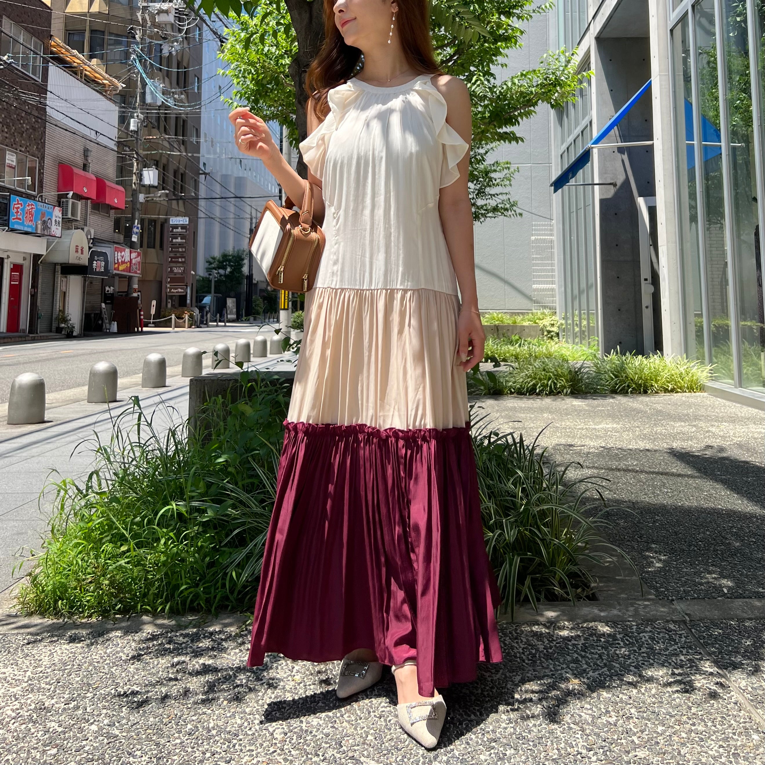 夏のムードを盛り上げてくれる配色使いが目を惹くドレス。