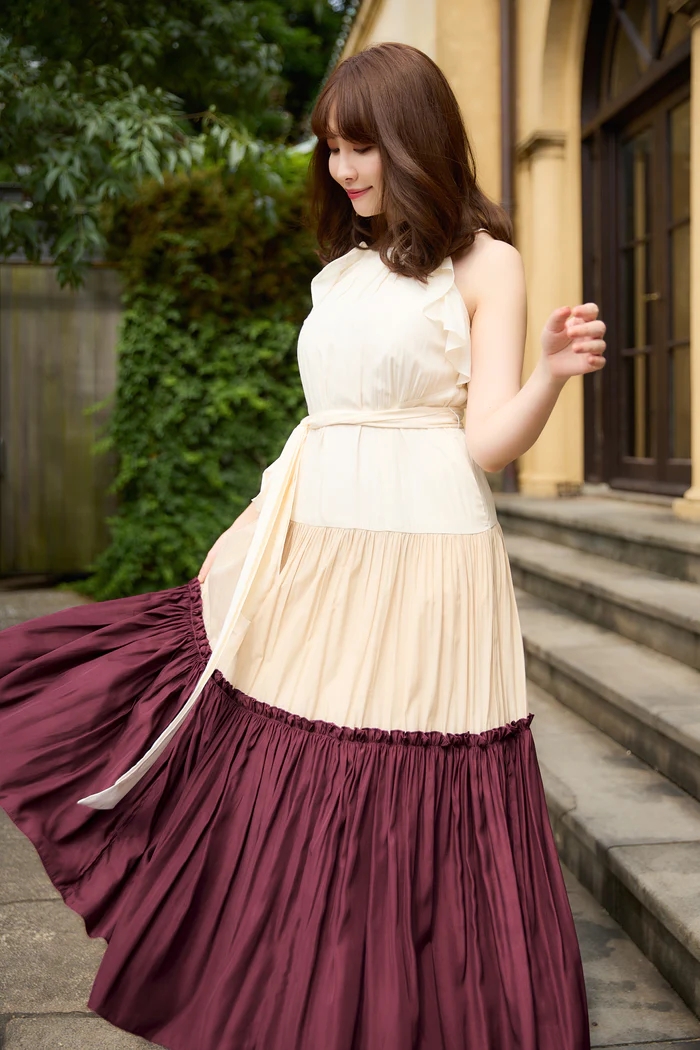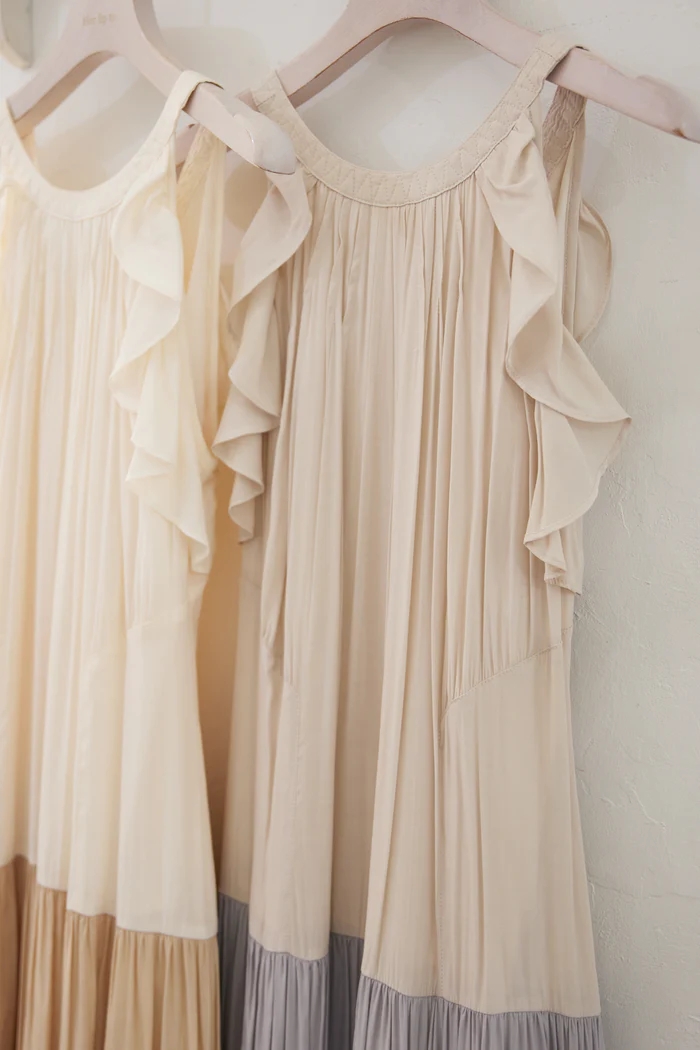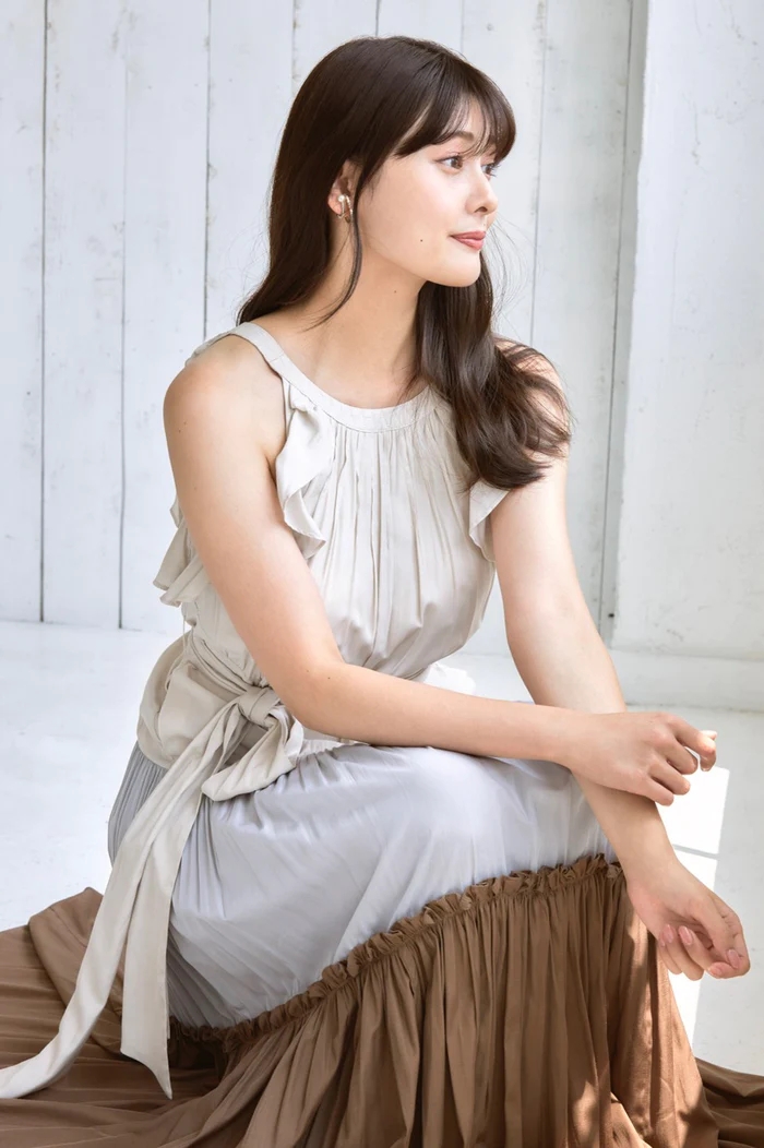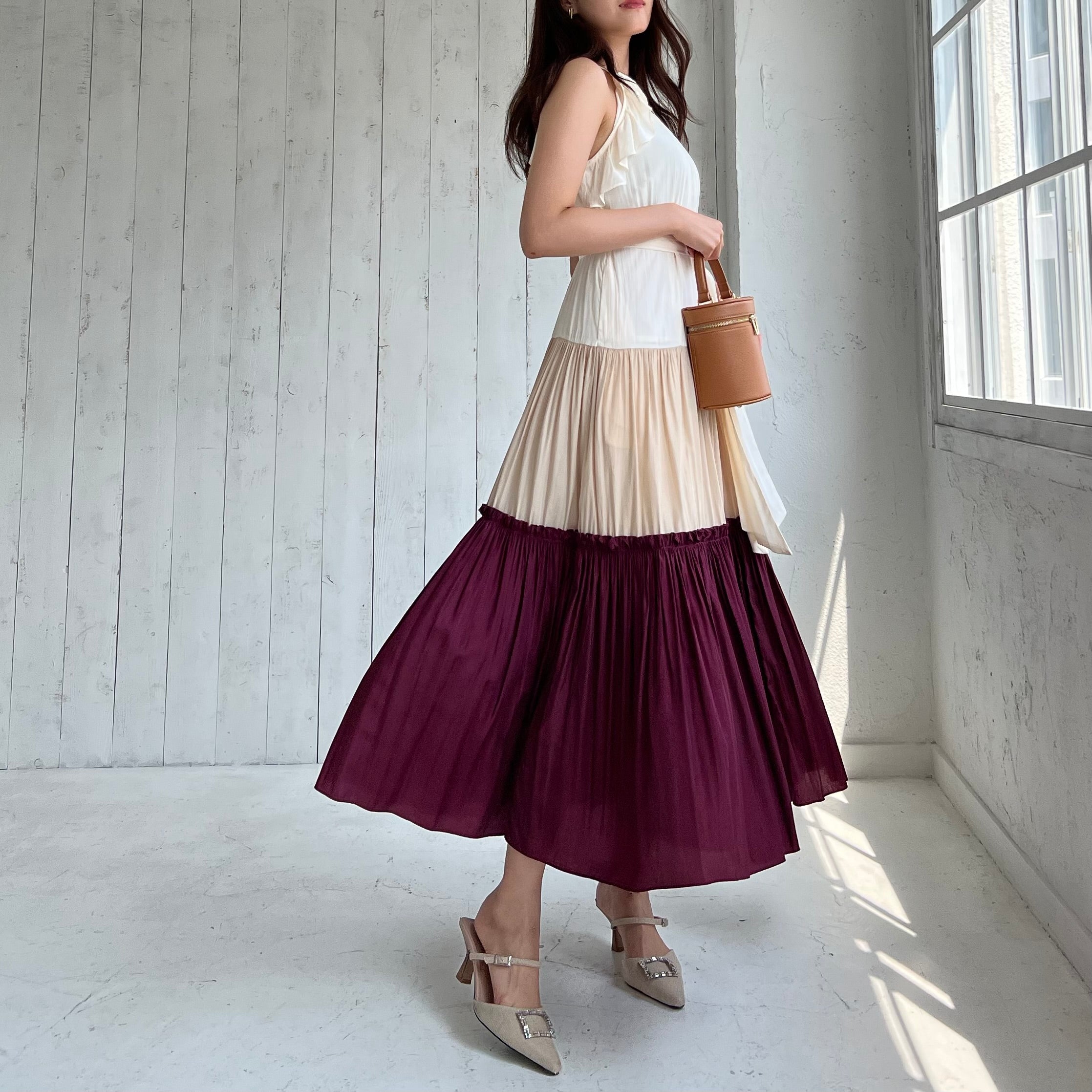 裾に向かって増えていくフレアとギャザーにより、歩く度にふわっと広がる様がとても美しいフェミニンな魅力溢れる一枚です。