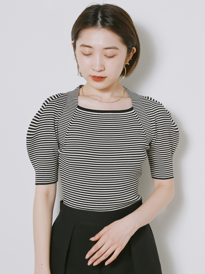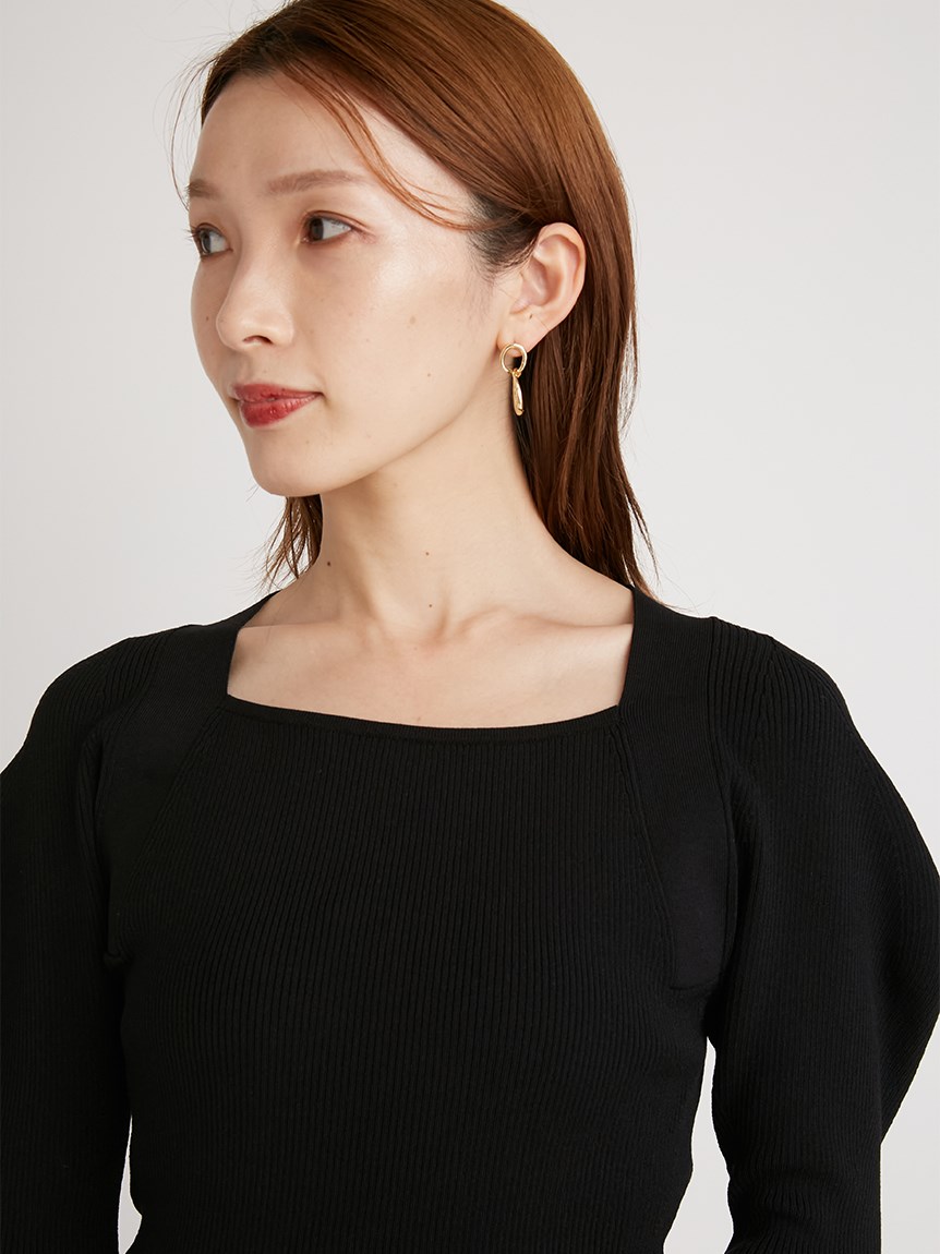 立体感のあるボリュームスリーブが印象的な、上品フェミニンなニットプルオーバー。広すぎず狭すぎないバランスの良いスクエアネックがすっきりとした印象を与えてくれます。身頃部分はフィット感のあるタイトシルエットに。スカートともパンツとも合わせやすく、幅広いコーディネートに重宝します。