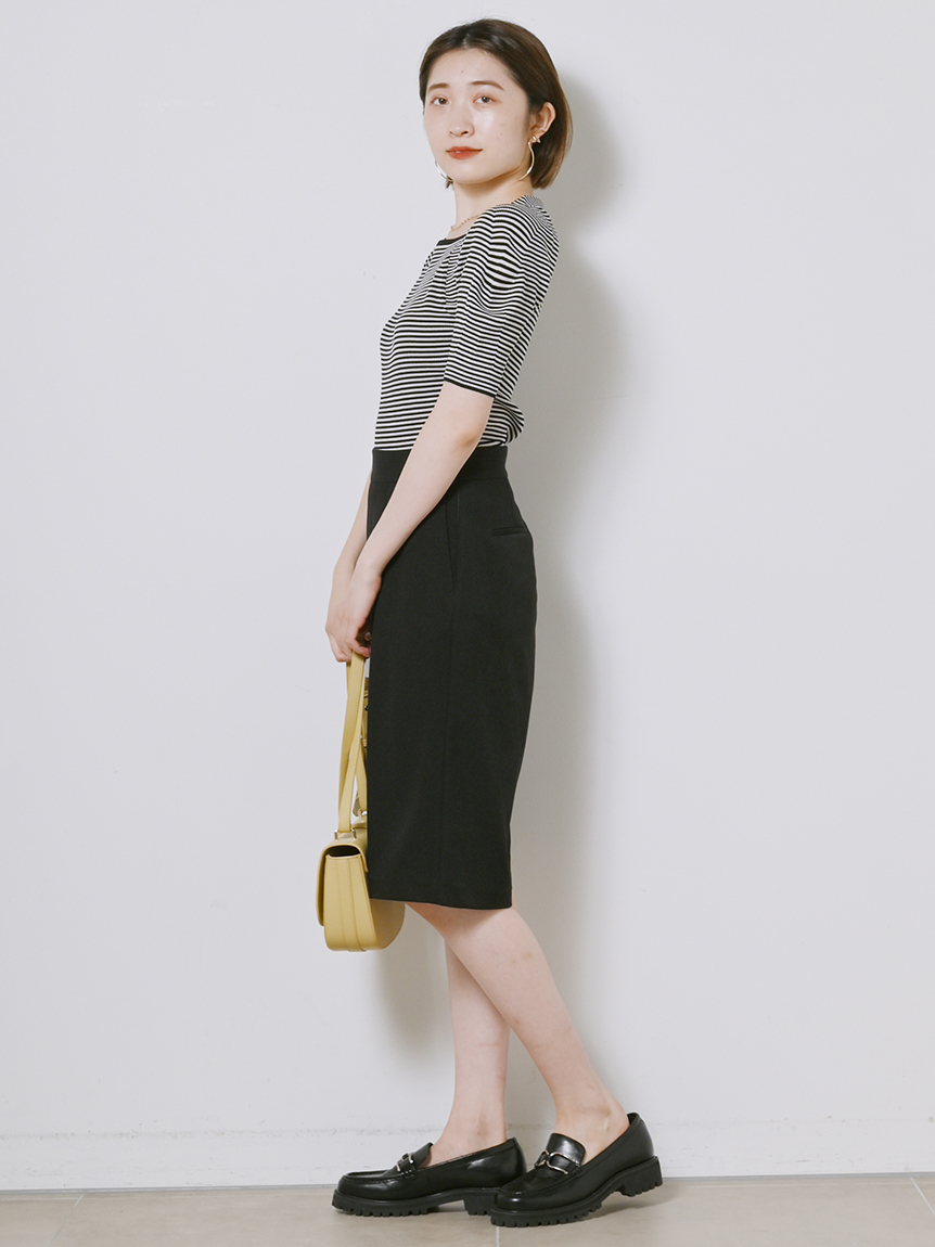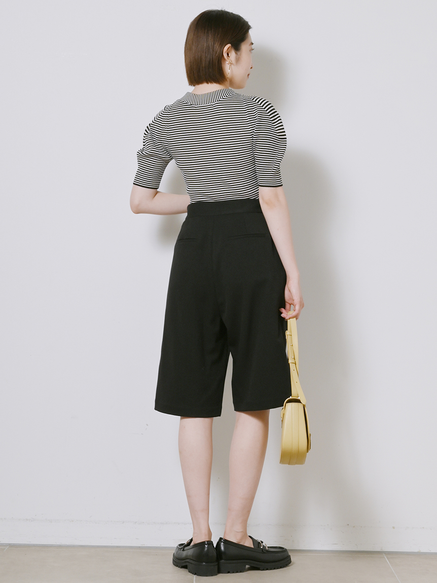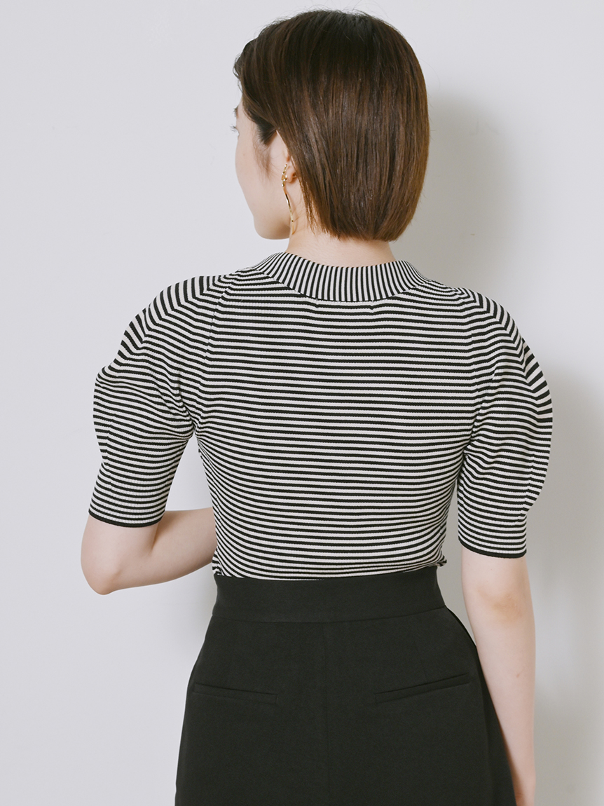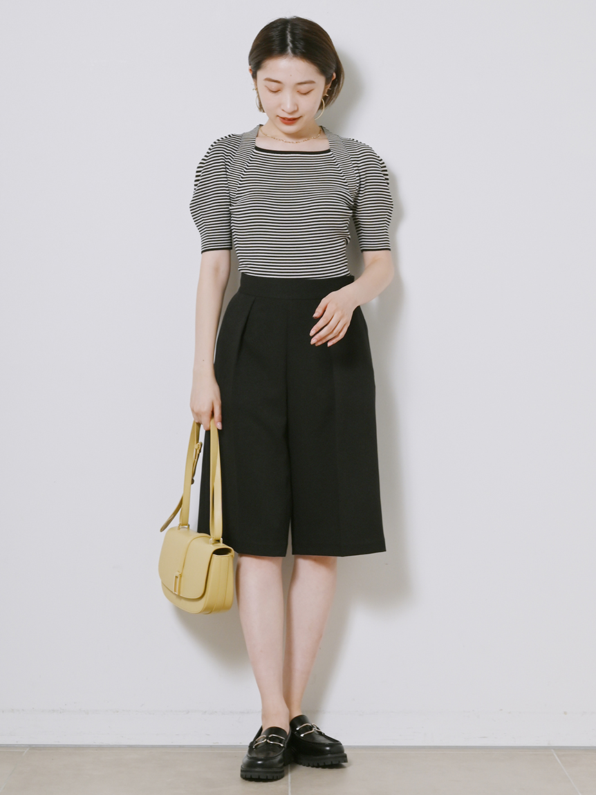 程よい厚みで伸縮性のあるリサイクルポリエステル混のリブニットを使用しました。着まわしやすいブラック、オリーブ、ピンクベージュに、ボーダーを加えた豊富なバリエーション展開でお届けします。