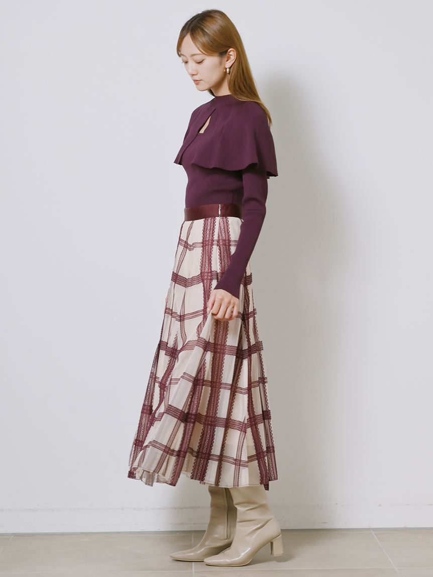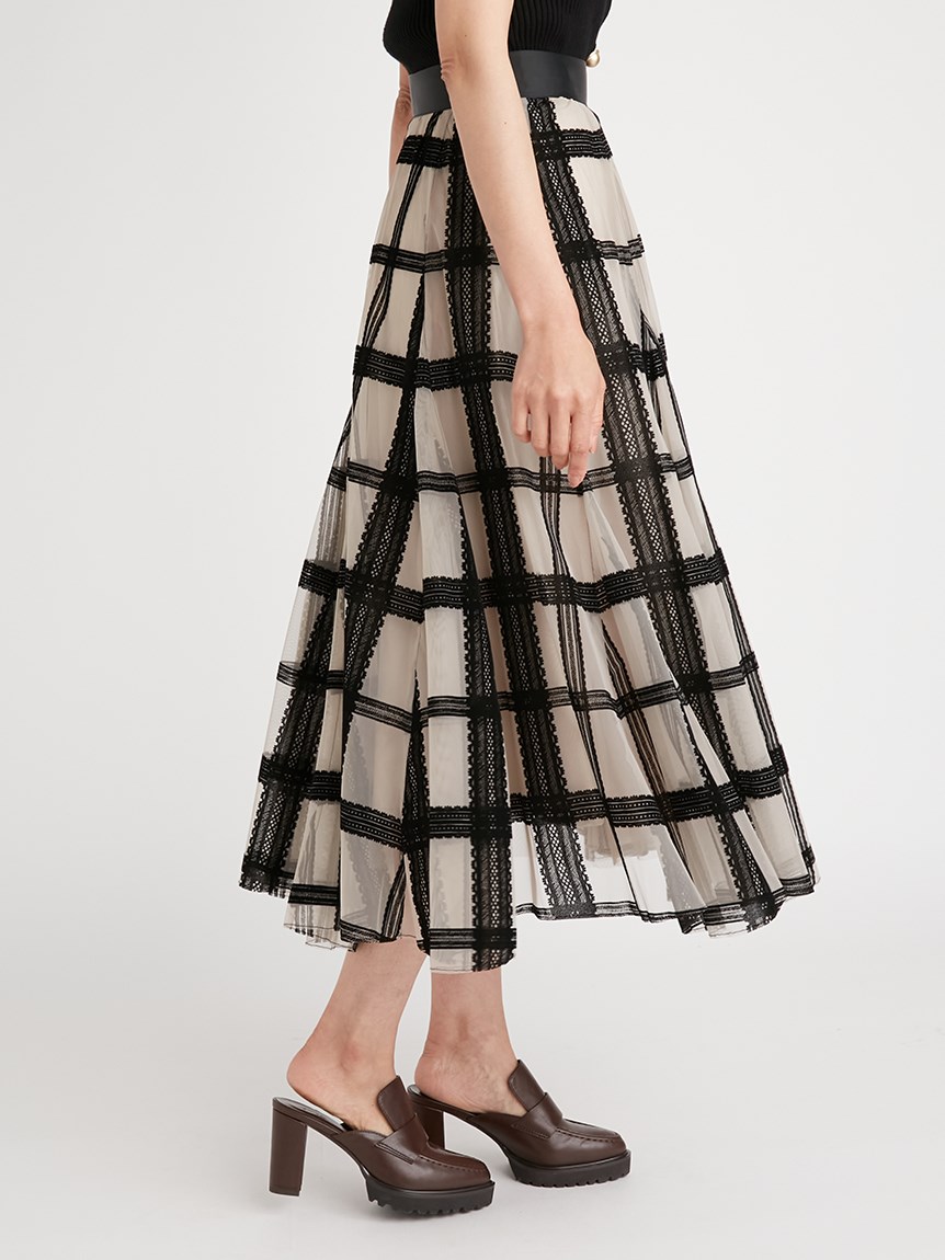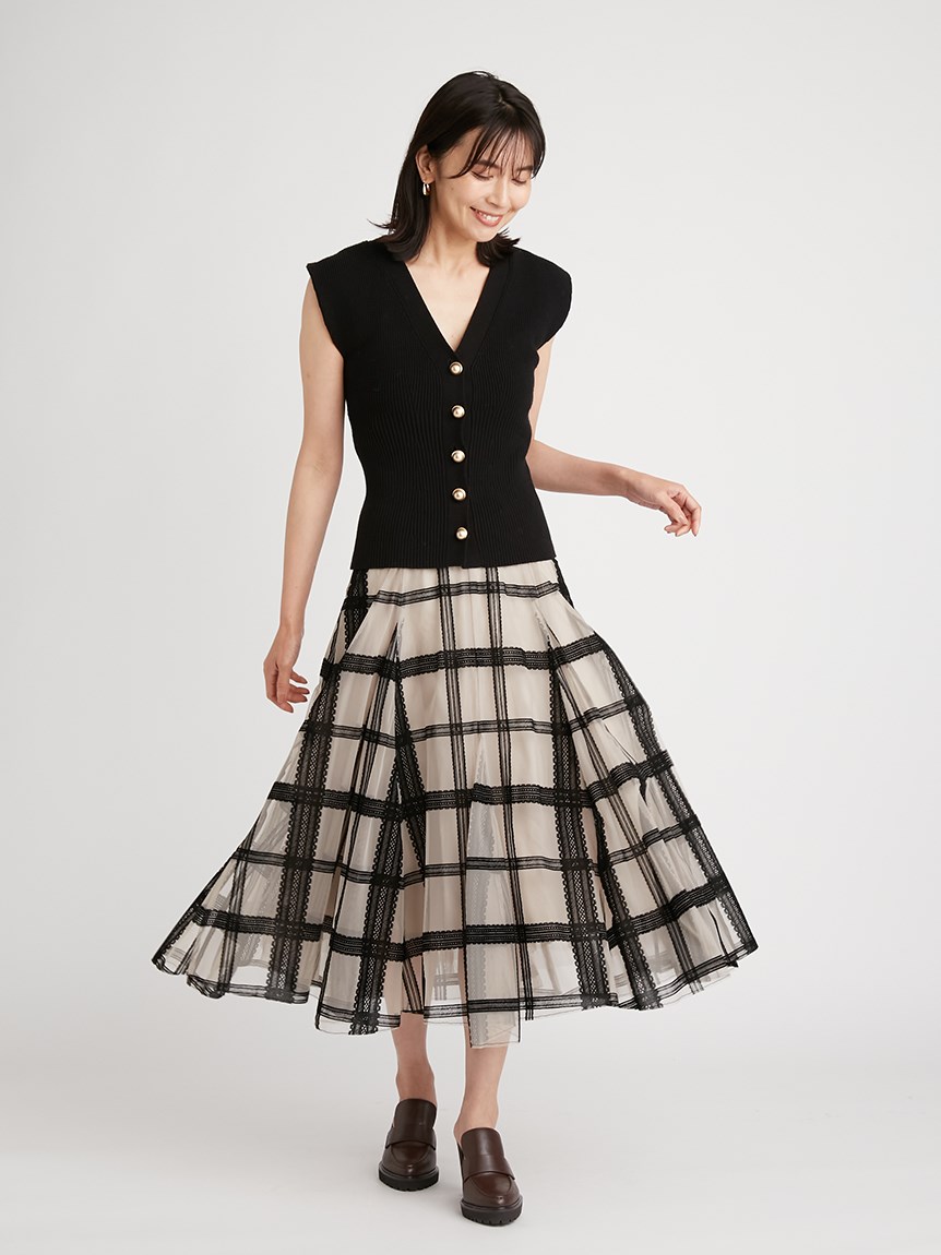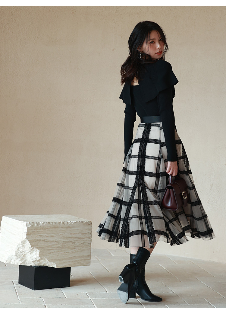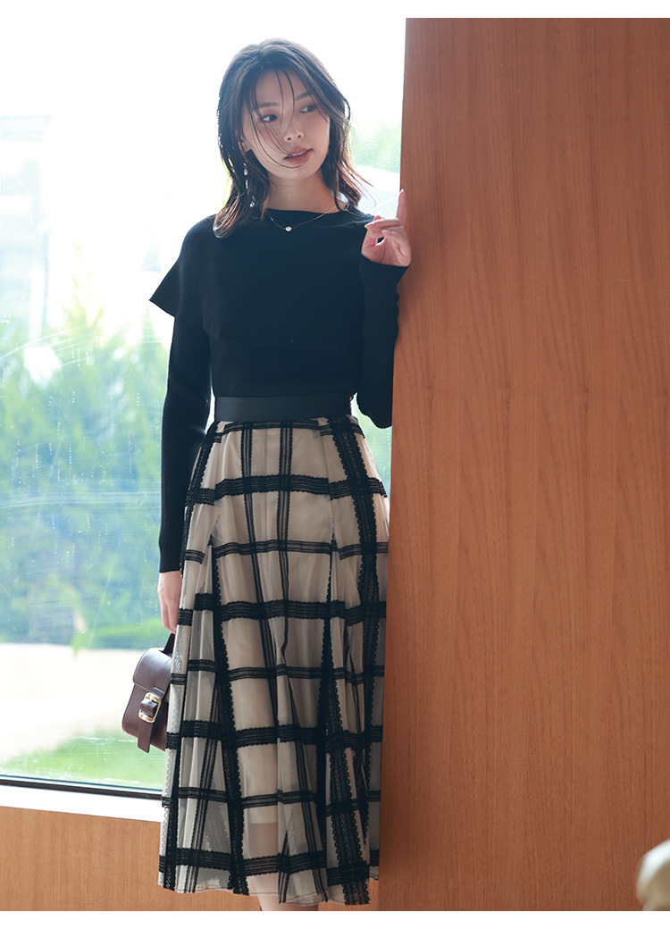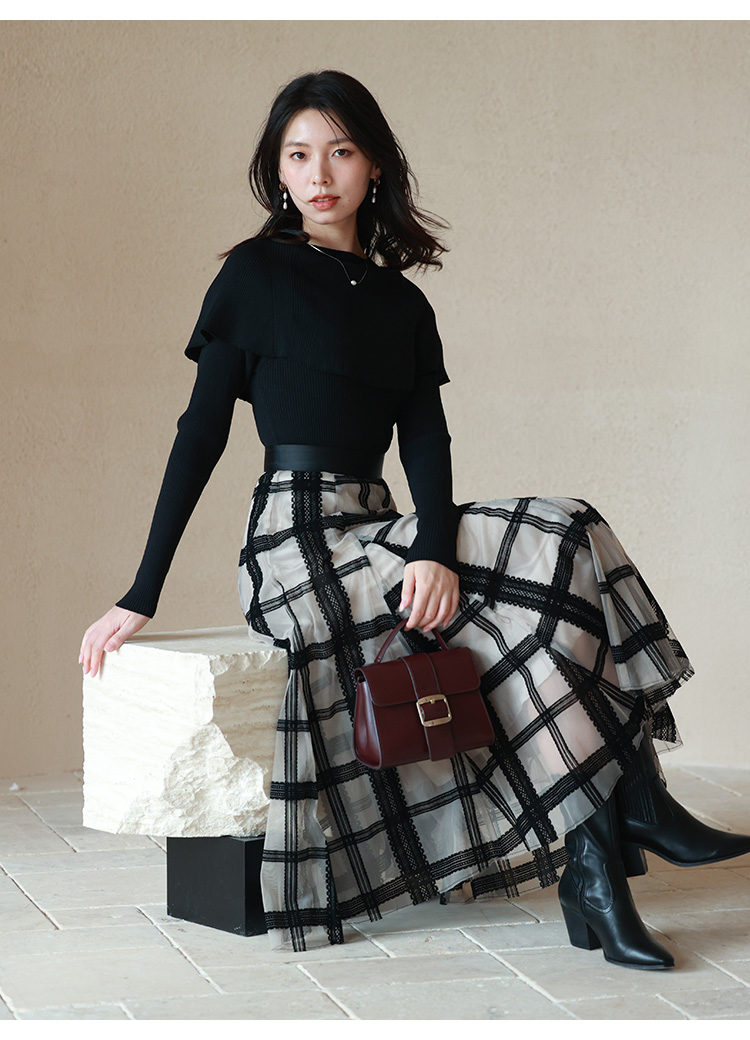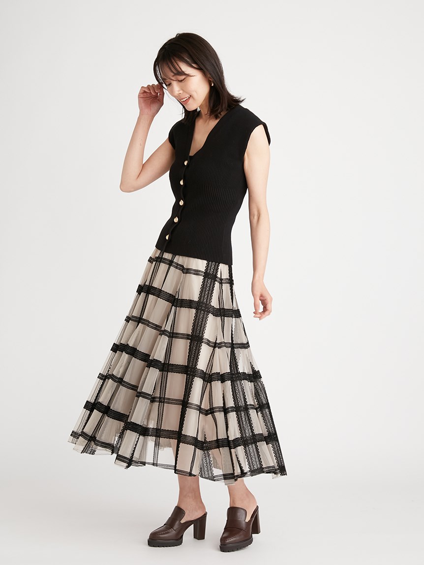 「SNIDEL」定番のエンブロイダリーチュールスカートにフロッキーデザインを加えアップデート。抜群の存在感でスタイリングを華やかに彩る1着が届きました。動作のたびに揺れ足元をセンシュアルに映し出す透け感が女性らしさを高める秘訣。ボリュームのあるフレアシルエットなので、トップスはシンプルなニットなどを合わせてコンパクトにまとめるのがオススメです。