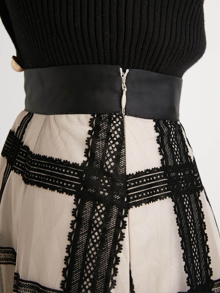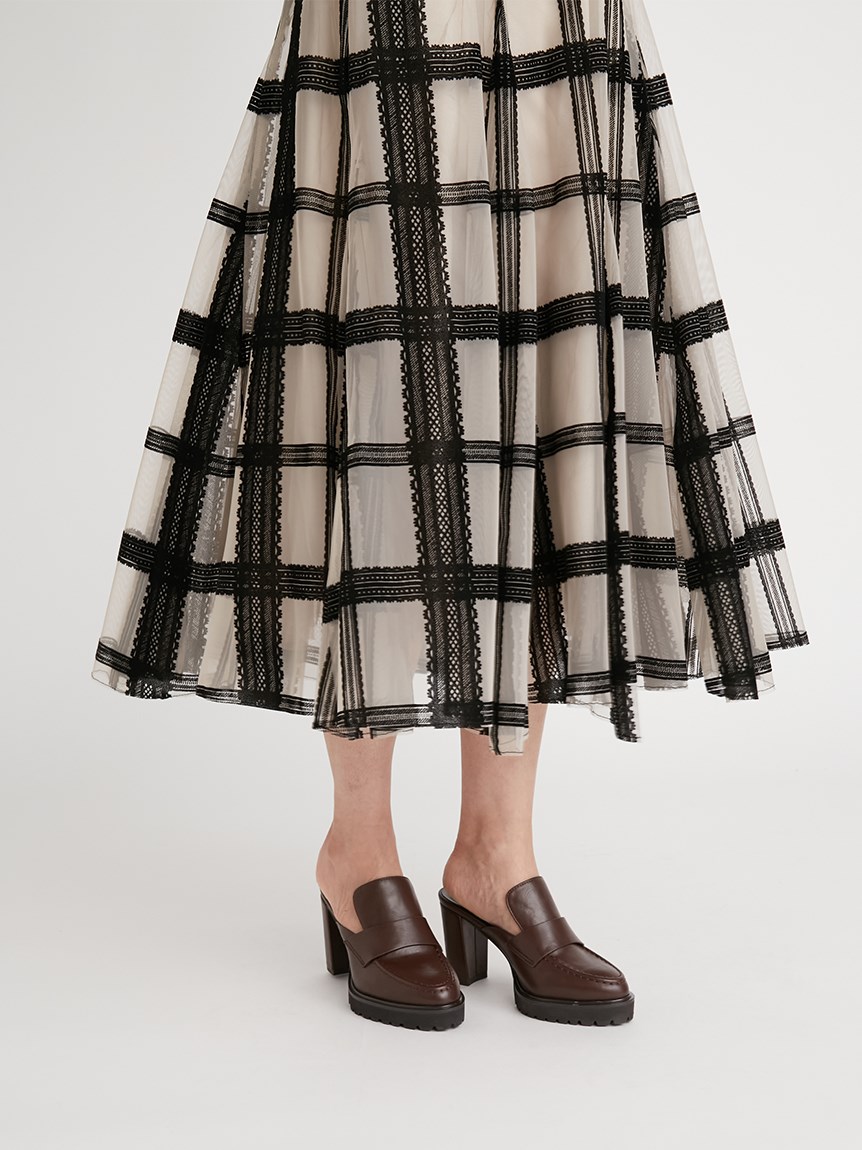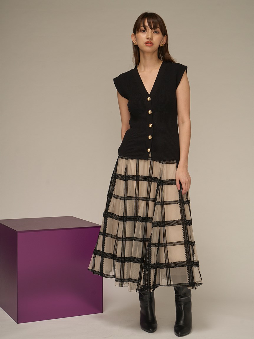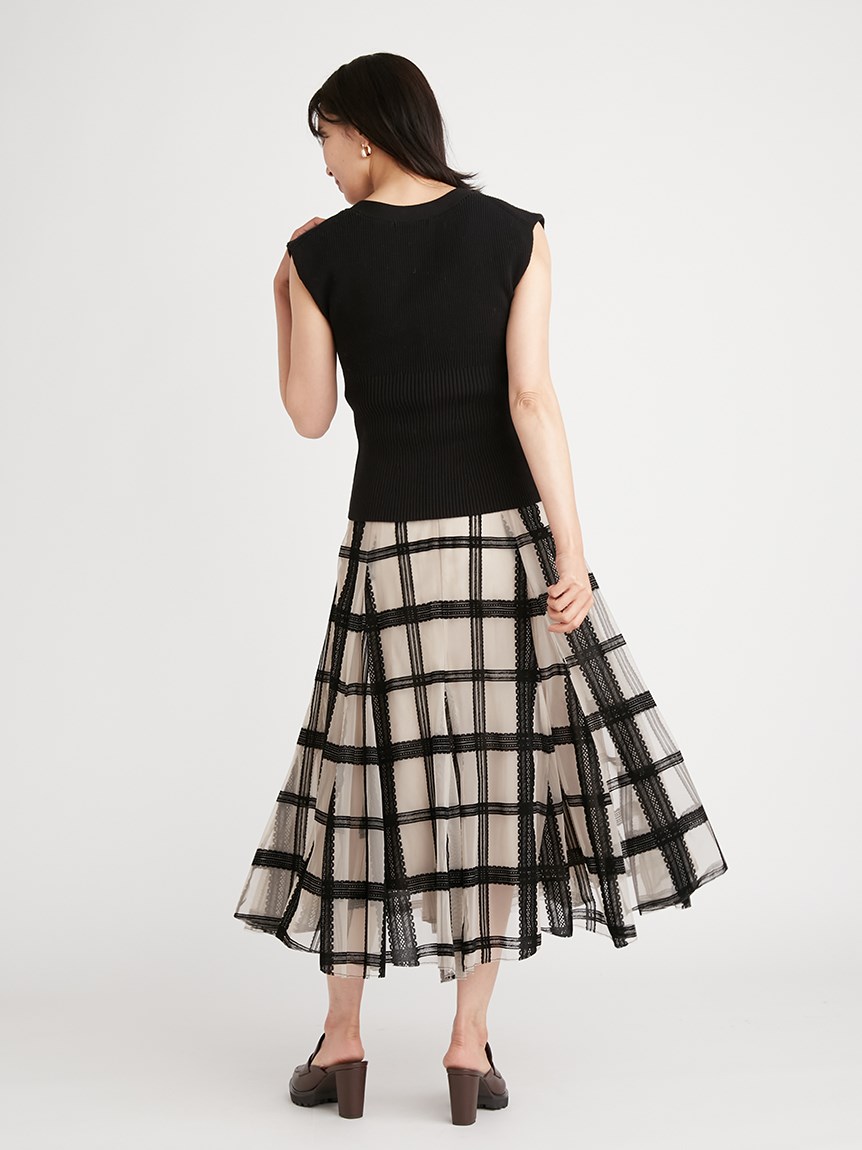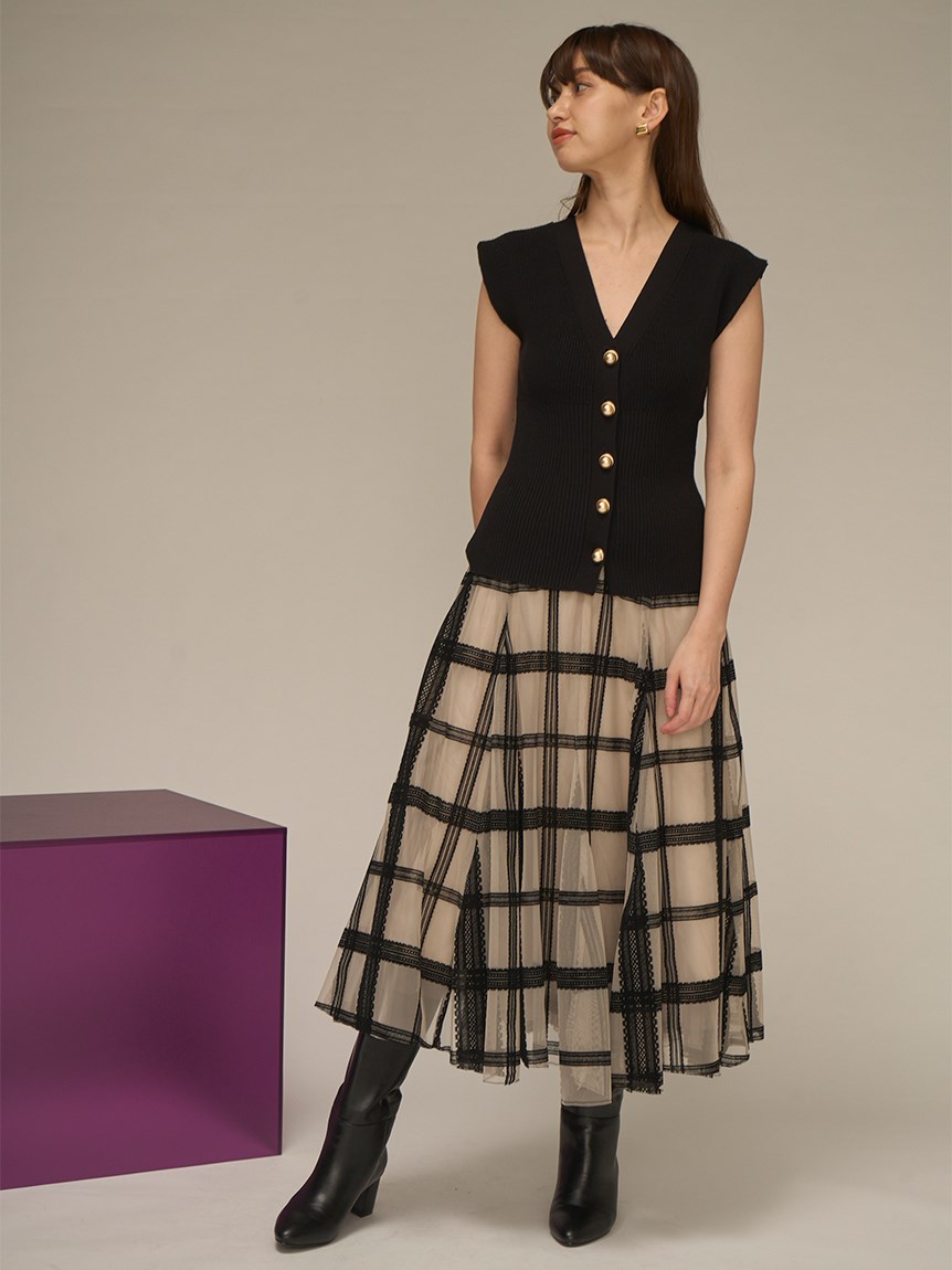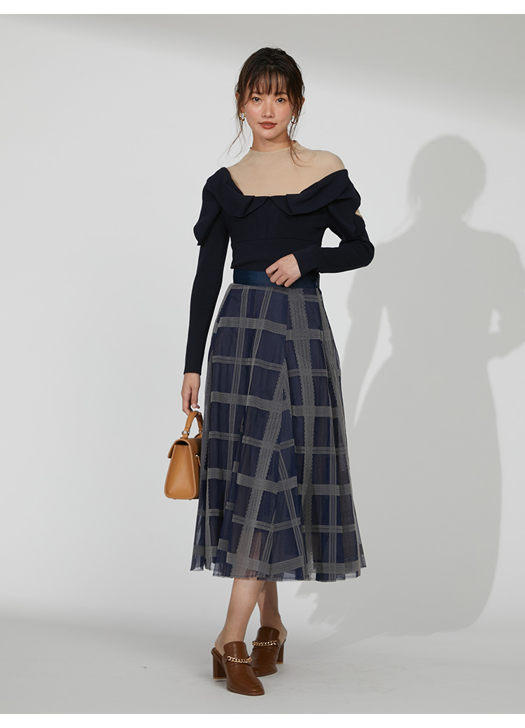 「SNIDEL」定番のエンブロイダリーチュールスカートにフロッキーデザインを加えアップデート。抜群の存在感でスタイリングを華やかに彩る1着が届きました。動作のたびに揺れ足元をセンシュアルに映し出す透け感が女性らしさを高める秘訣。ボリュームのあるフレアシルエットなので、トップスはシンプルなニットなどを合わせてコンパクトにまとめるのがオススメです。