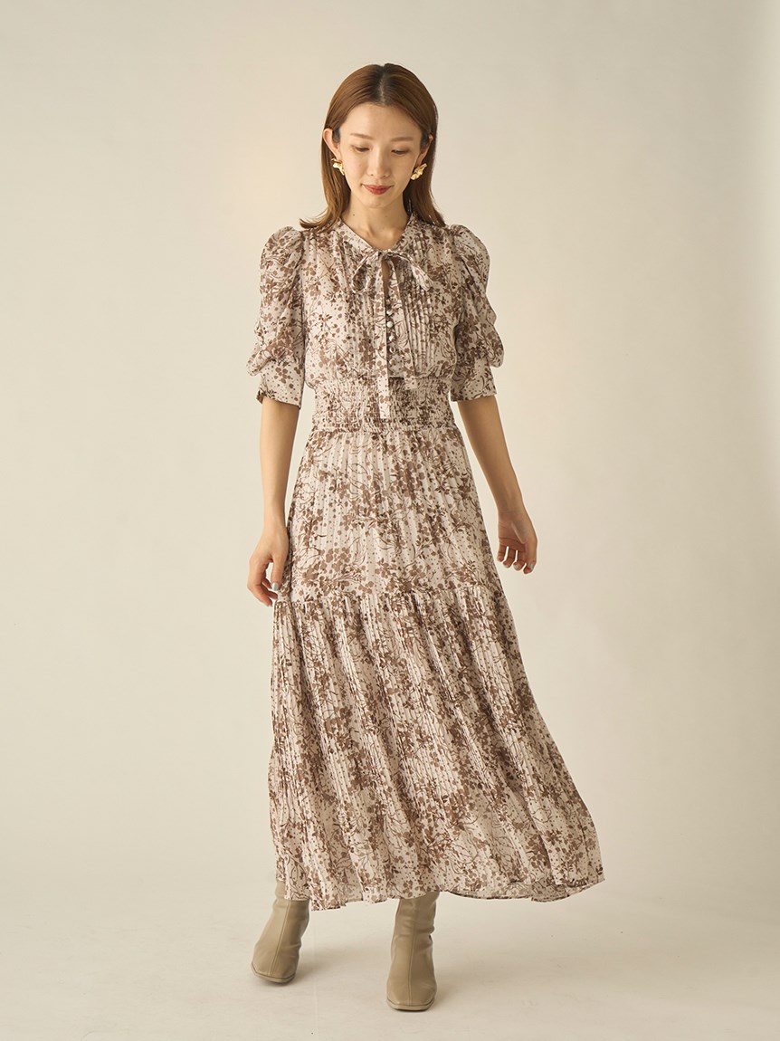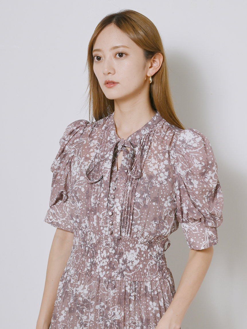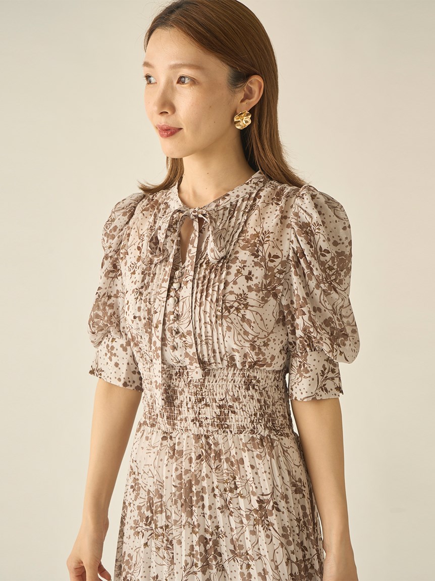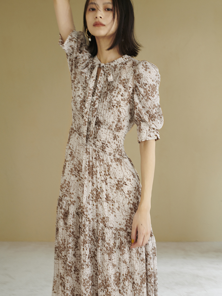 身に纏うだけで上品に決まる、「SNIDEL」定番のプリントワンピース。ウエスト部分をシャーリング仕様にすることでメリハリ感が生まれ、スタイルアップが叶います。全体に細かく入ったプリーツが華奢な女性らしい表情を演出。バックウエストにはリボンをあしらい、後ろ姿まで抜かりなく仕上げています。