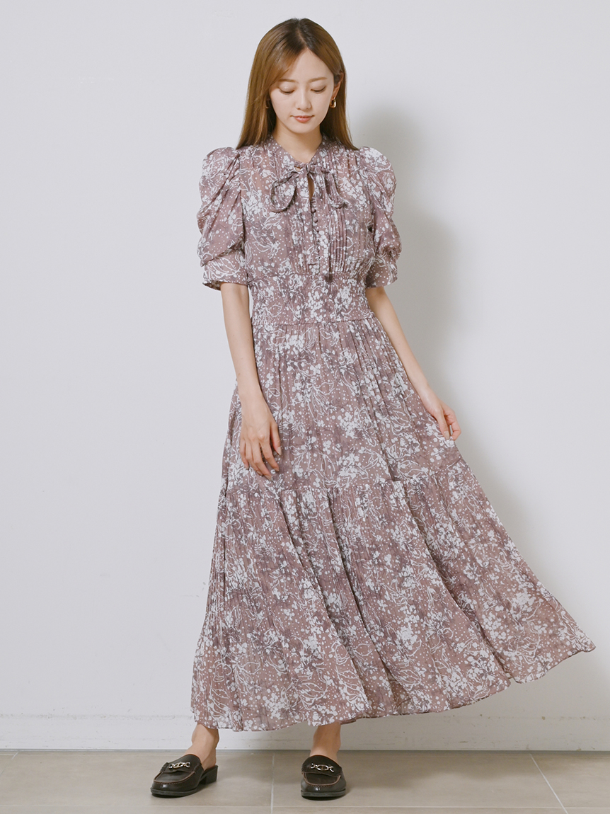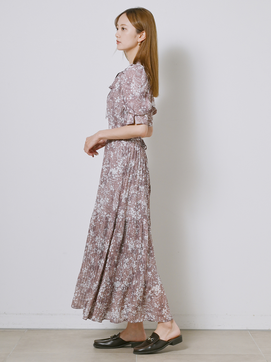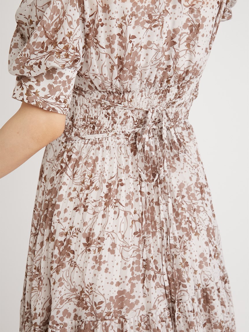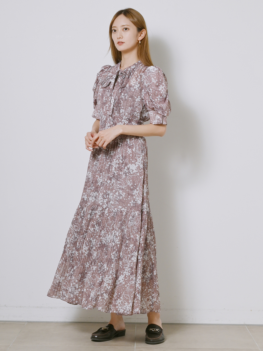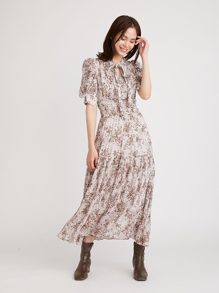 身に纏うだけで上品に決まる、「SNIDEL」定番のプリントワンピース。ウエスト部分をシャーリング仕様にすることでメリハリ感が生まれ、スタイルアップが叶います。全体に細かく入ったプリーツが華奢な女性らしい表情を演出。バックウエストにはリボンをあしらい、後ろ姿まで抜かりなく仕上げています。