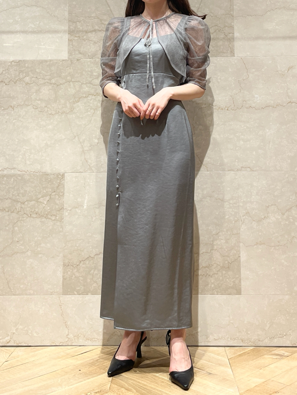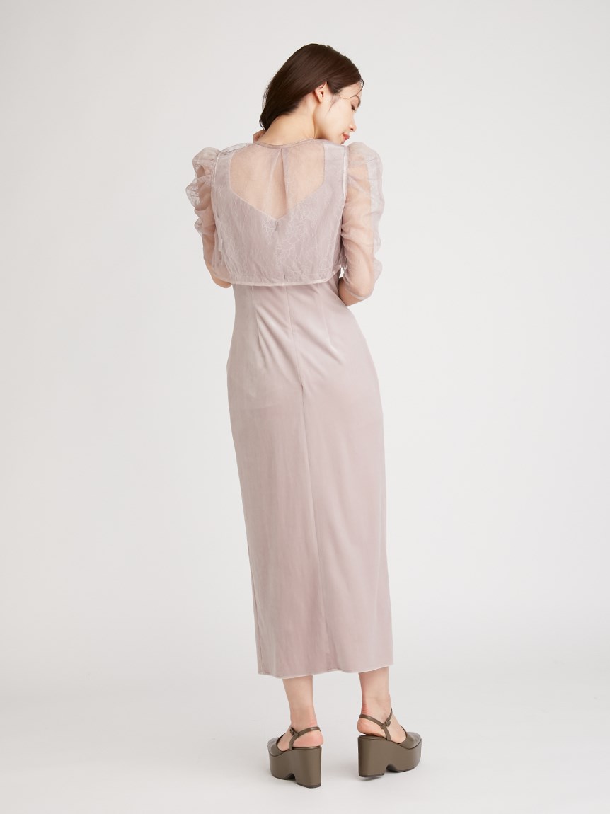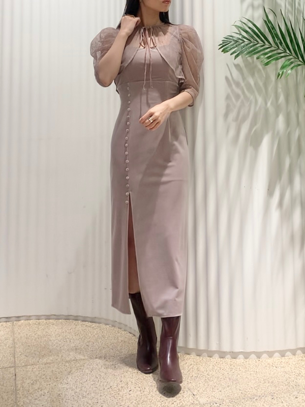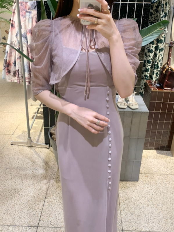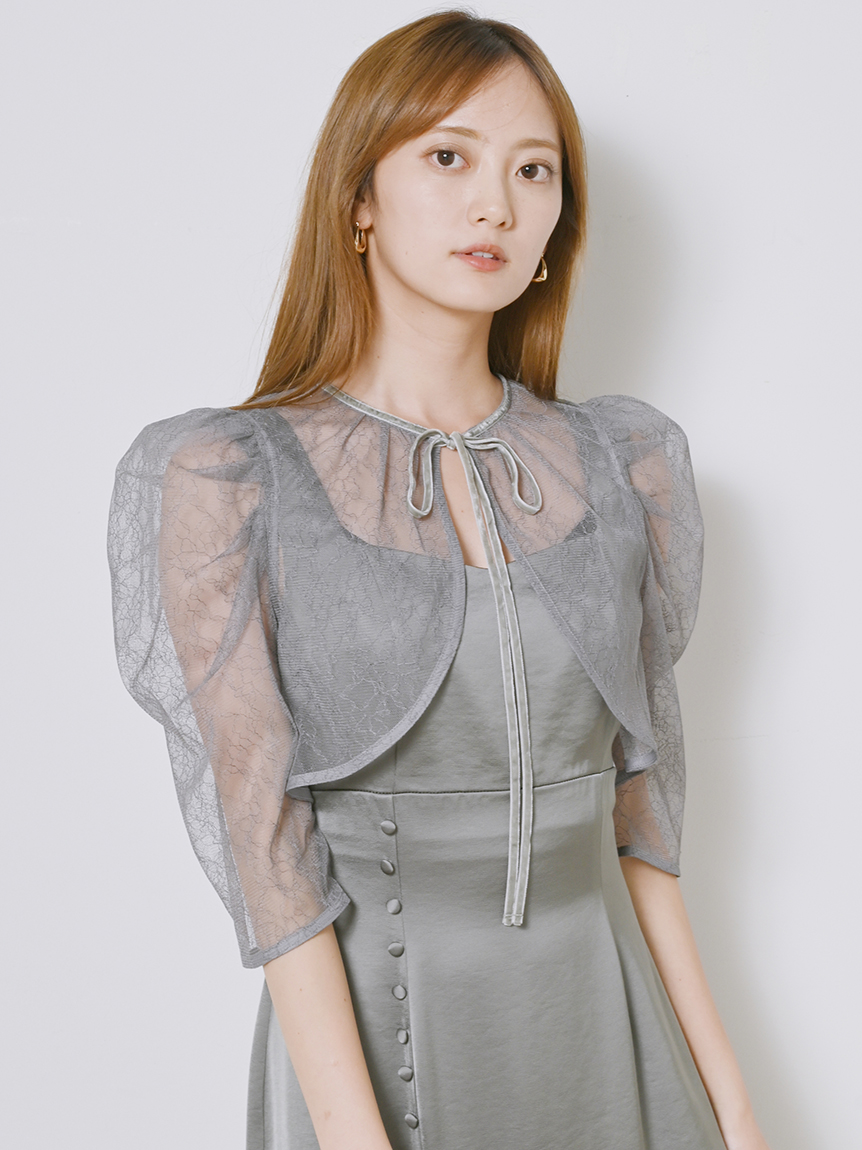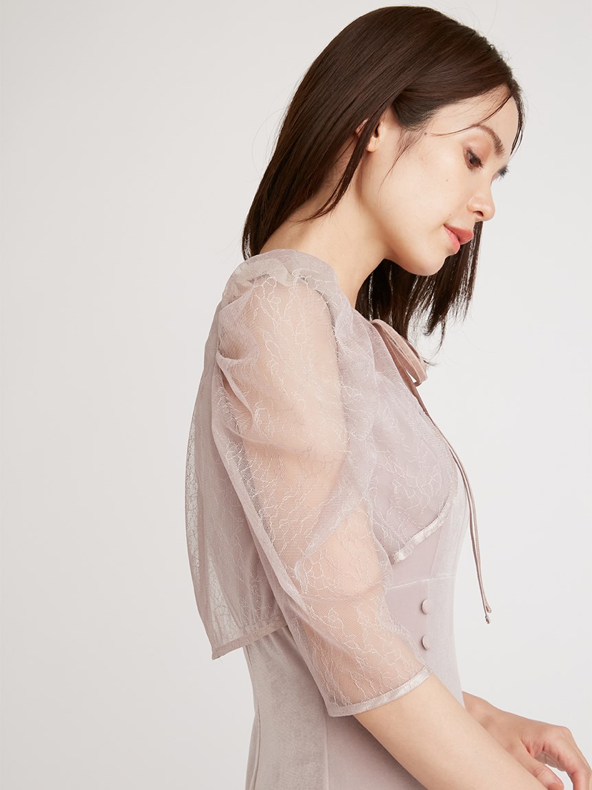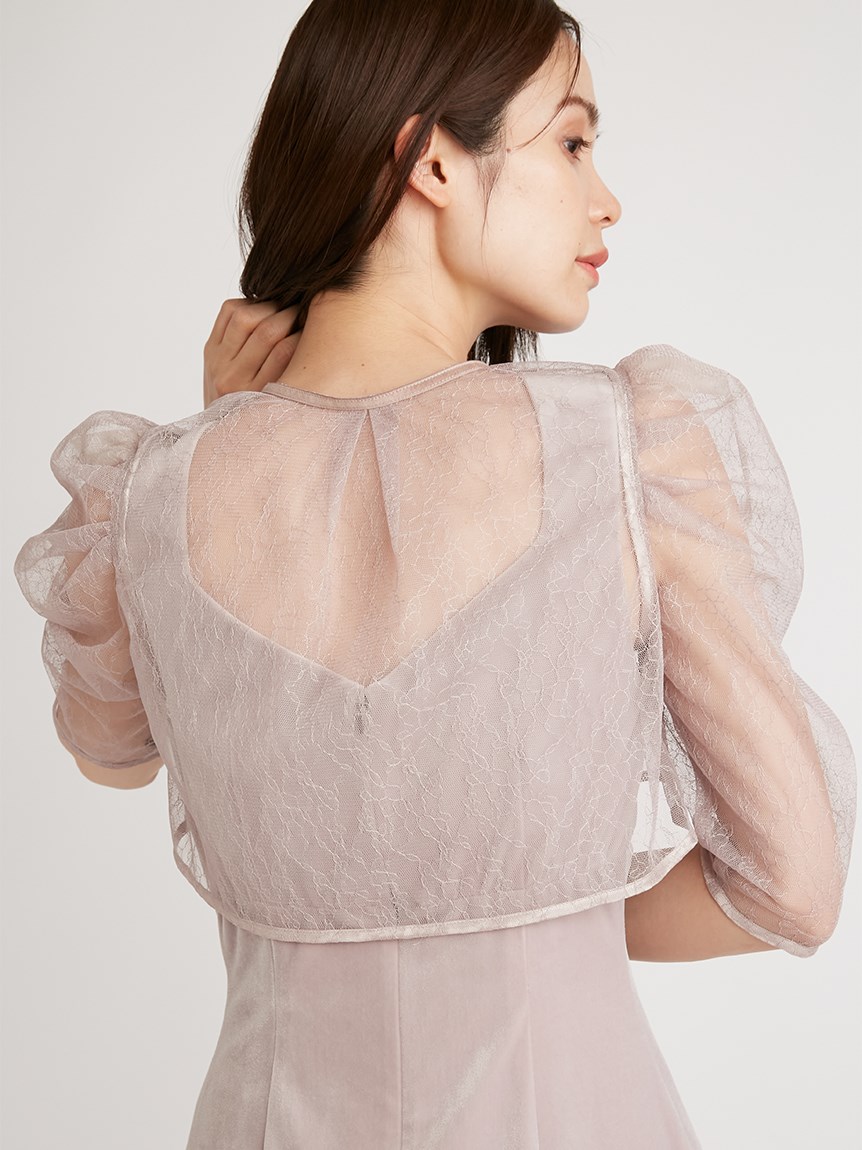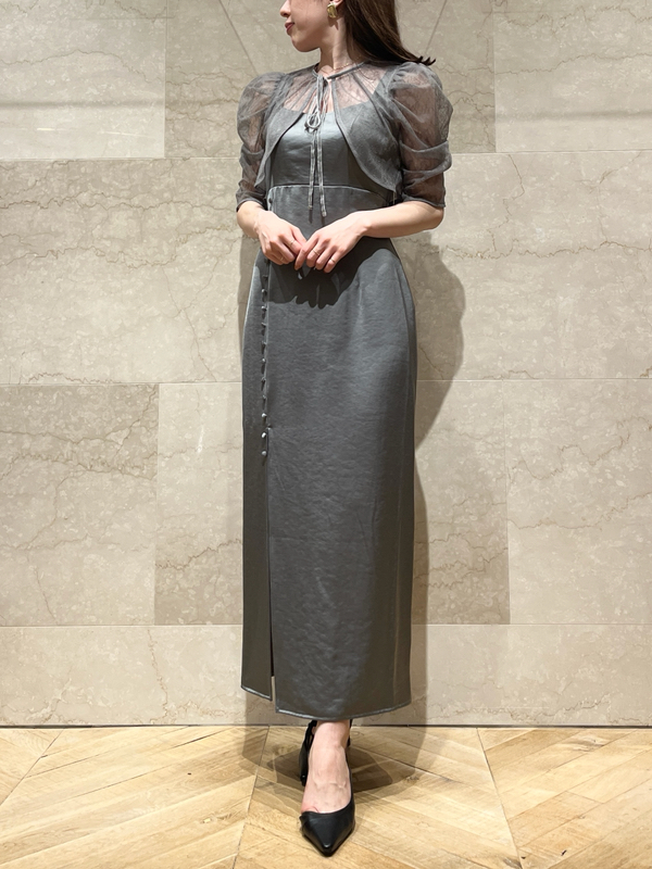 繊細なレースのショートボレロがセットになったノースリーブワンピース。ワンピースは巧みな切り替えが光るタイトシルエットで女性らしさ溢れる仕上がりに。サイドには深めにスリットをあしらい、色香漂うセンシュアルな肌見せを演出しています。