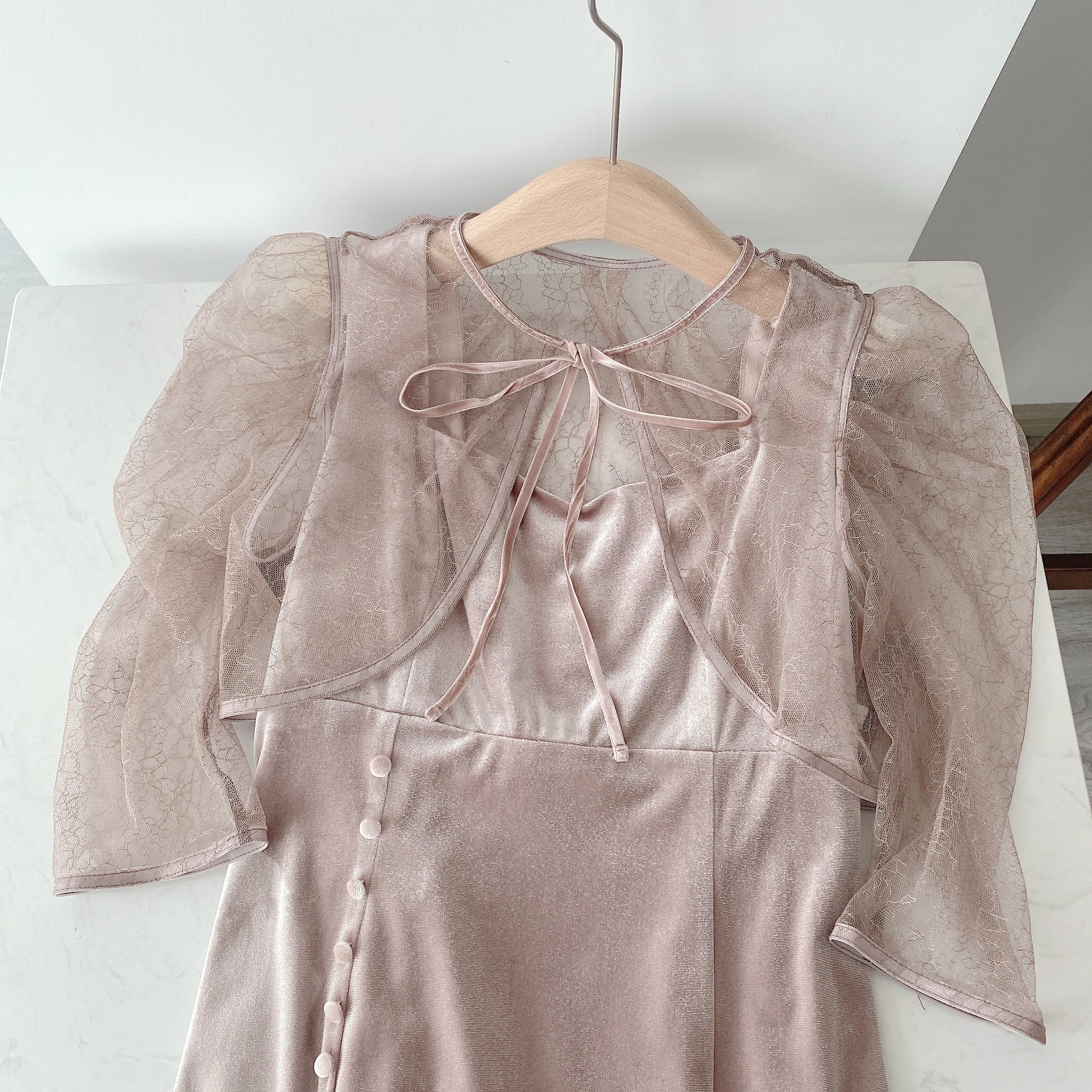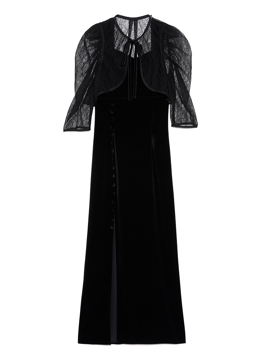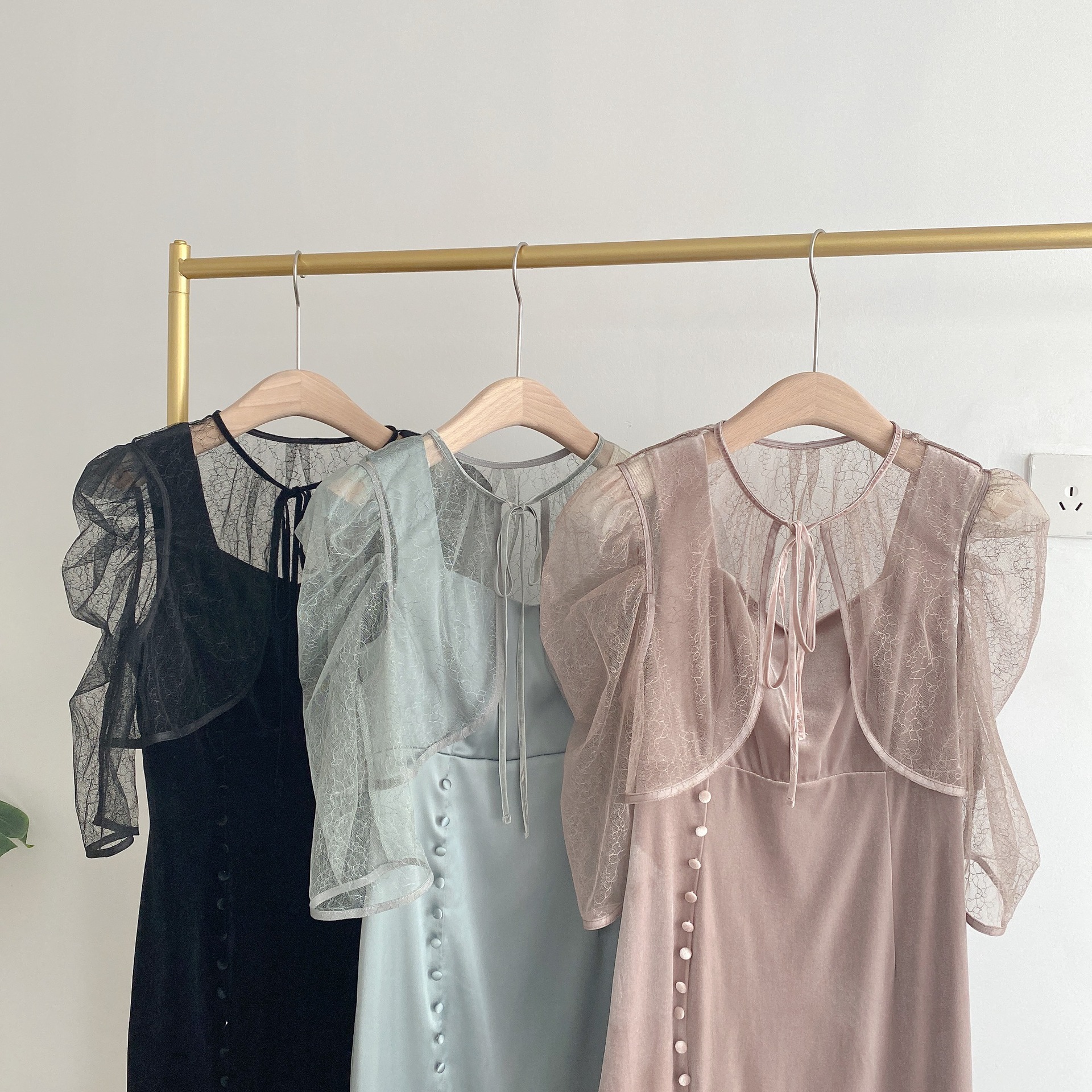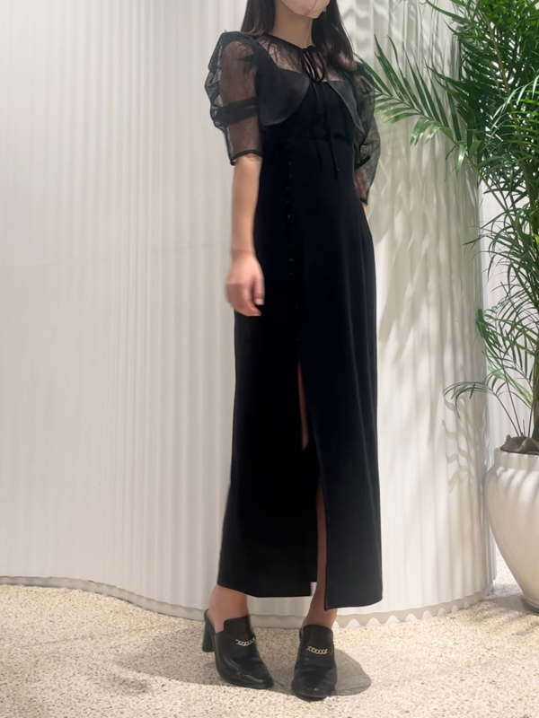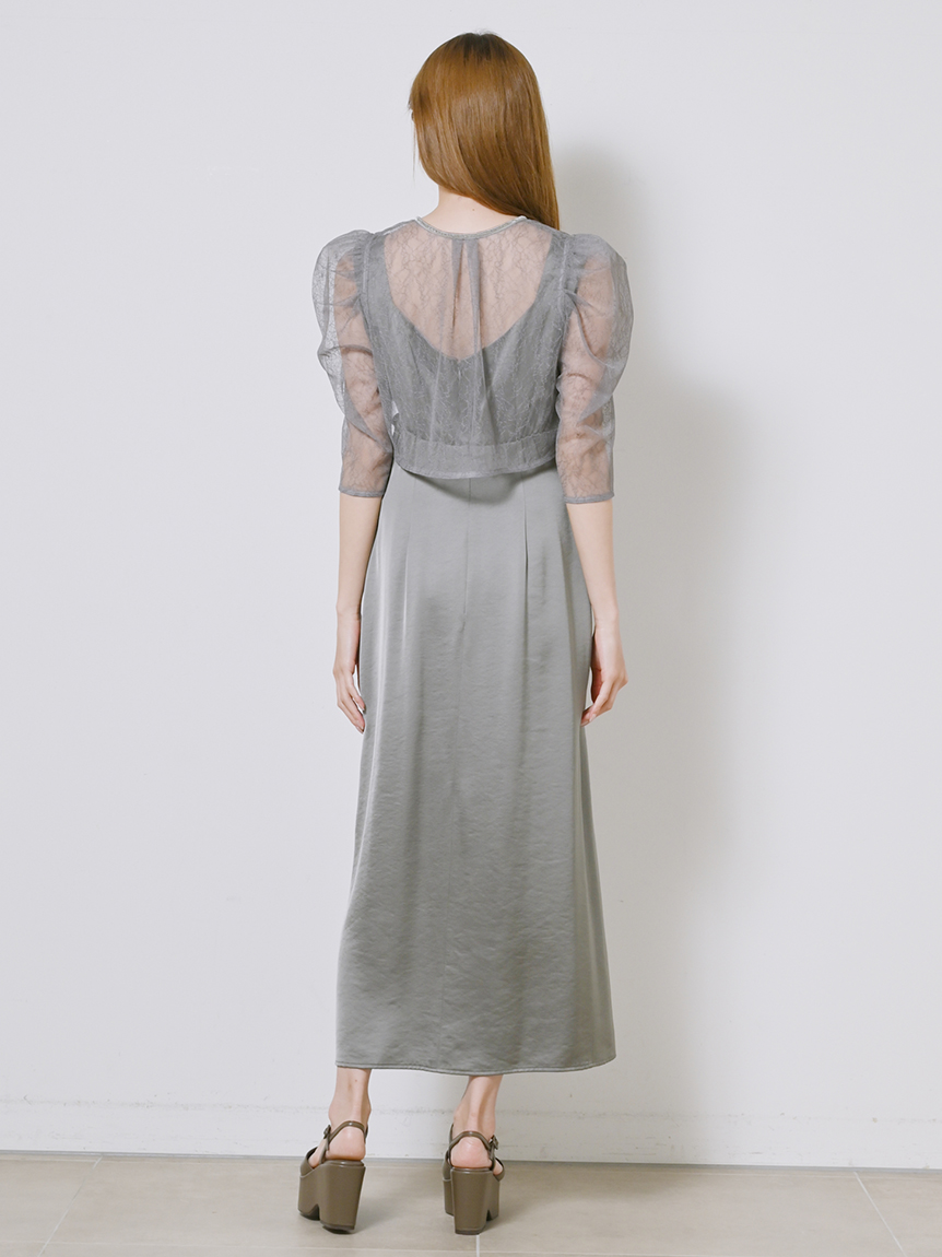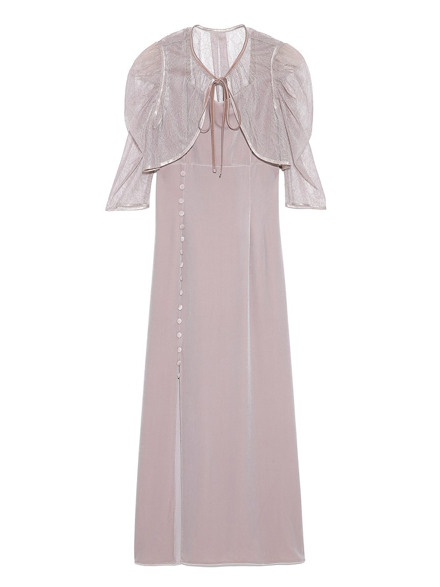 繊細なレースのショートボレロがセットになったノースリーブワンピース。ワンピースは巧みな切り替えが光るタイトシルエットで女性らしさ溢れる仕上がりに。サイドには深めにスリットをあしらい、色香漂うセンシュアルな肌見せを演出しています。