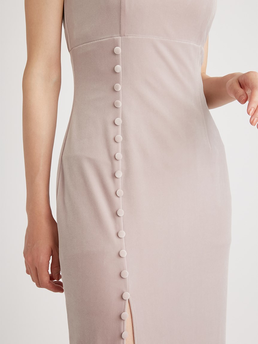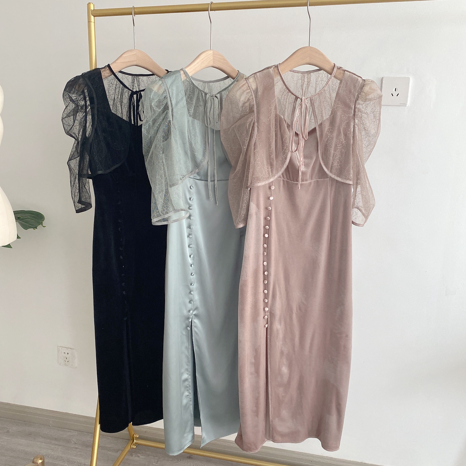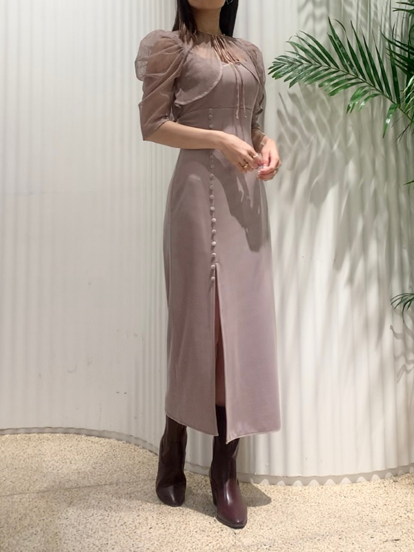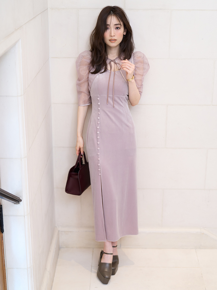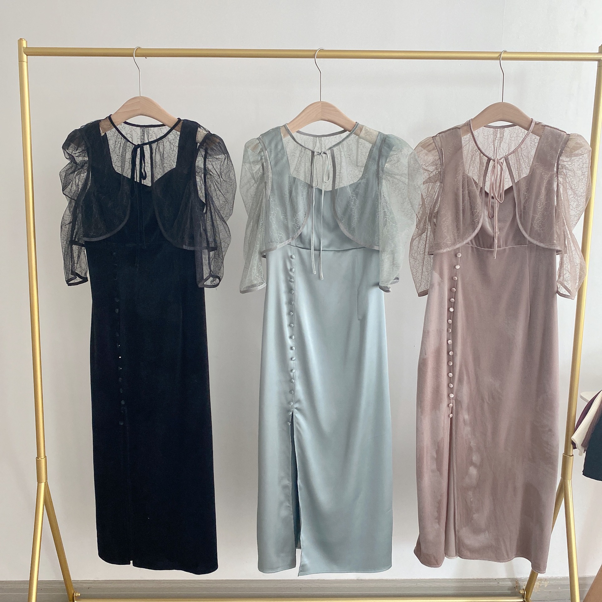 ドレスは、シックな印象を与えるブラックと女性らしい柔らかな雰囲気のピンクベージュはベロアで、ニュアンスのある色合いのオリーブはサテン素材でご用意しました。