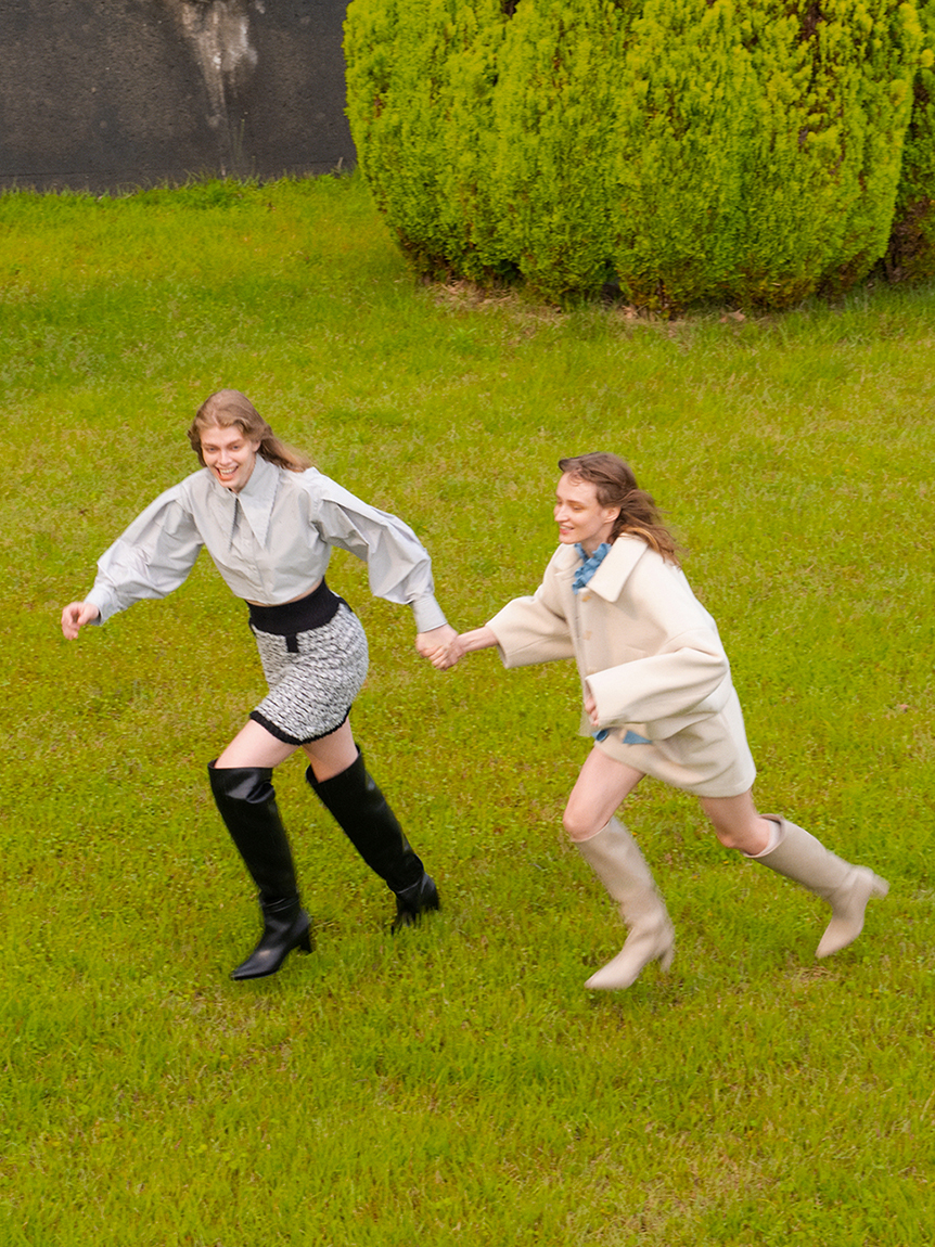 カラーごとに表情の異なるニット素材を使用しました。ピンクベージュ、ネイビー、ミックスの3色展開でお届けします。