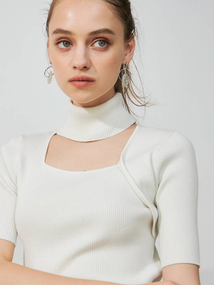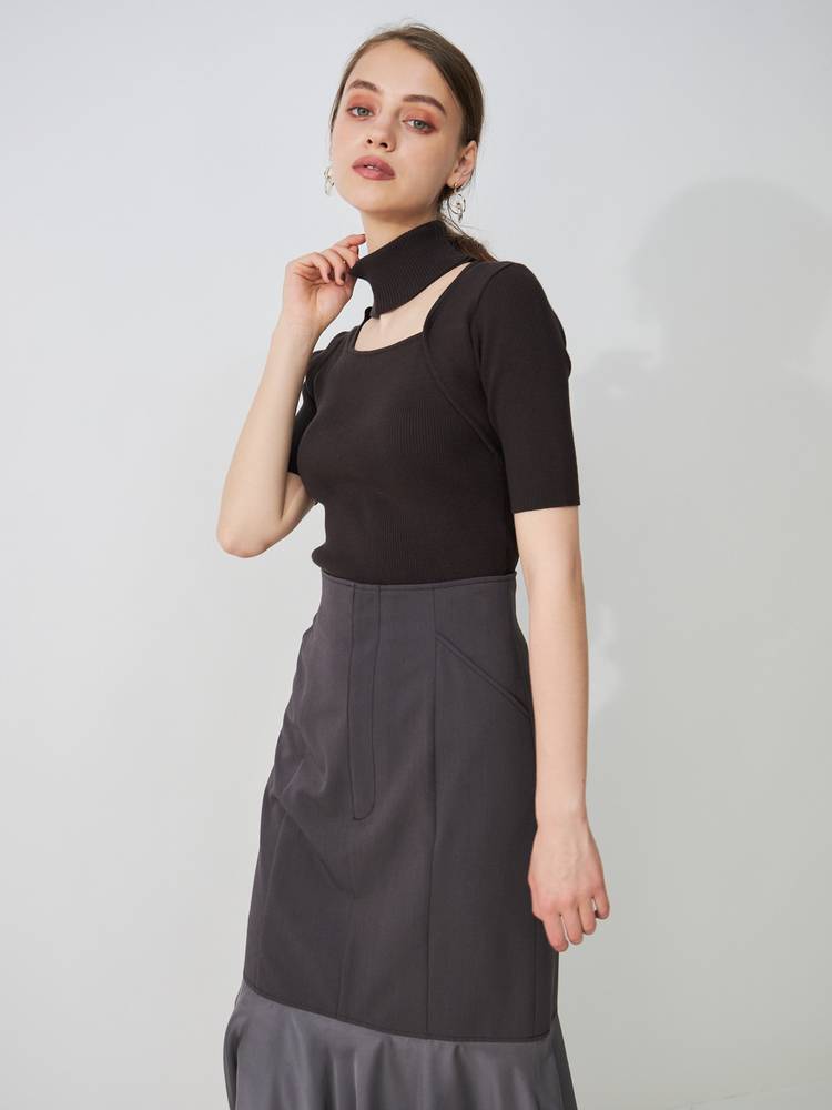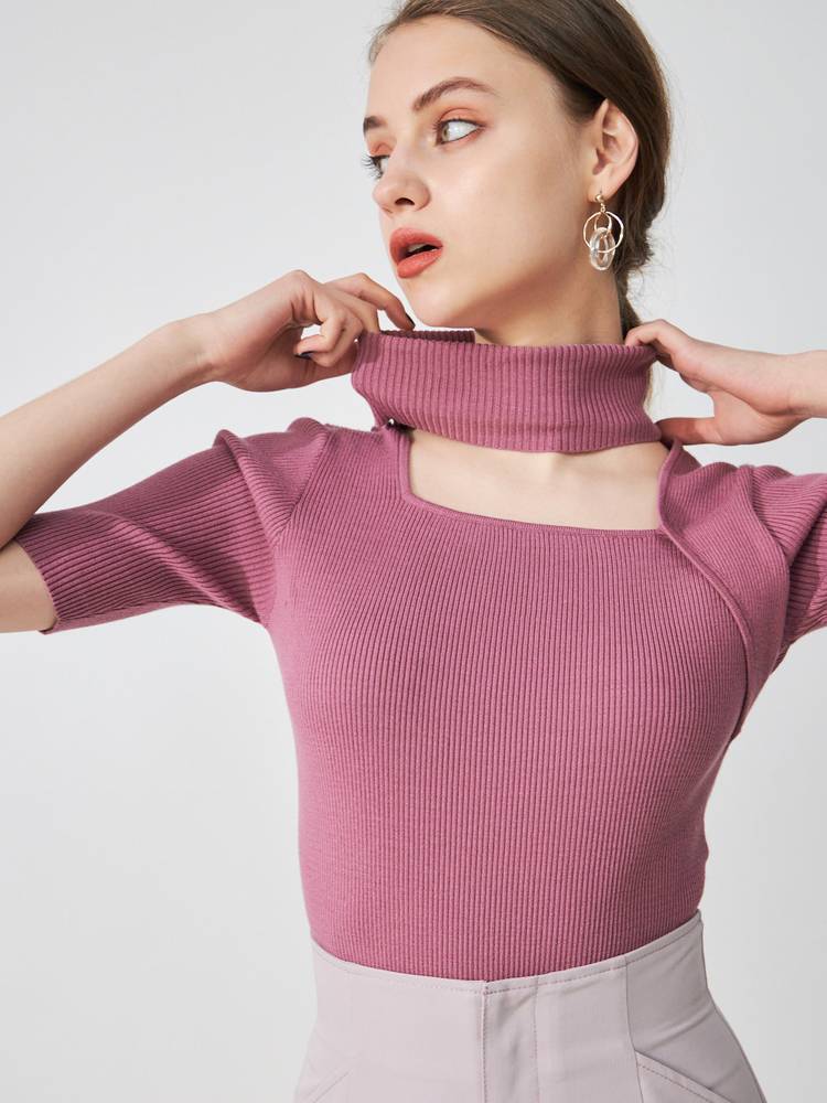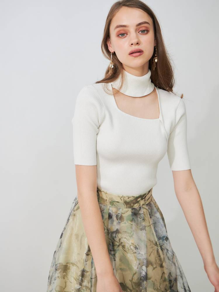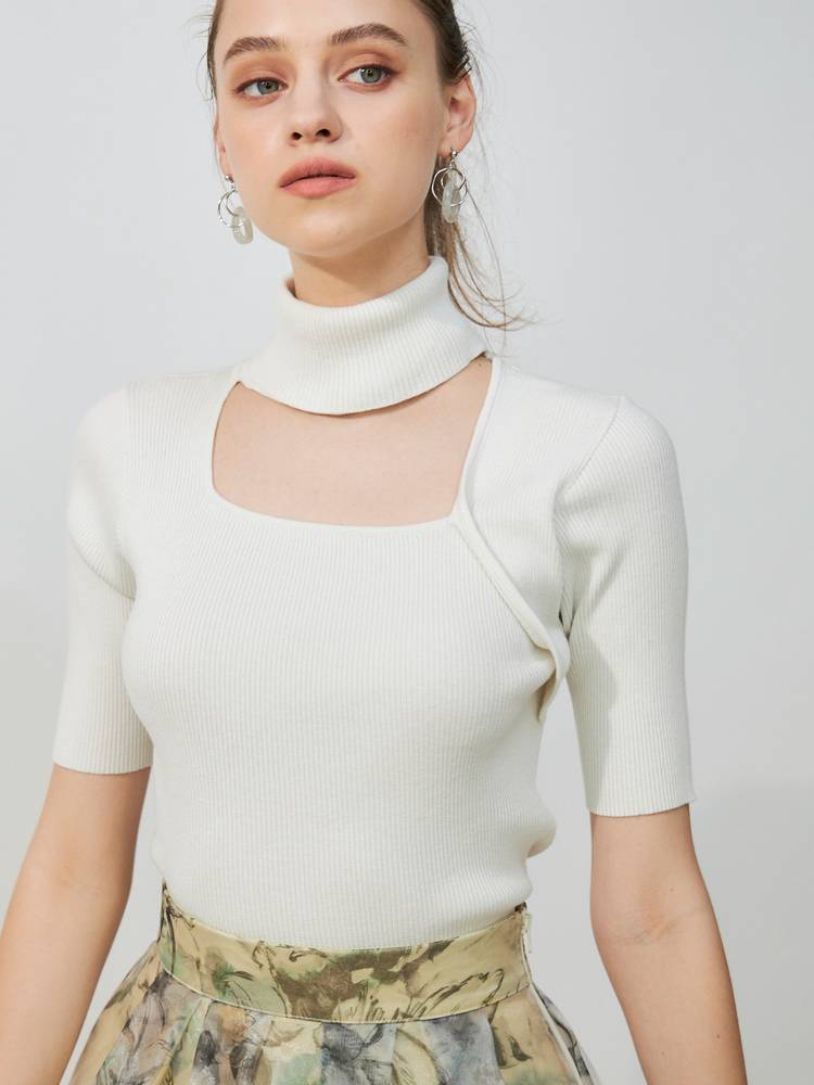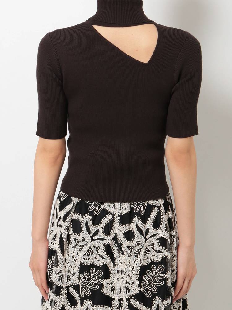アシメカッティングハイネックリブニット