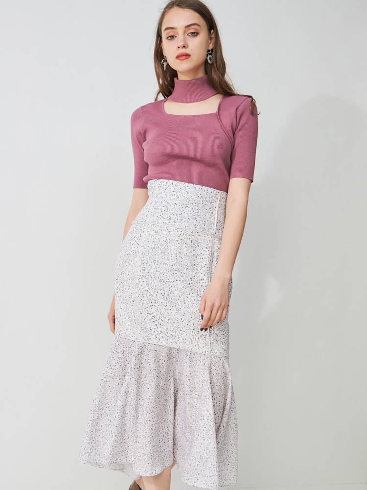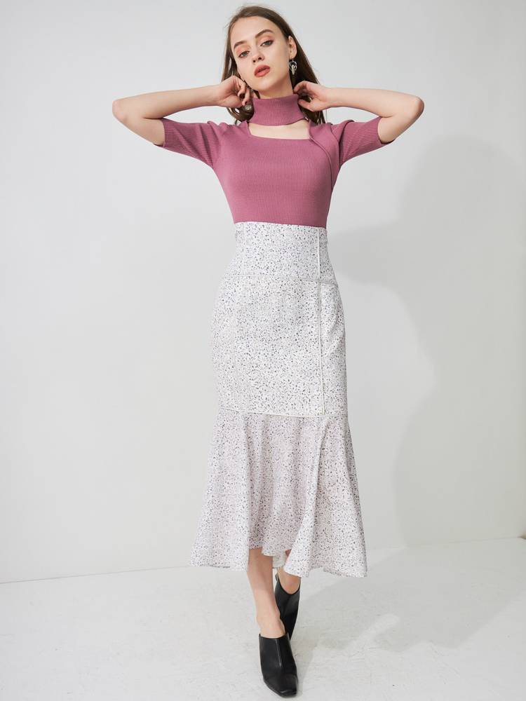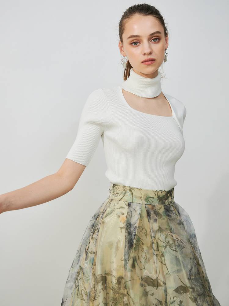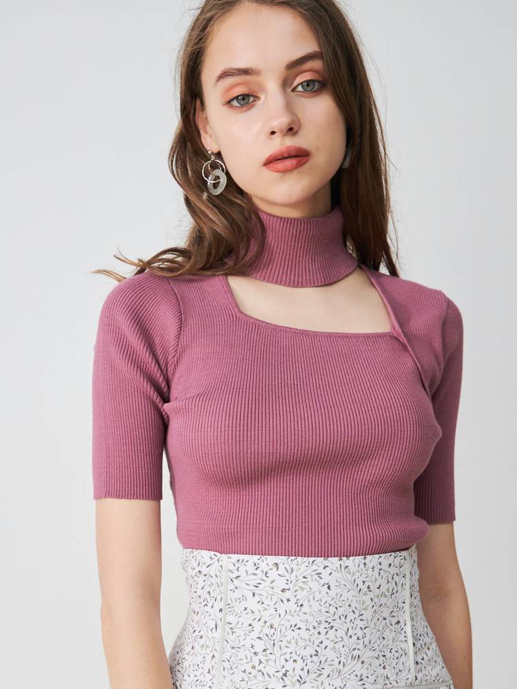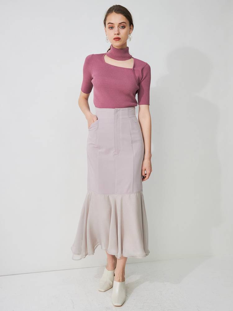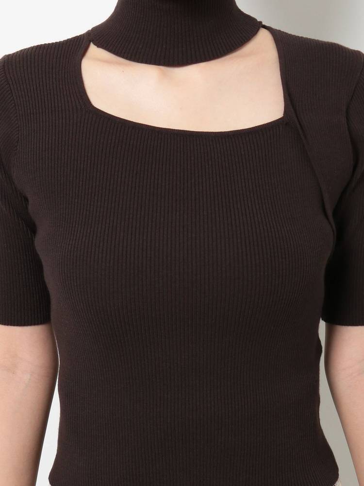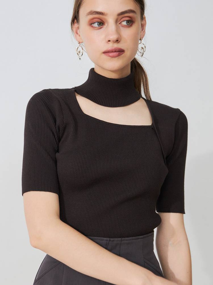 アシメカッティングハイネックリブニット