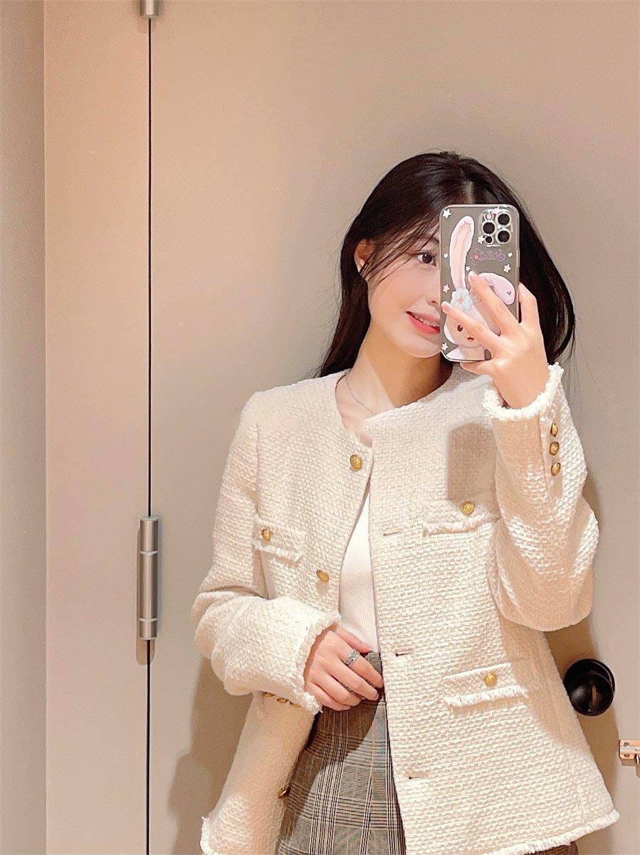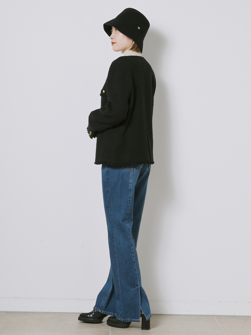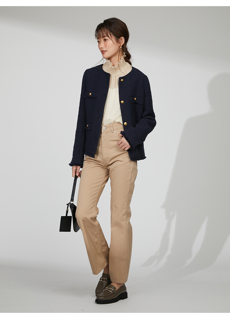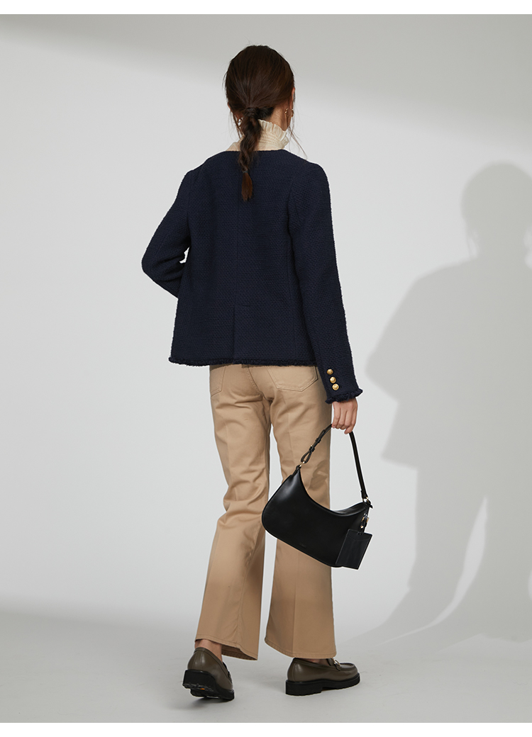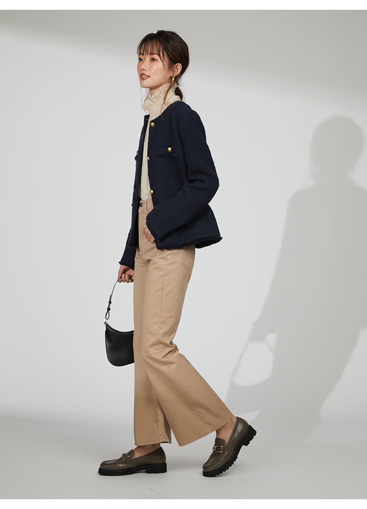 存在感のあるゴールドボタンやフラップポケットなどの王道ディテールを落とし込んだ、スタンダードなデザインのツイードジャケット。今季のワードローブに欠かせないトレンド感溢れる1着です。シルエットはゆる過ぎずタイト過ぎない絶妙なバランスに。女性らしいスカートからカジュアルなデニムまで様々なアイテムと合わせやすく、幅広いスタイリングに重宝します。