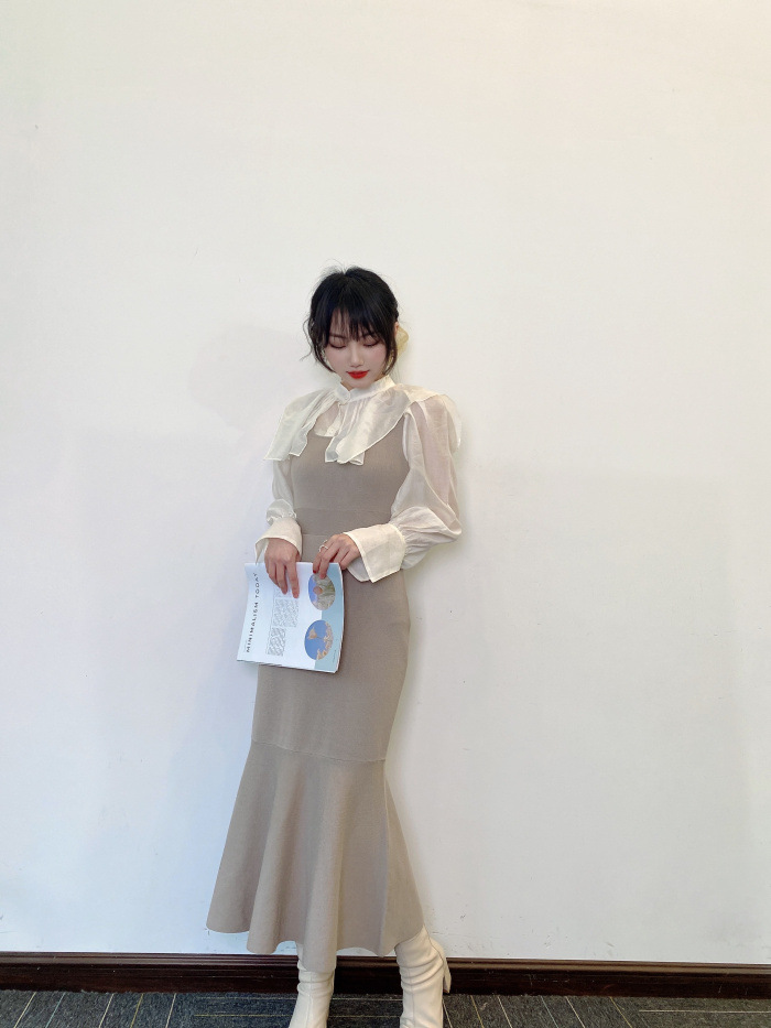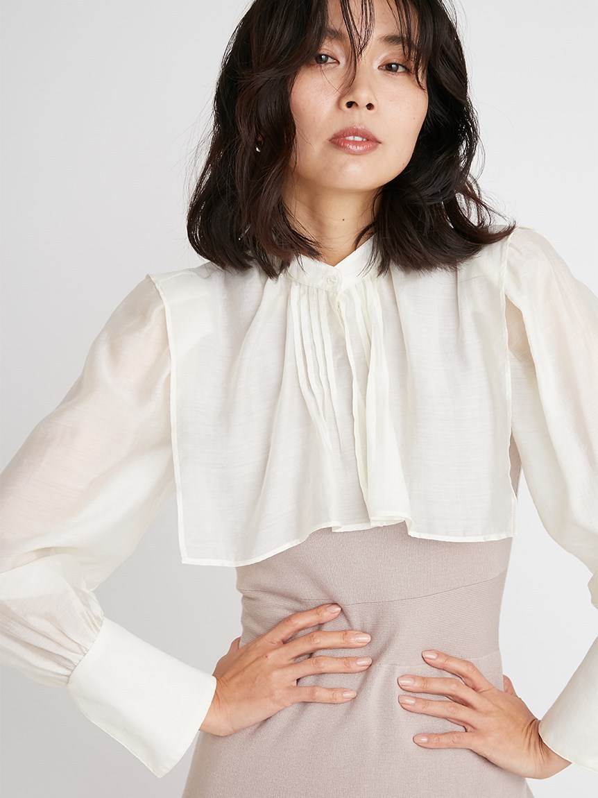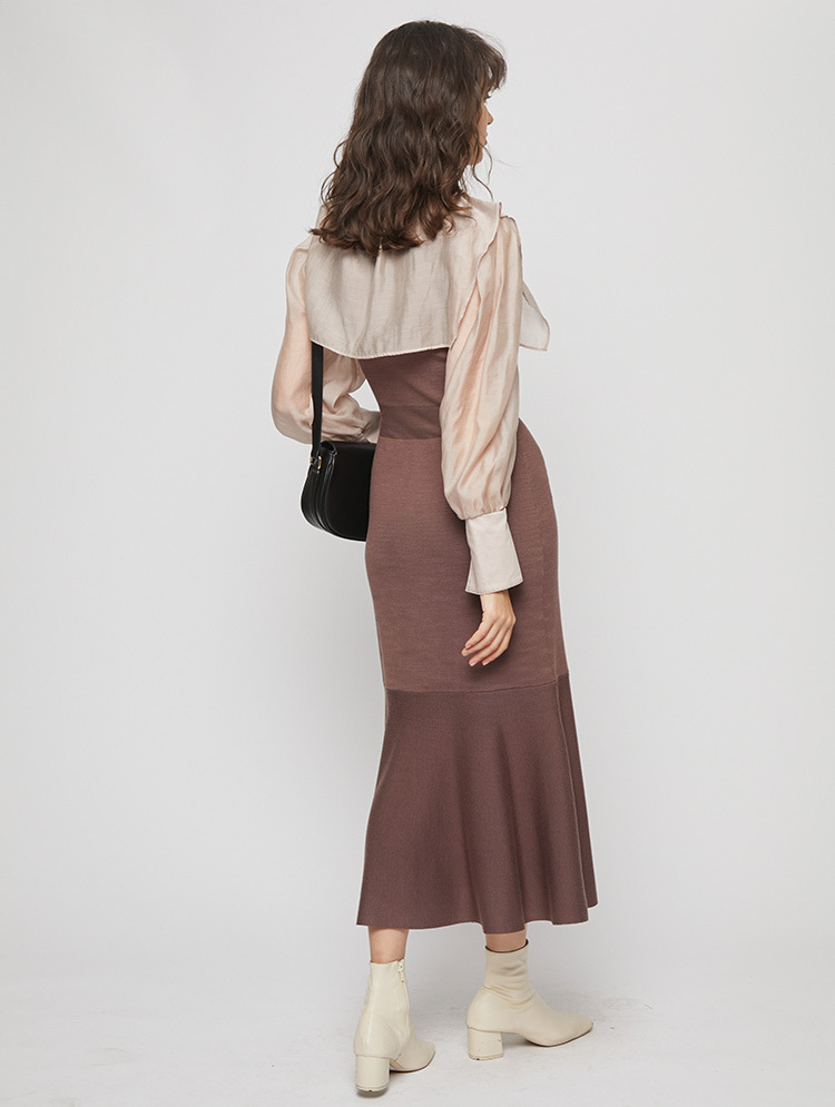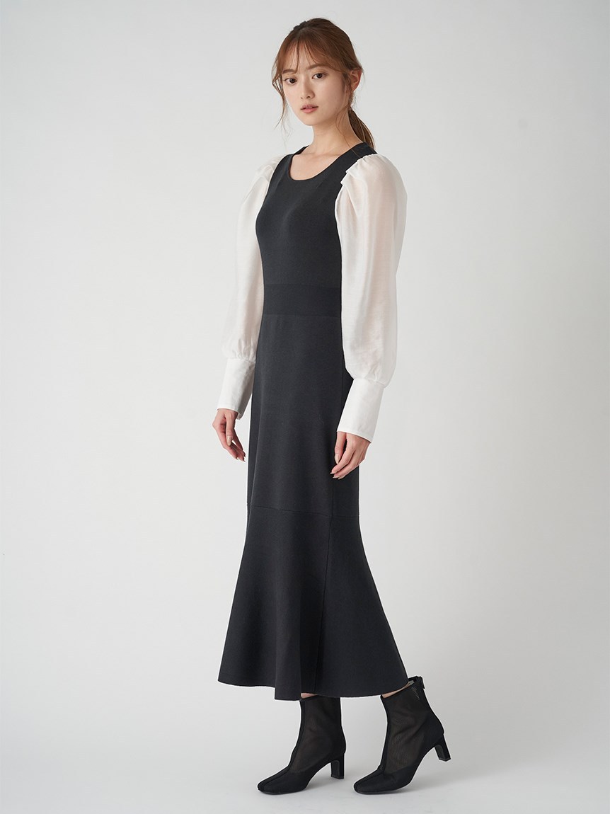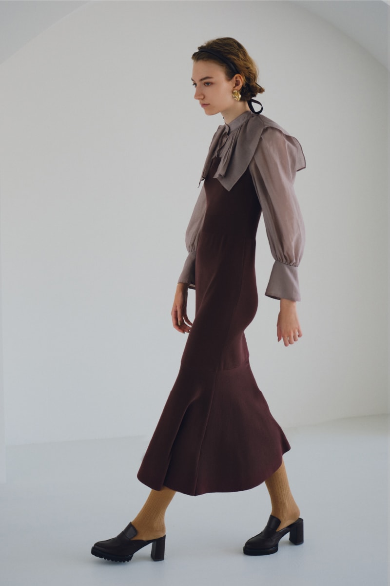 透明感のあるシアーな布帛と程よい厚みのあるニット素材を使用。スタイリング力の高いブラック、ベージュ、モカの3色をご用意しました。