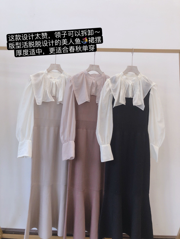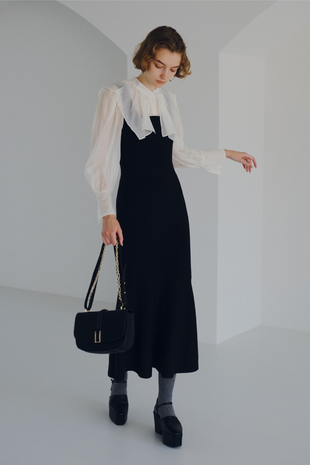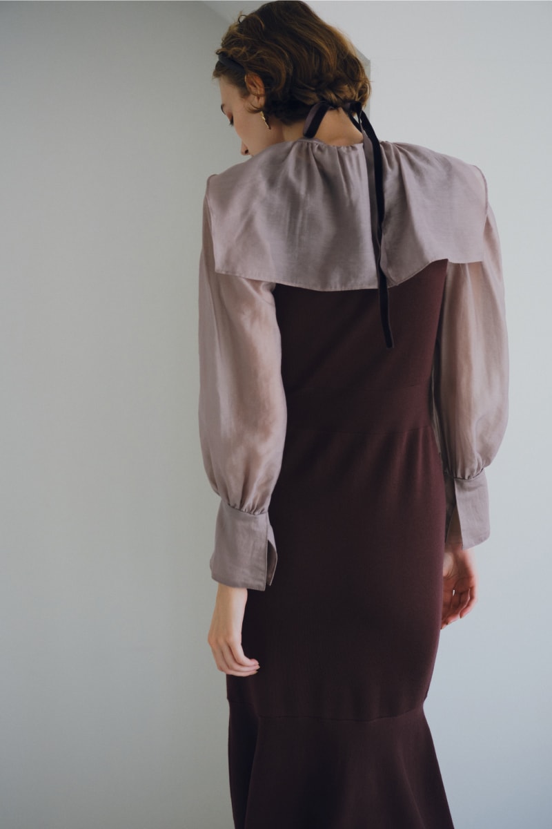 まるでクラシカルなスクエアカラーブラウスをレイヤードしているかのような、技ありデザインのニットワンピース。大きめの襟は清楚できちんと感を与え、スタイリングの品位を高めてくれます。ニットのボディは編地を切り替えメリハリを与えた女性らしいシルエット。襟部分は取り外しできるので、その日の気分やスタイリングに合わせてアレンジも自由に楽しめます。