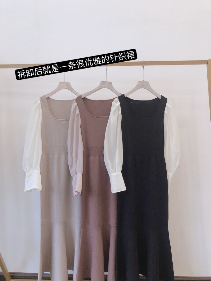 スクエアカラードッキングニットワンピース 単品購入で約5営業日内に発送します。