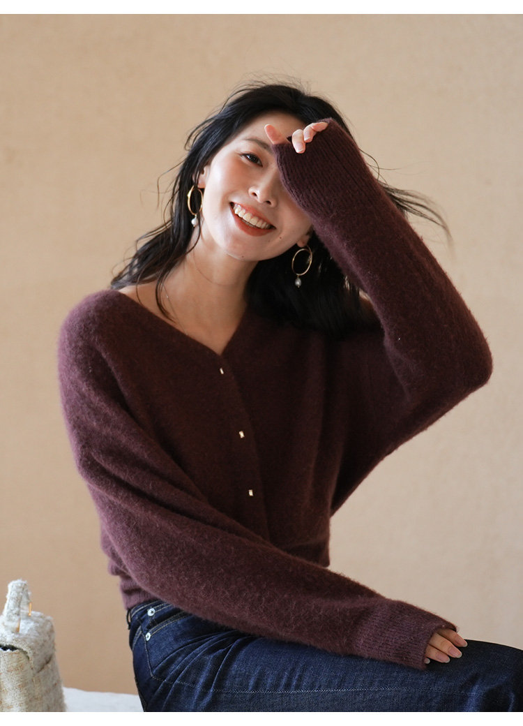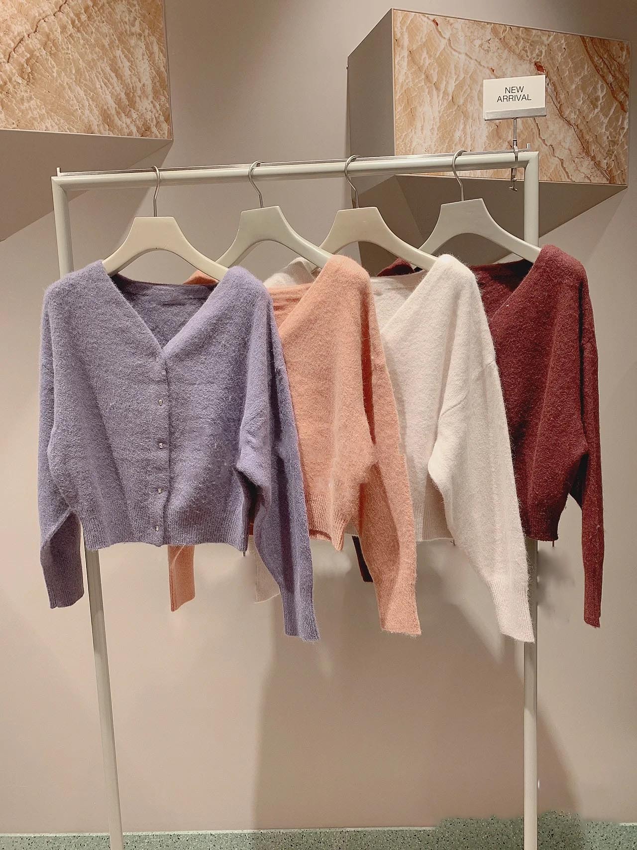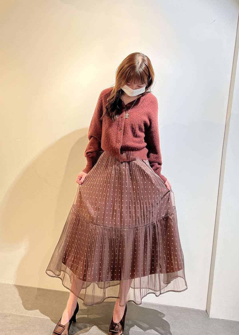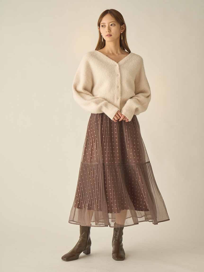 ラクーン混の柔らかく暖かなニット素材を使用しました。ベーシックカラーのアイボリーとブラウン、差し色にぴったりなコーラルとブルーの豊富なカラーバリエーションでお届けします。