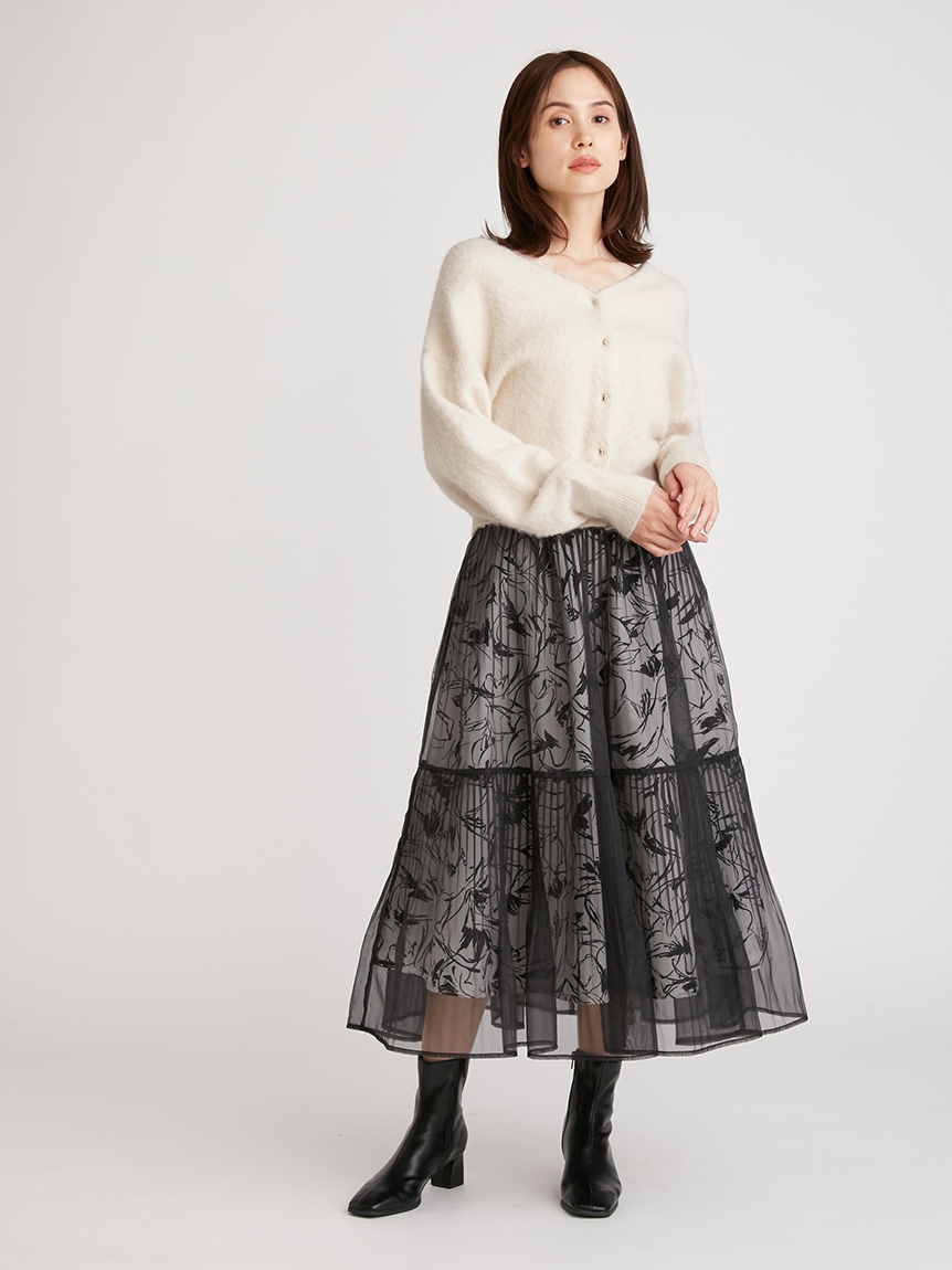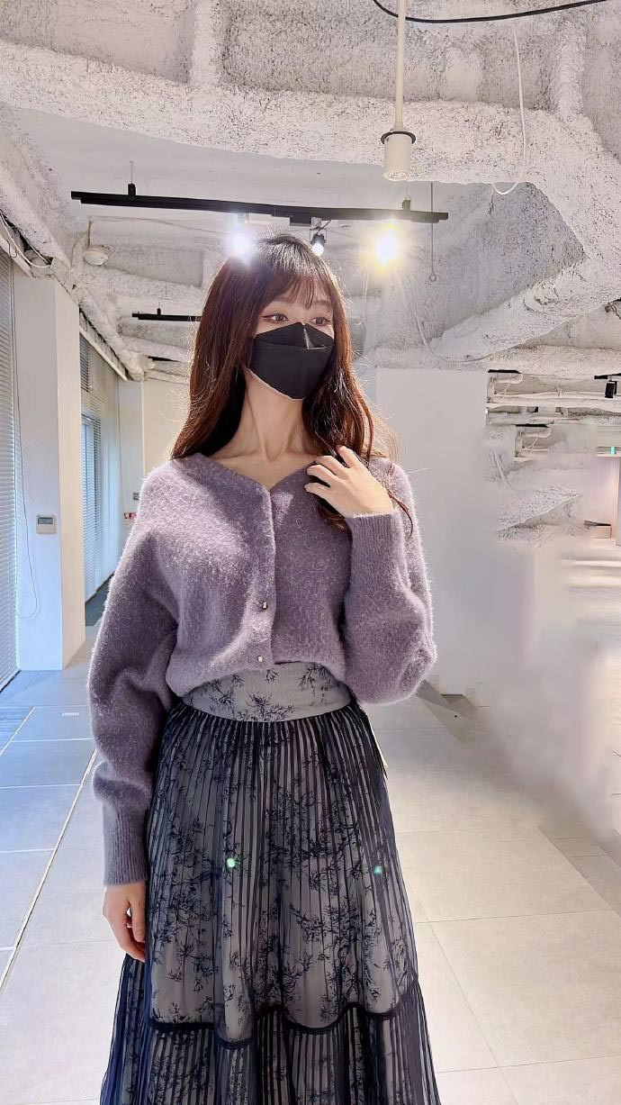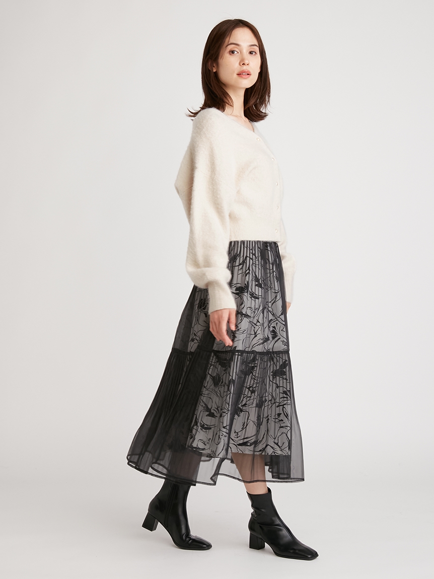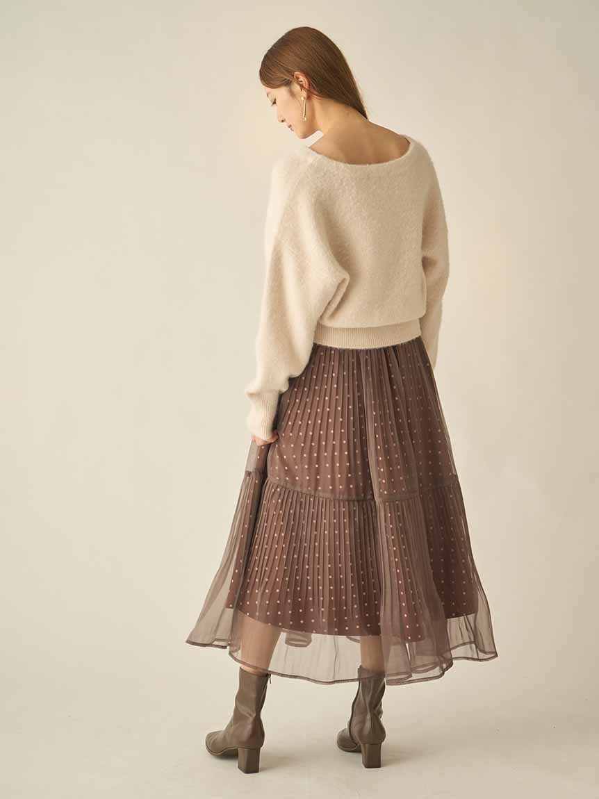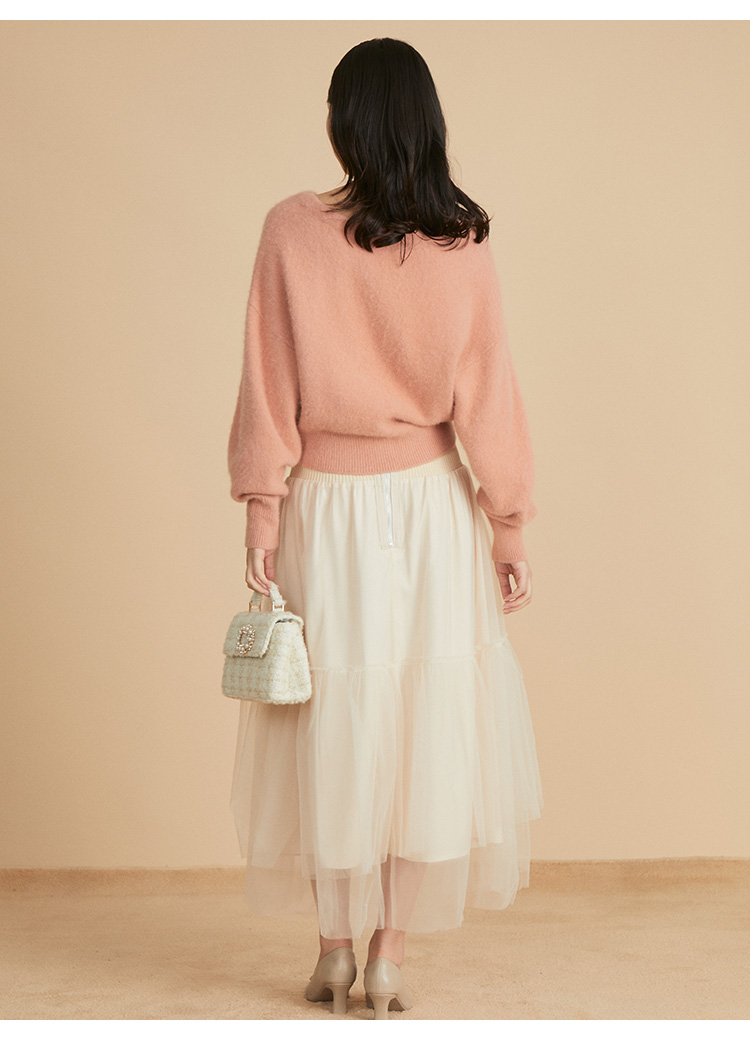 ラクーン混の柔らかく暖かなニット素材を使用しました。ベーシックカラーのアイボリーとブラウン、差し色にぴったりなコーラルとブルーの豊富なカラーバリエーションでお届けします。