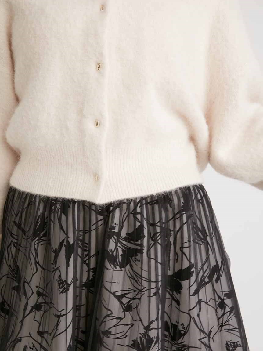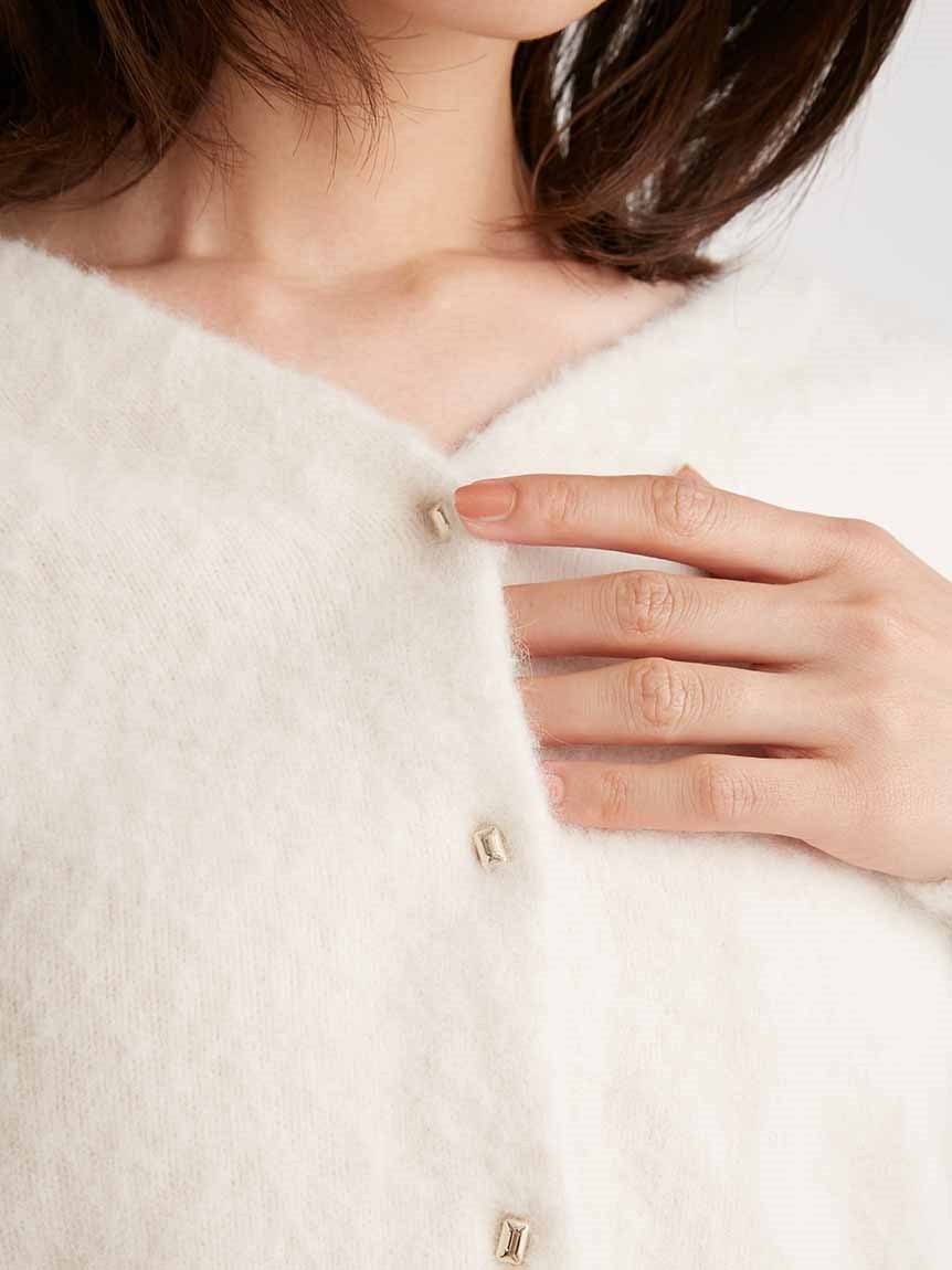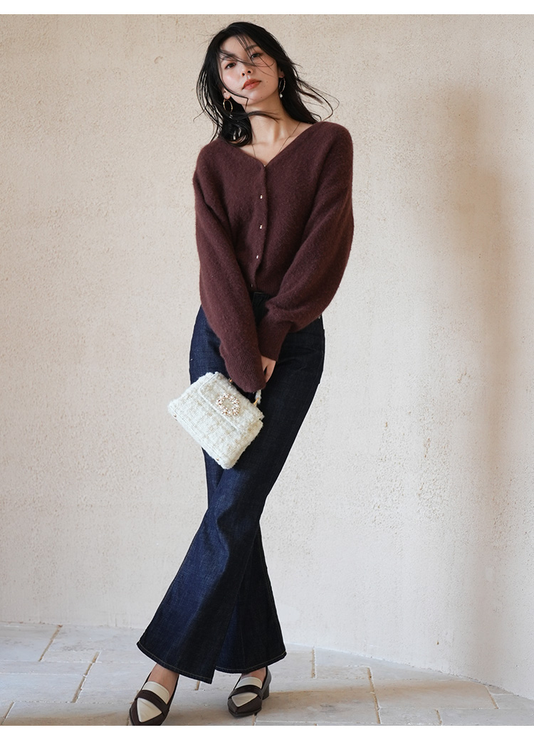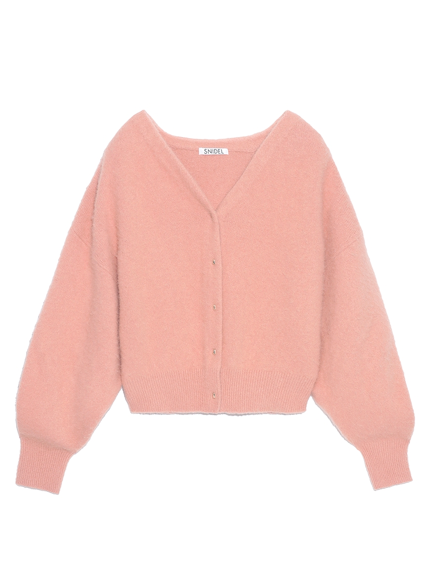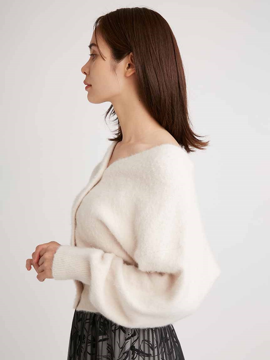 ふわふわと起毛感のある柔らかなニット素材を使用した、見た目も着心地もあたたかなカーディガン。フロントにあしらわれた小さな金ボタンがクラス感を高めるさり気ないアクセントに。シルエットはすっきりとしてシンプルなので、合わせるボトムを選ばず幅広く活躍してくれます。カーディガンとしてはもちろん、フロントボタンをすべて閉めてトップスとして着こなすのもおすすめ。
