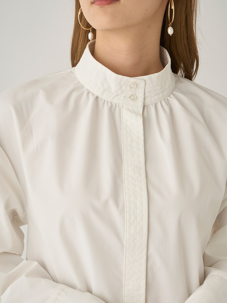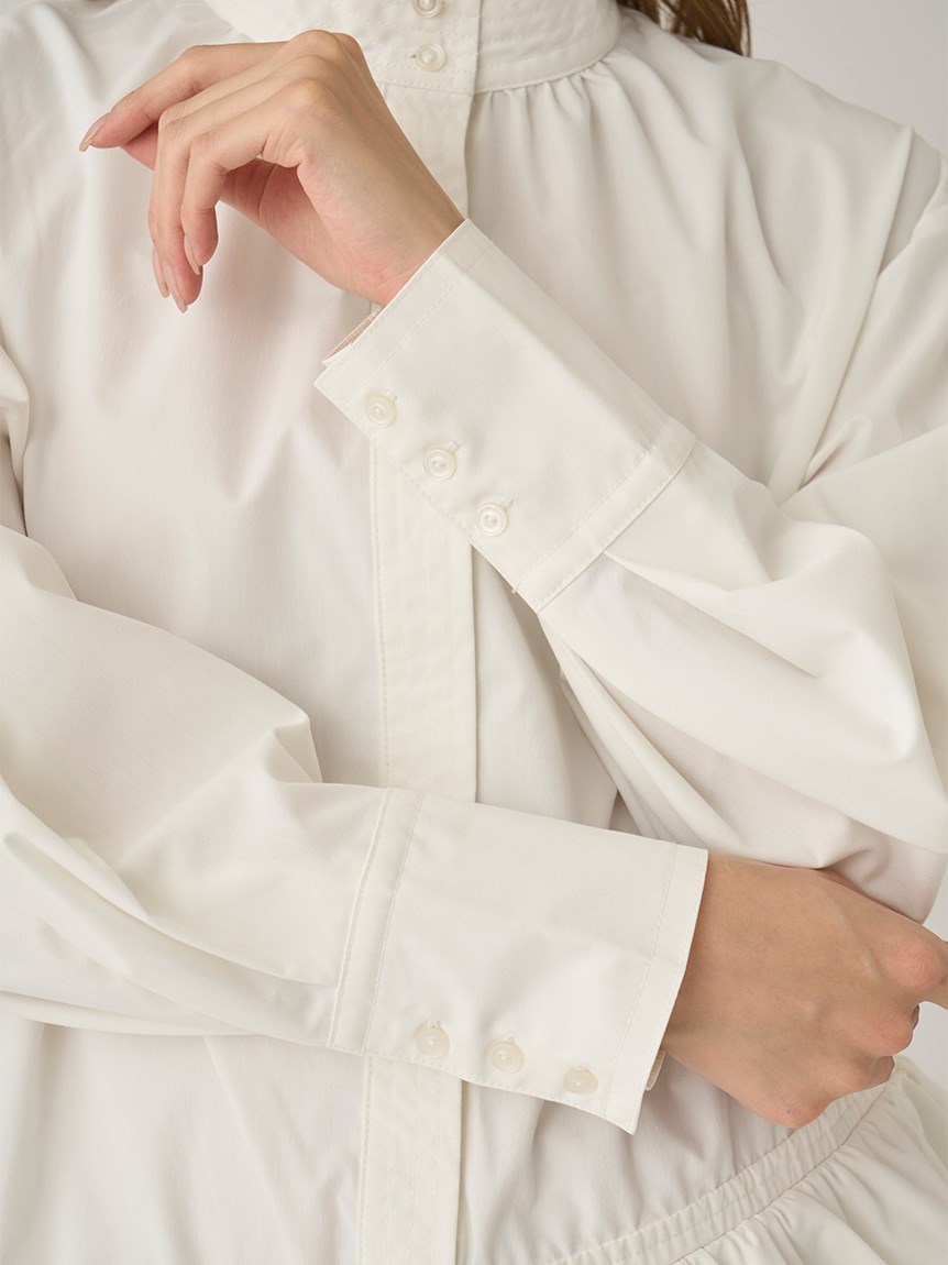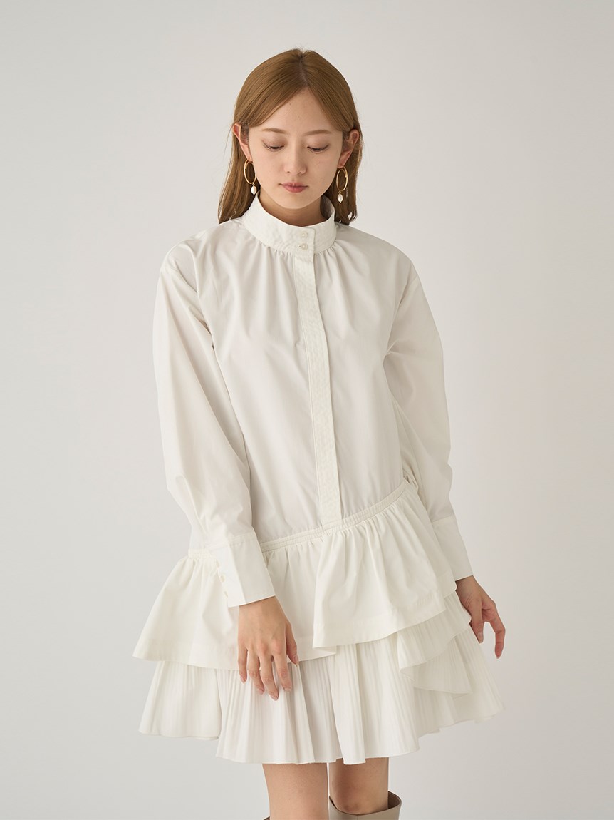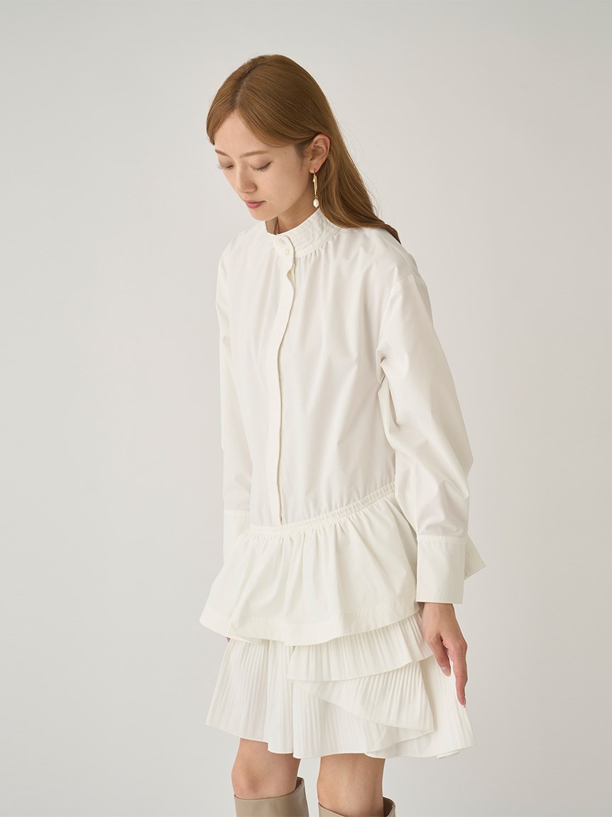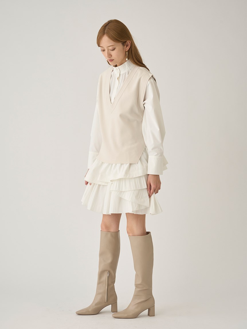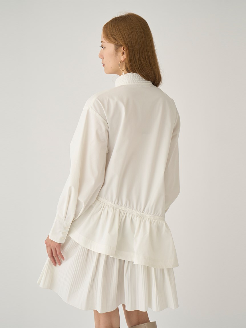 キレイめな質感のニットとライトなシャツ地を組み合わせました。優しい色合いでまとめたアイボリー、シーズンムード高まるバーガンディ、上品な印象を与えるネイビーの3色展開でお届けします。