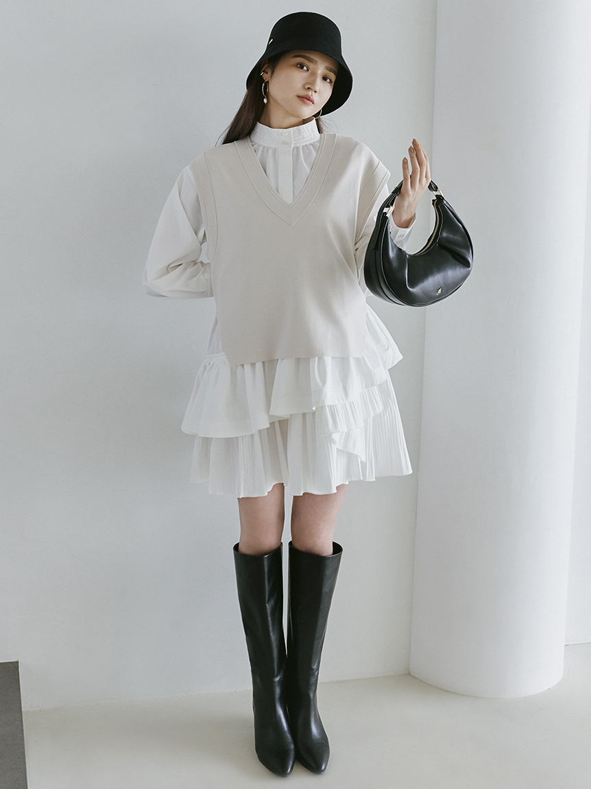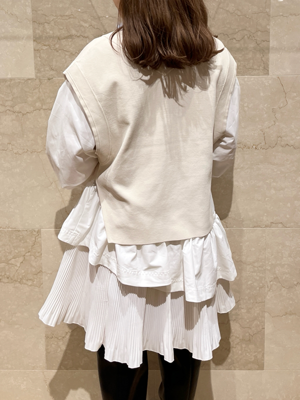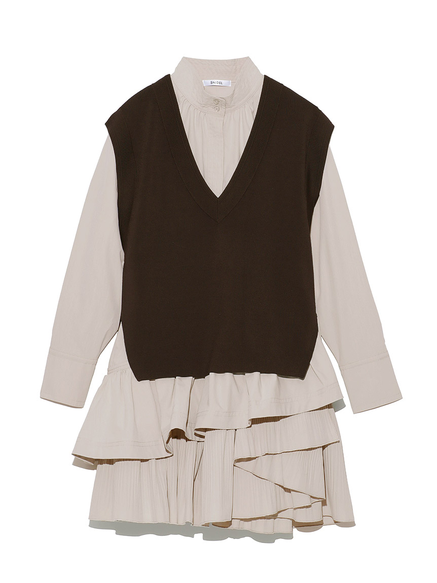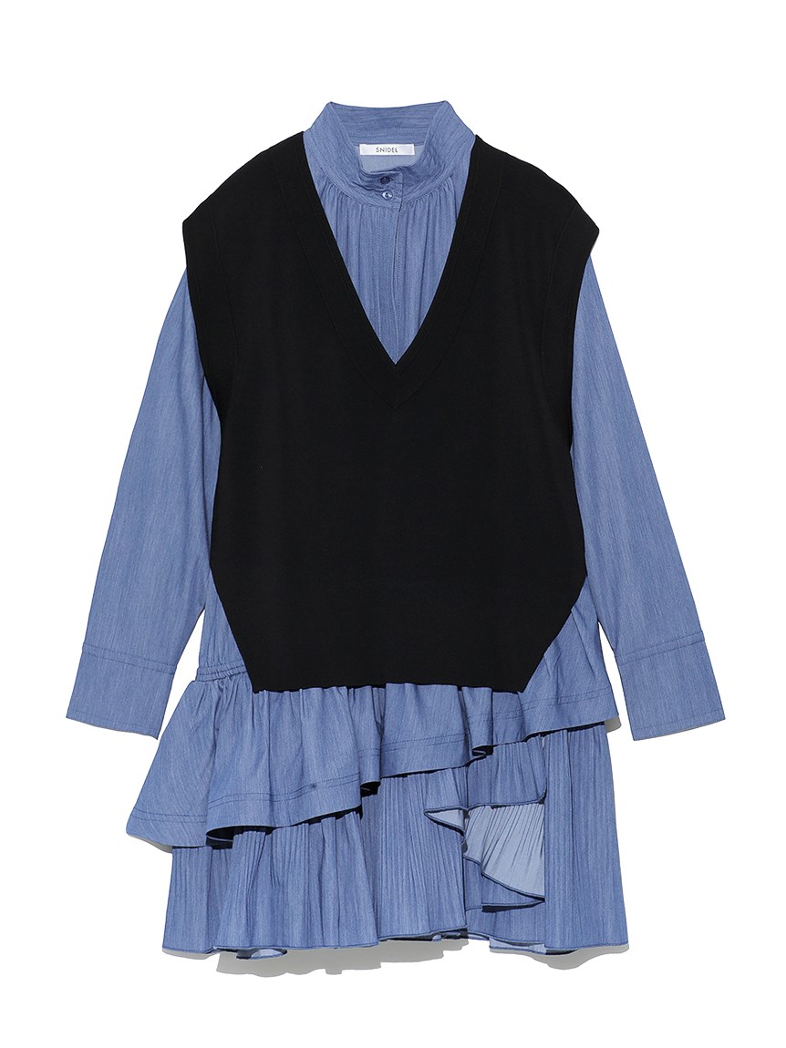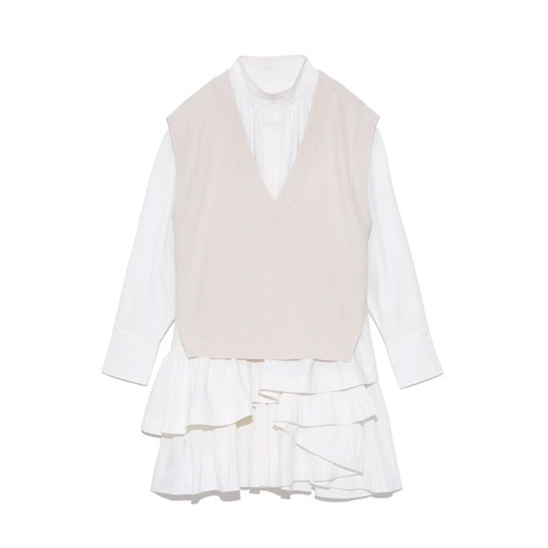「SNIDEL」定番のニットベストコンビワンピースが到着。今季は裾にフレアやプリーツをあしらい、さらに華やかなワンピースに仕上げました。ニットベストは敢えてミニマルなデザインにすることでバランス良く着こなせます。アイテムごとに別々で着用もしていただけるので、コーディネートの幅が広がる優秀な1品です。