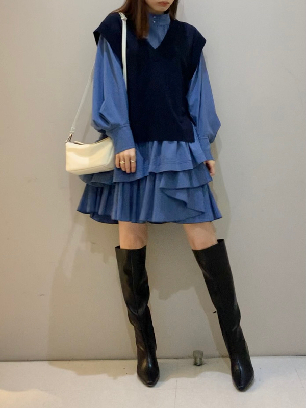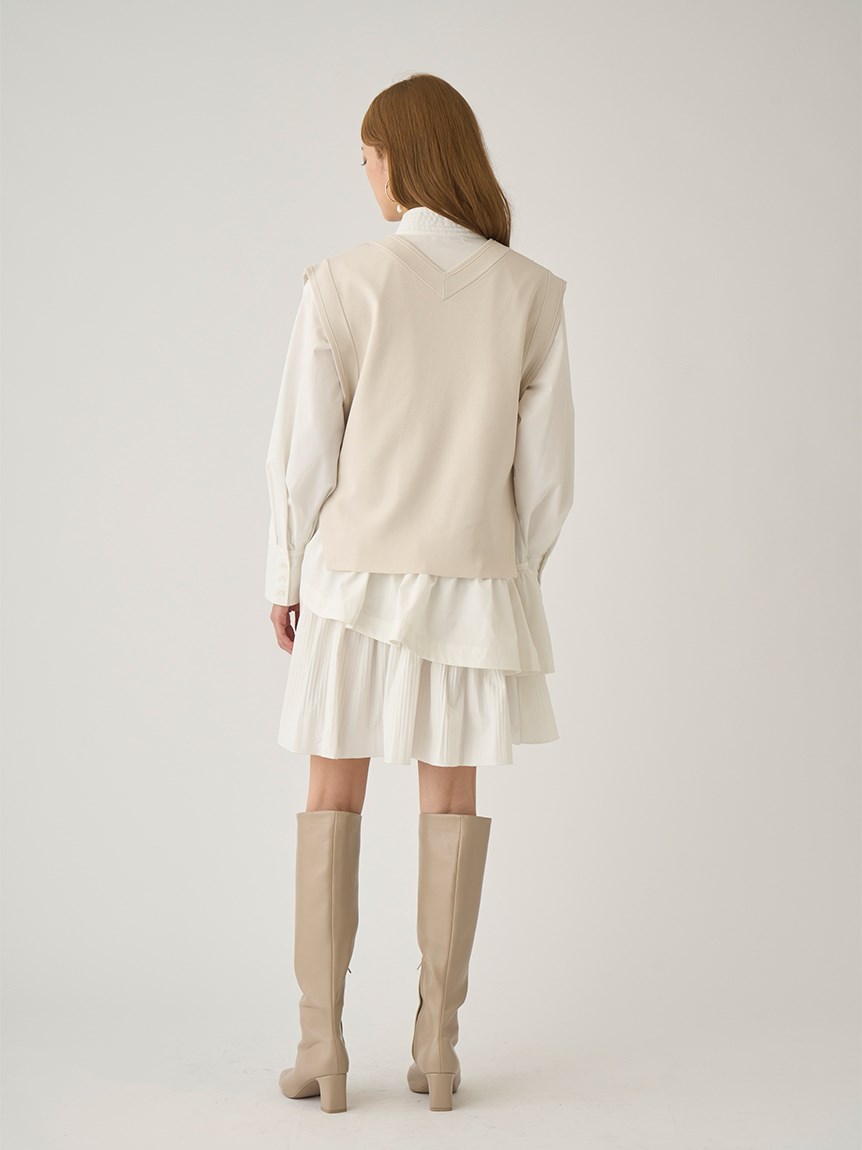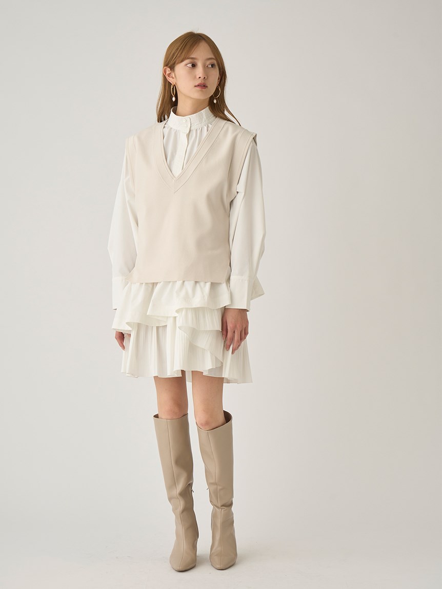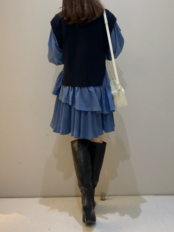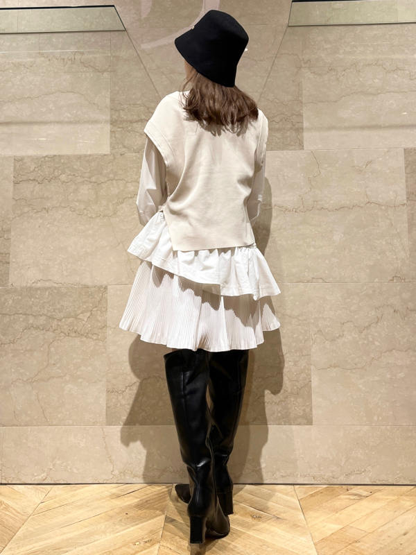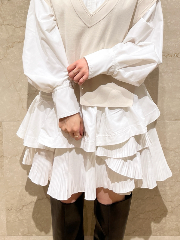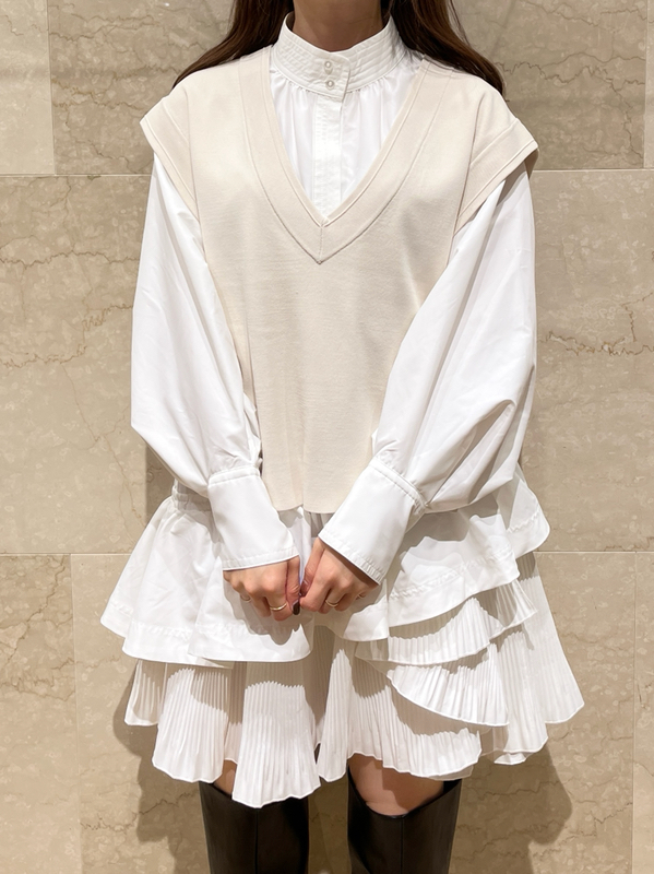 「SNIDEL」定番のニットベストコンビワンピースが到着。今季は裾にフレアやプリーツをあしらい、さらに華やかなワンピースに仕上げました。ニットベストは敢えてミニマルなデザインにすることでバランス良く着こなせます。アイテムごとに別々で着用もしていただけるので、コーディネートの幅が広がる優秀な1品です。