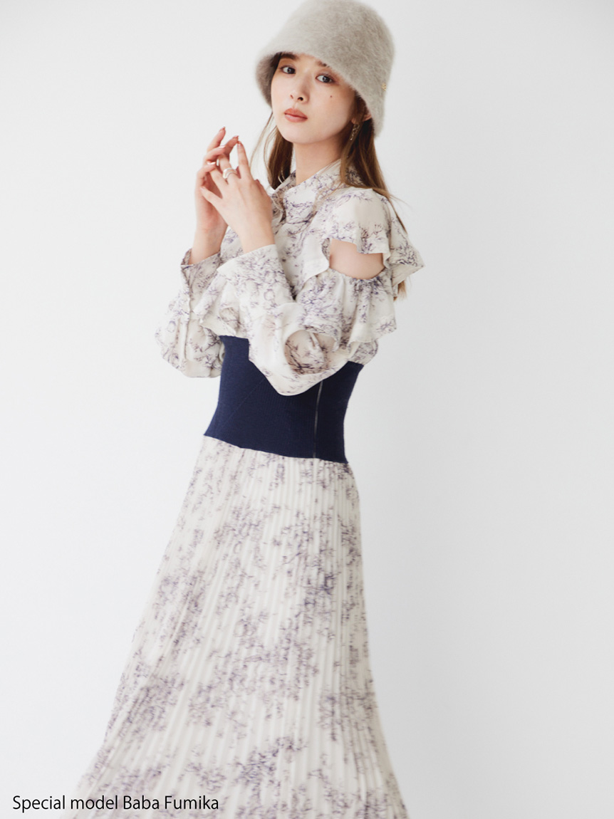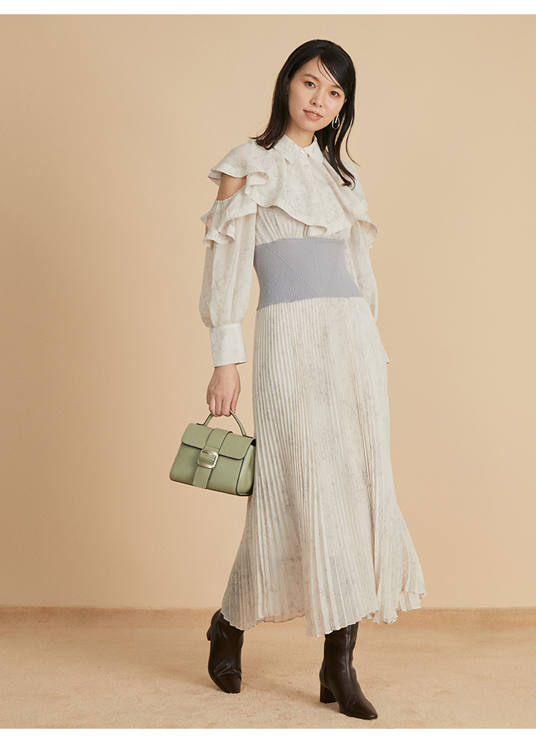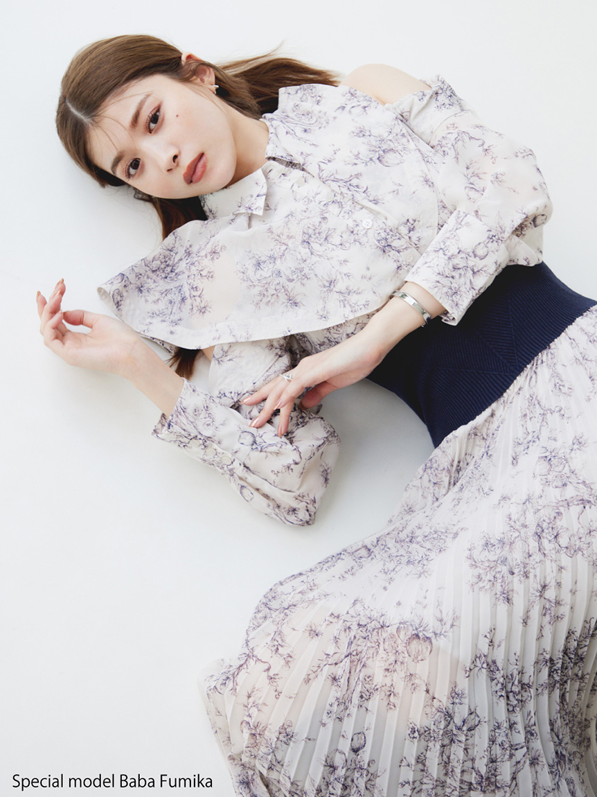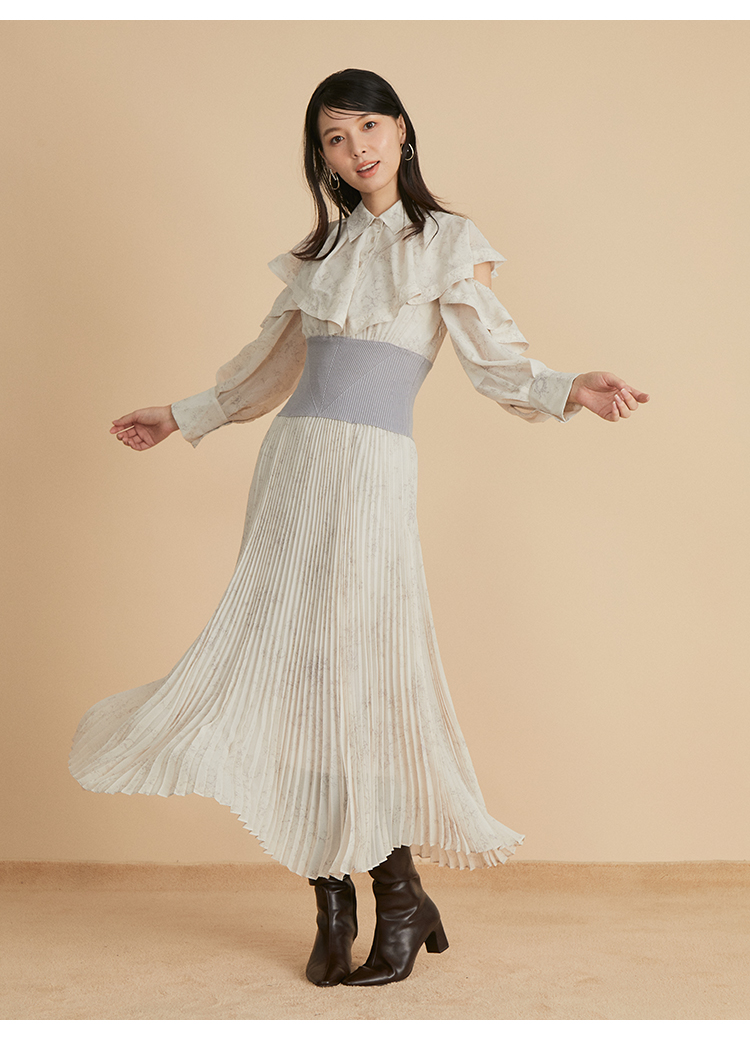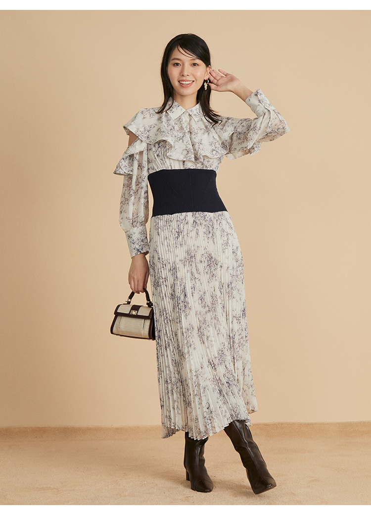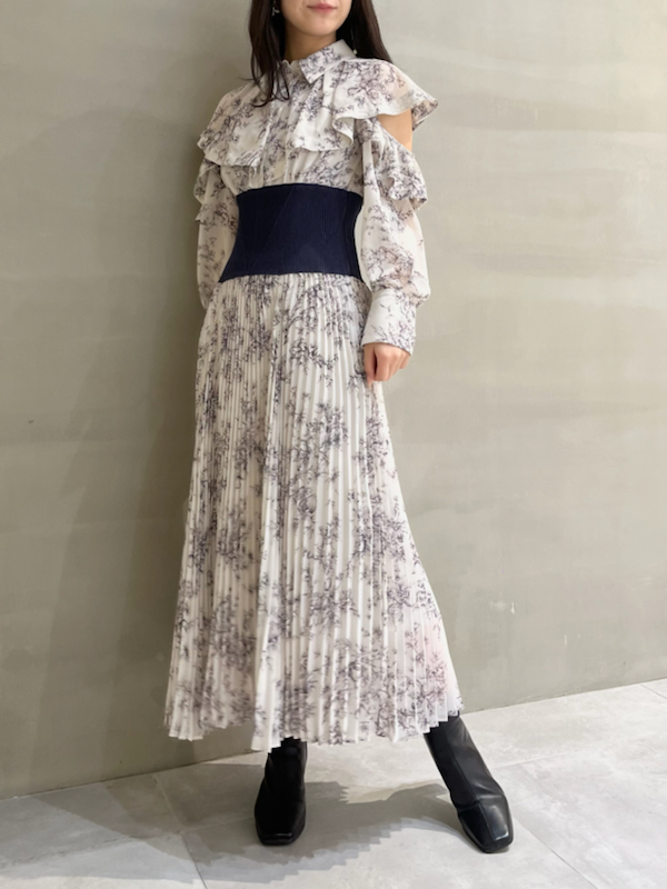 スタイルアップ効果の高いフォルムで人気を集める定番のウエストリブワンピース。今季はトレンドのシャツ衿を採用しデザインを大幅にアップデートしました。袖も「SNIDEL」らしくセンシュアルな開きをプラスし女性らしさを演出。カラーごとに異なるオリジナルのプリントをのせ華やかな雰囲気に仕上げています。